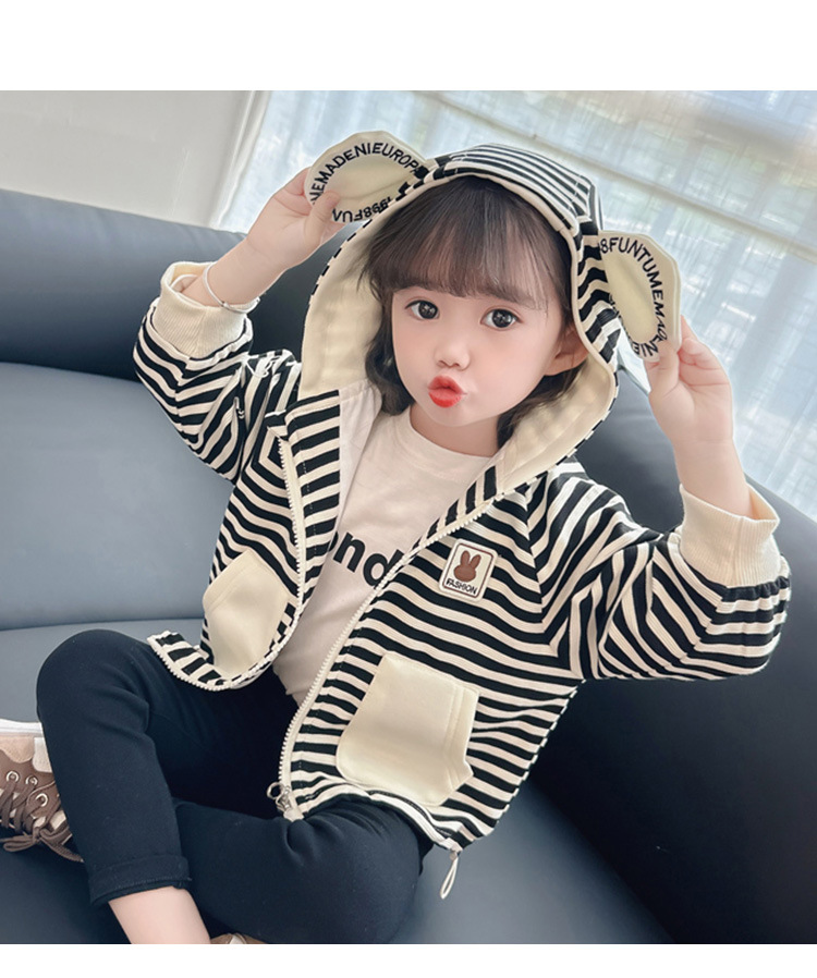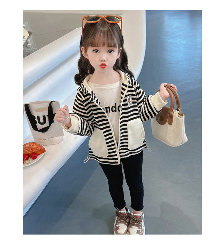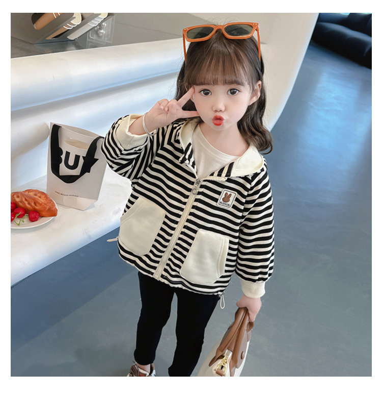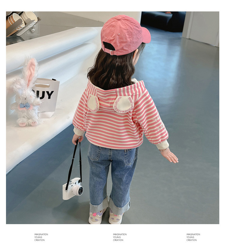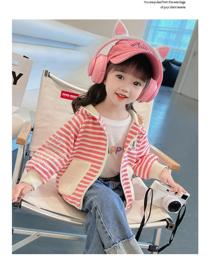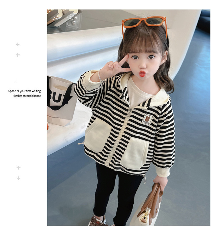 여아 스트라이프 코트 봄 가을용 아동 한국 스타일 패션 어린 소녀 자수 컬러 스트라이프 재킷 중소형 아동용 상의스토어 가기