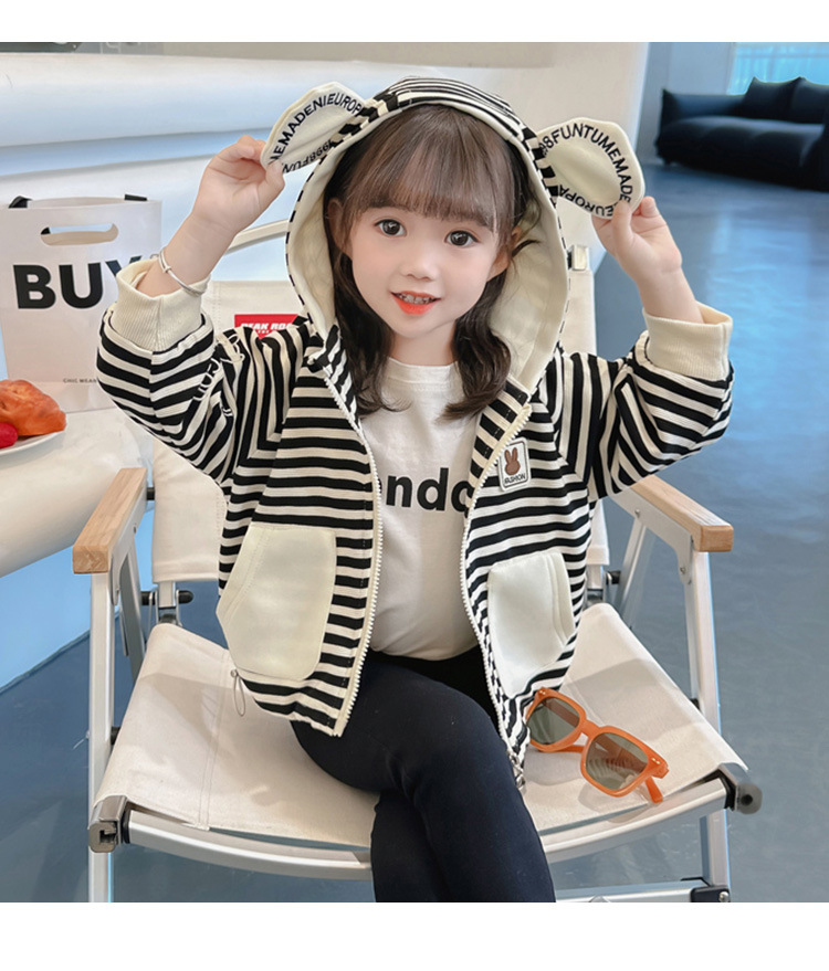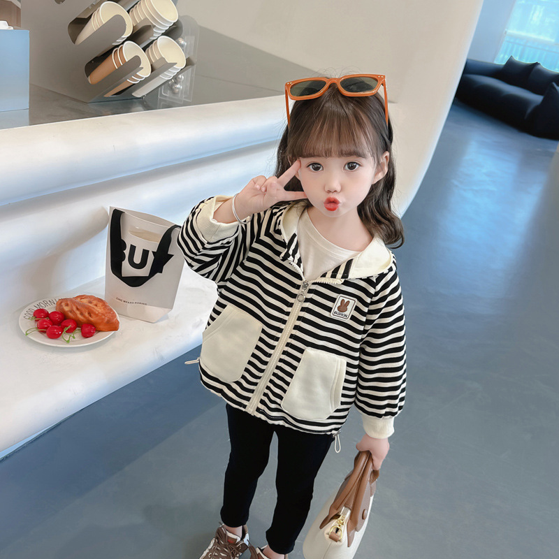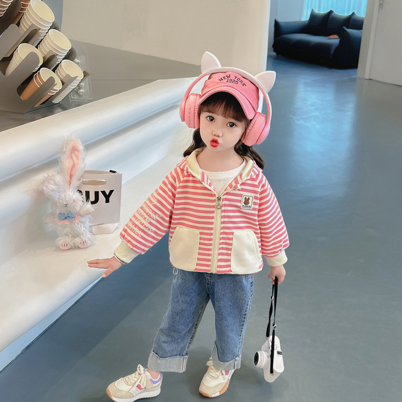 여아 스트라이프 코트 봄 가을용 아동 한국 스타일 패션 어린 소녀 자수 컬러 스트라이프 재킷 중소형 아동용 상의