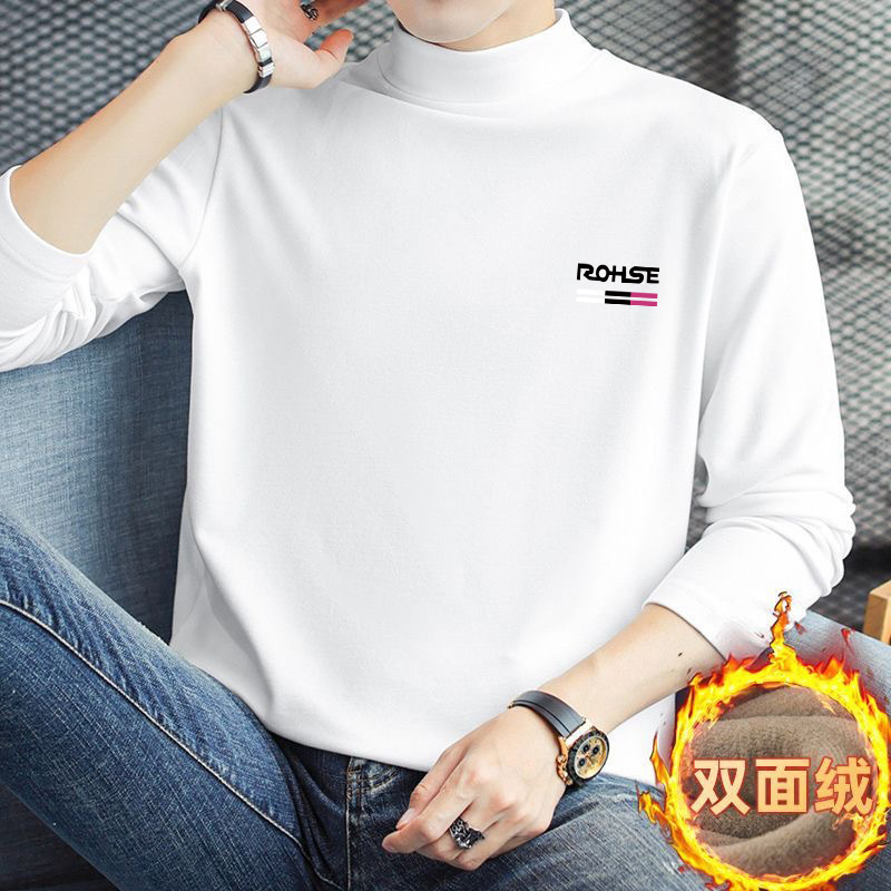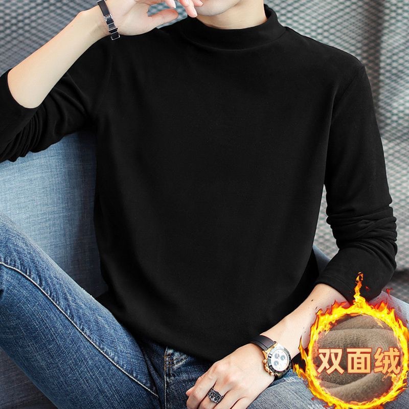 양면 벨벳베이스 셔츠 남성용 솔리드 컬러 반 하이 넥 긴팔 티셔츠 남성용 기모 두꺼운 내부 착용 일정한 온도 따뜻함스토어 가기