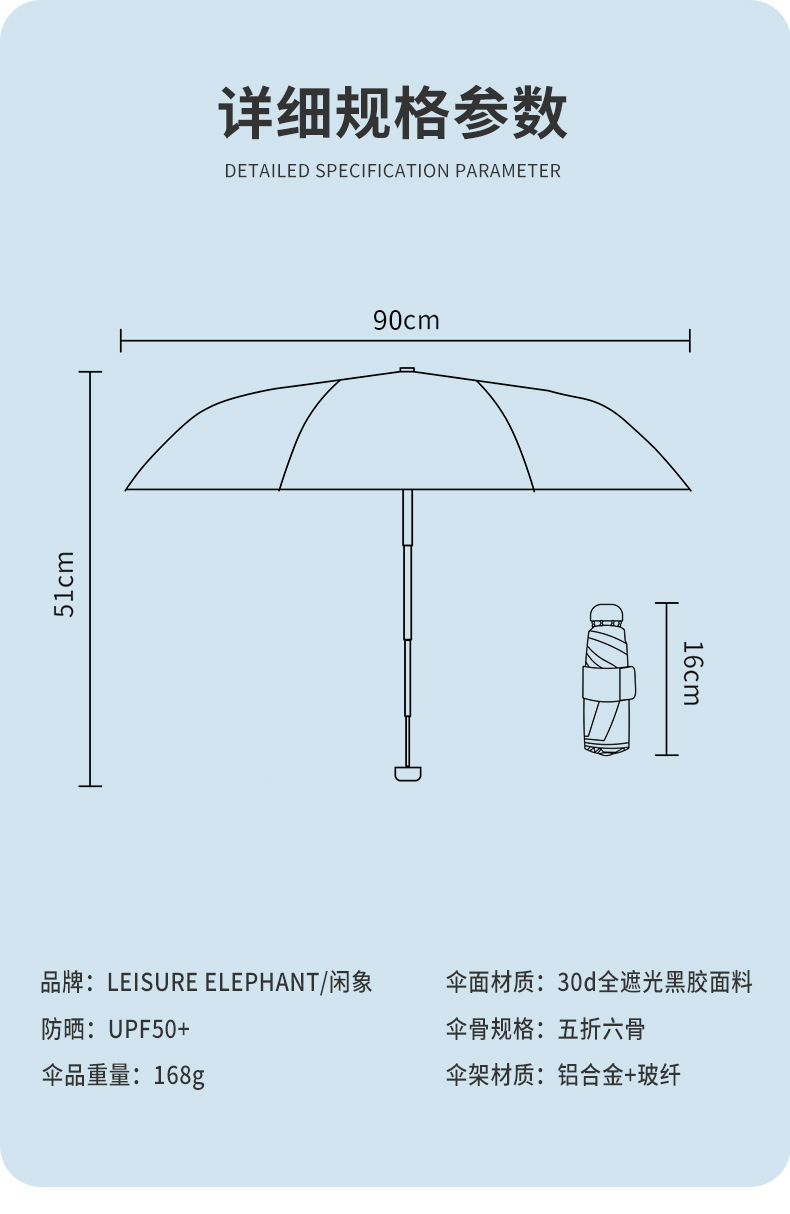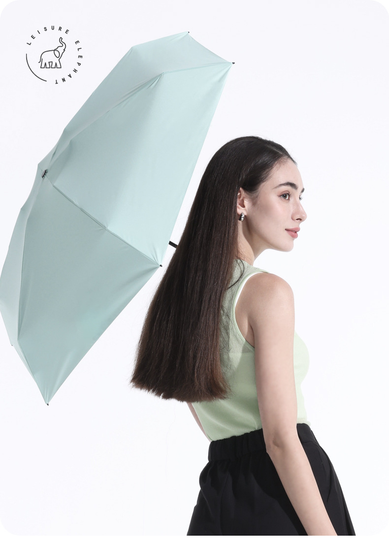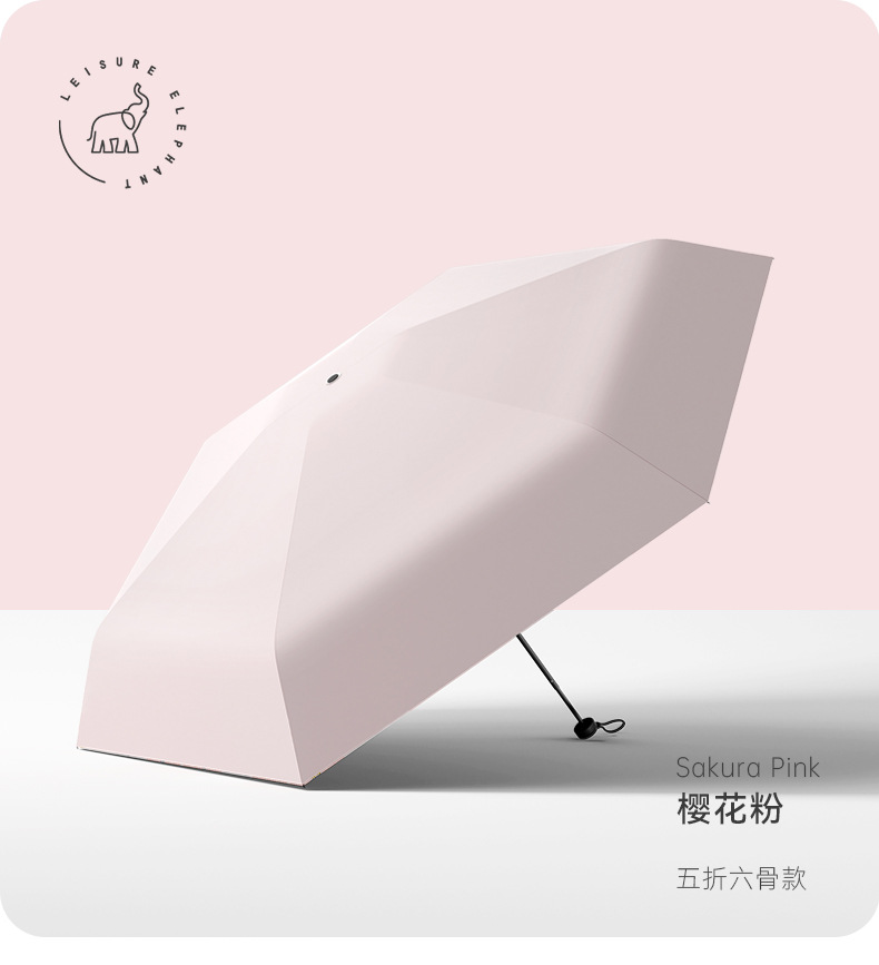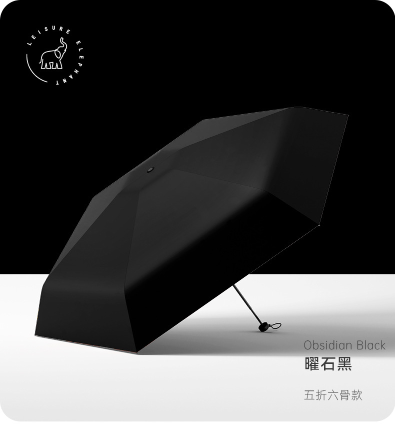 유휴 코끼리 50% 접힌 솔리드 컬러 블랙 접착제 우산 Upf50 야외 태양 보호 UV 보호 휴대용 접히는 간단한 태양 우산