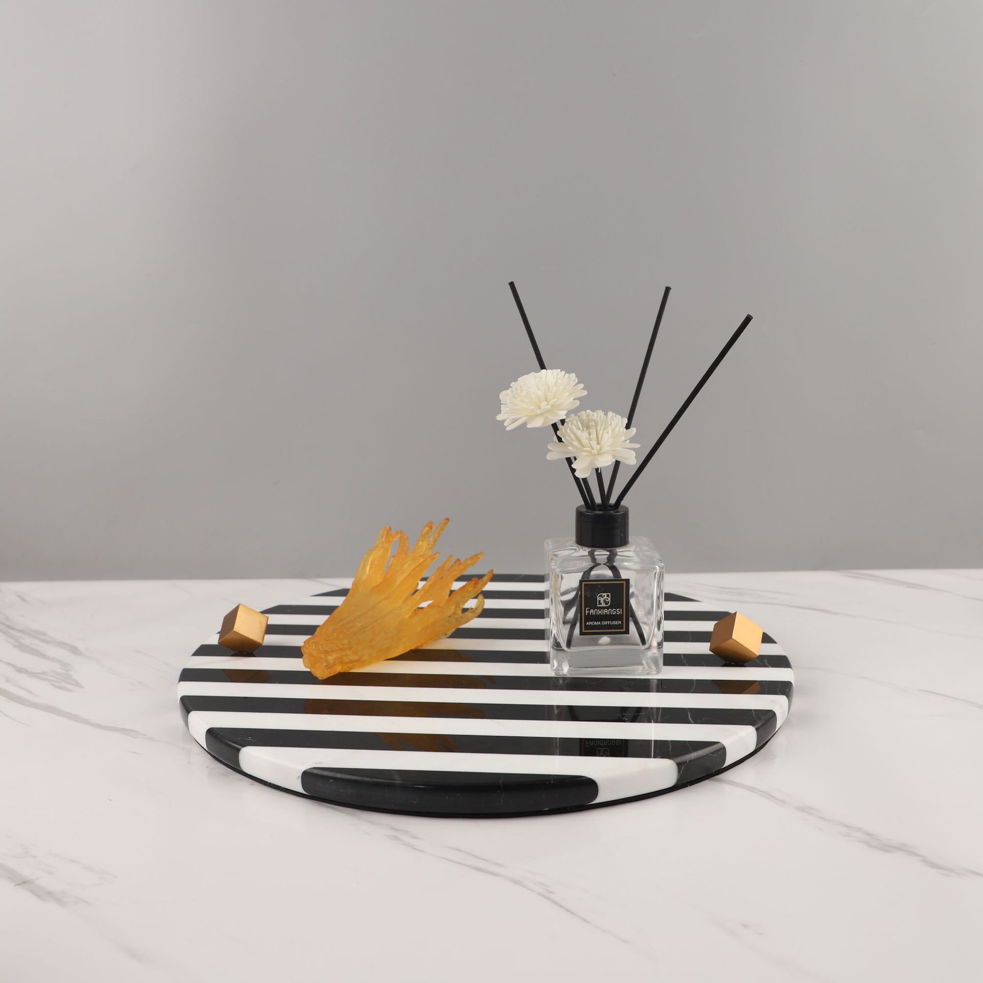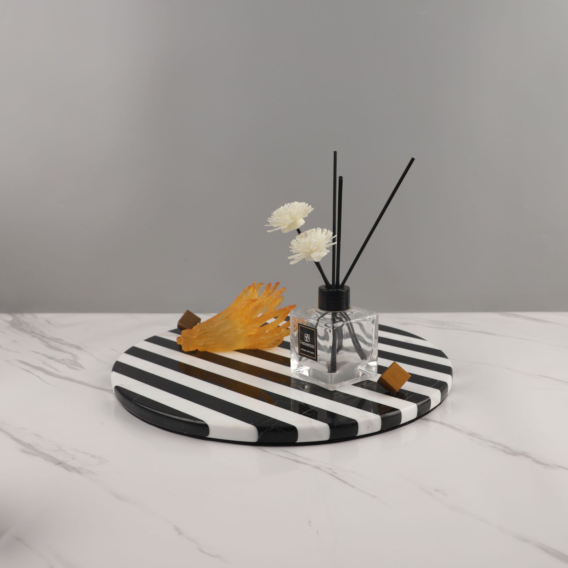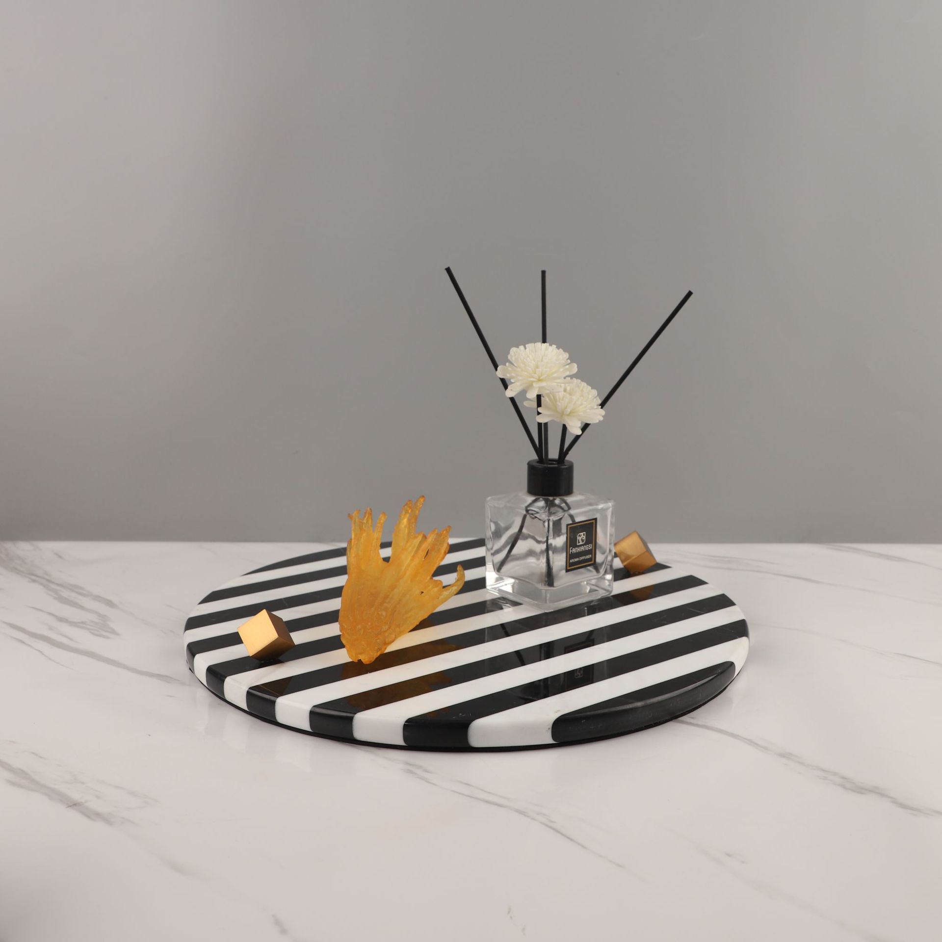 • 대리석 흑백 줄무늬 트레이 대형 35*35*5