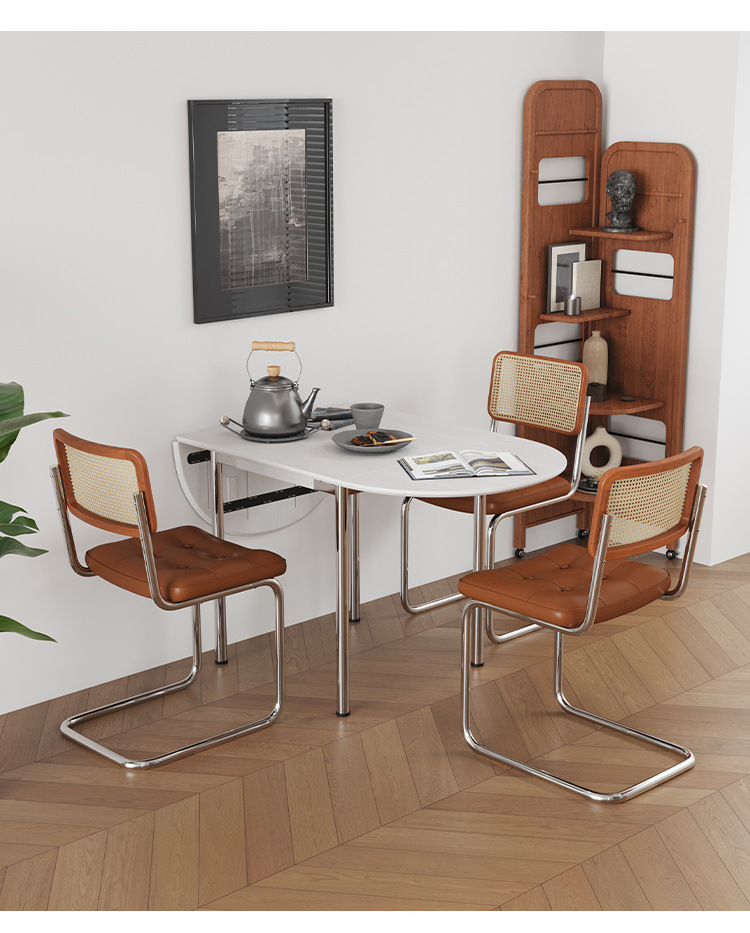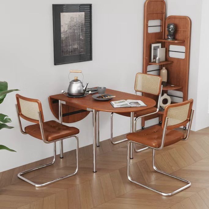 북유럽 간단한 식탁 접이식 식탁 및 의자 조합 홈 레트로 작은 아파트 테이블 스테인레스 스틸 망원경 식탁