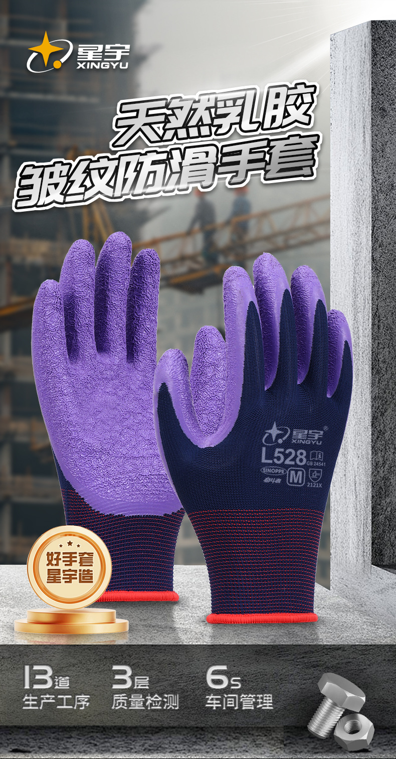 Xingyu 장갑 노동 보호 내마모성 라텍스 두부 L528 업그레이드 미끄럼 통기성 처리 노동 보호 정렬 작업 장갑