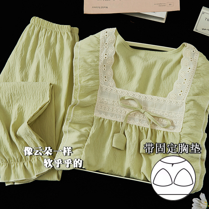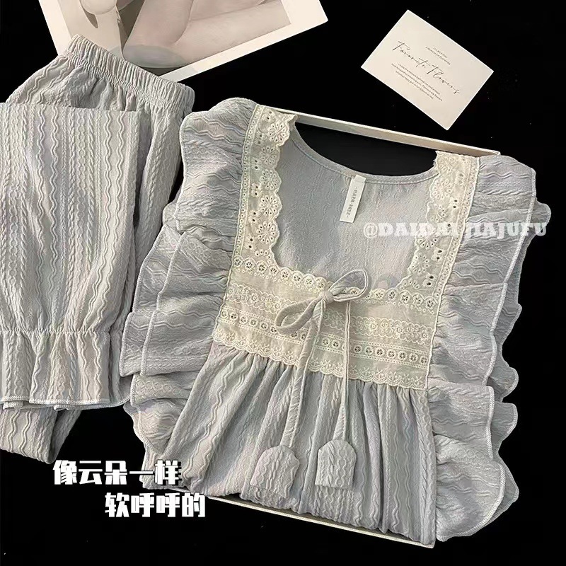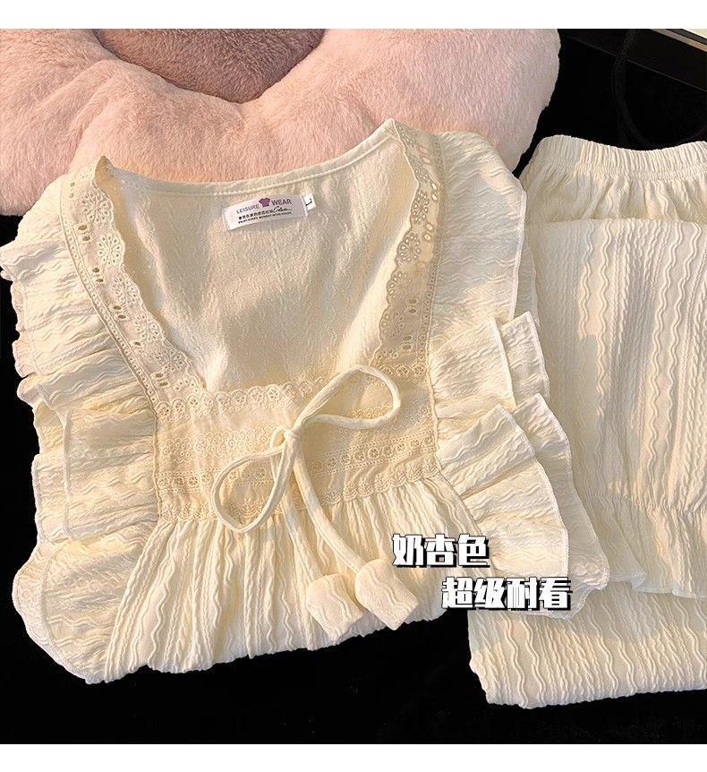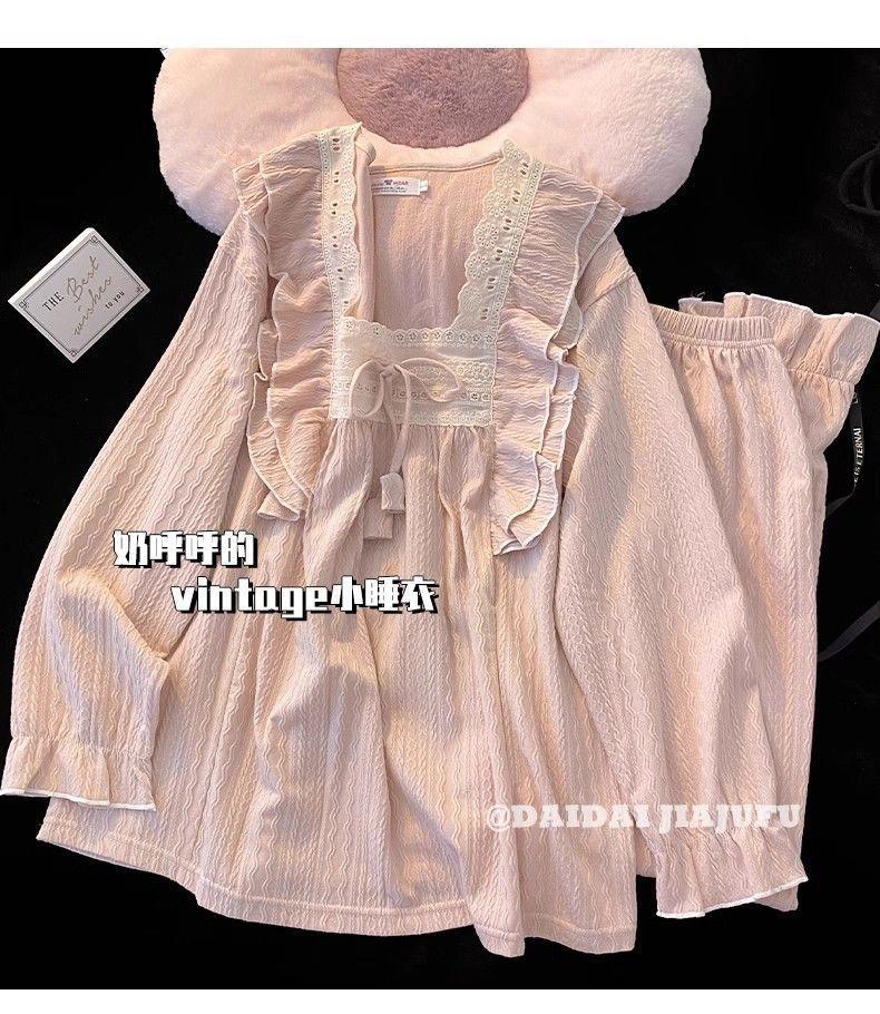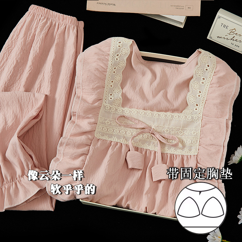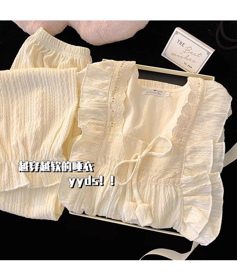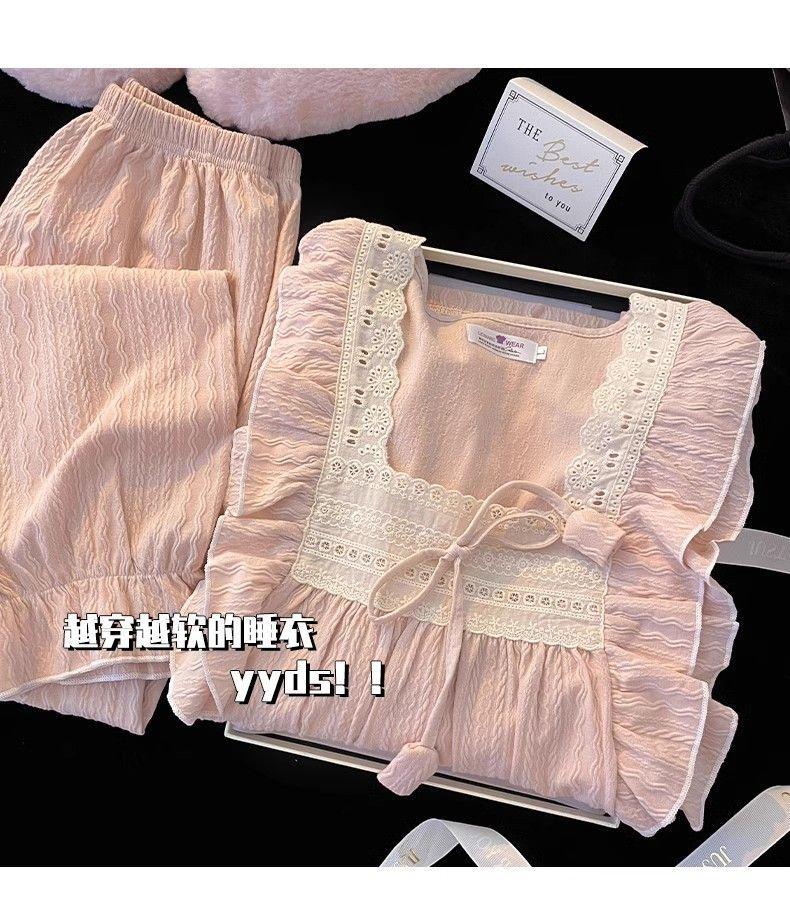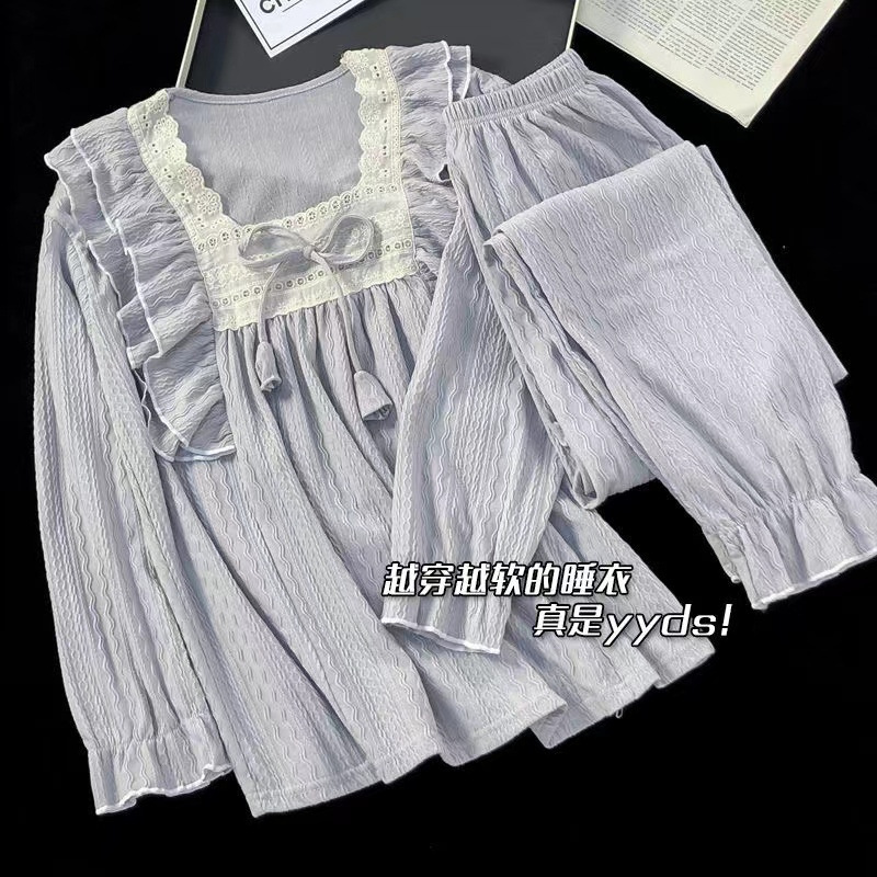 파자마 여성의 봄과 가을 긴 소매 2024 한국식 레이스 달콤한 귀여운 라이브 홈 의류 국경 독점스토어 가기