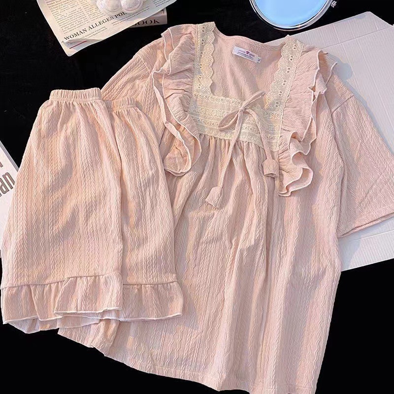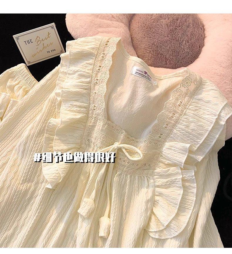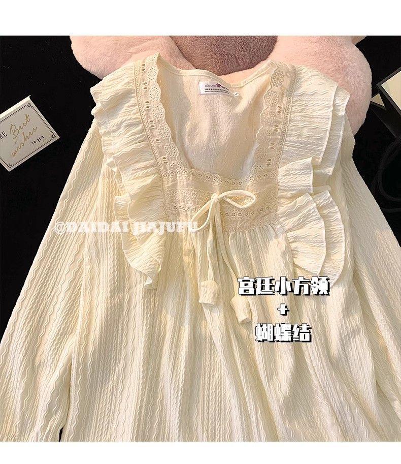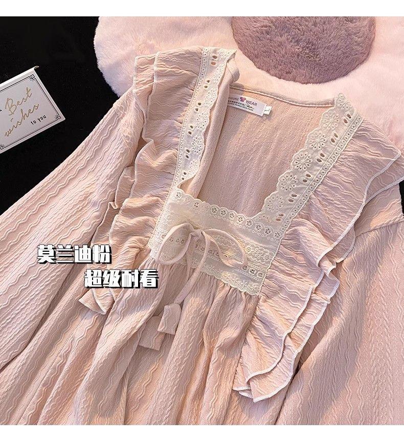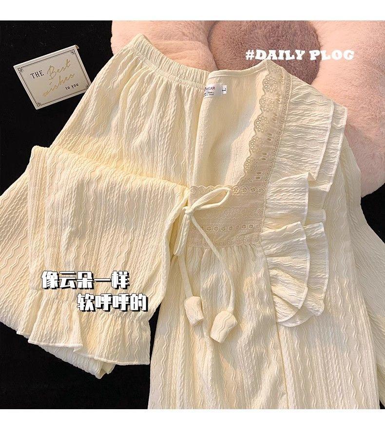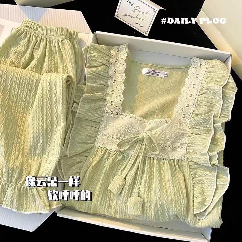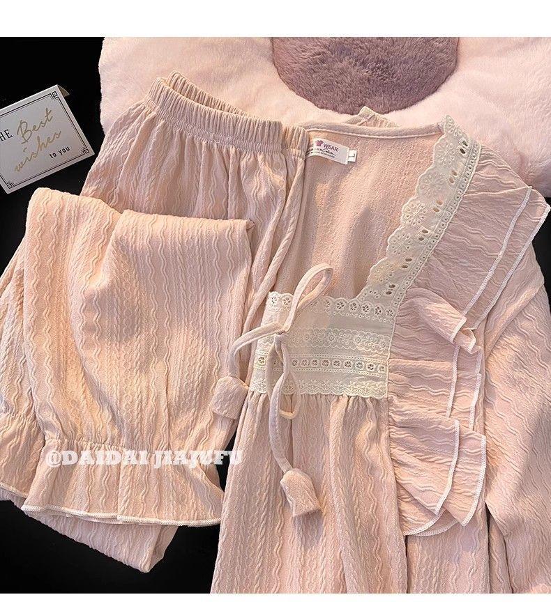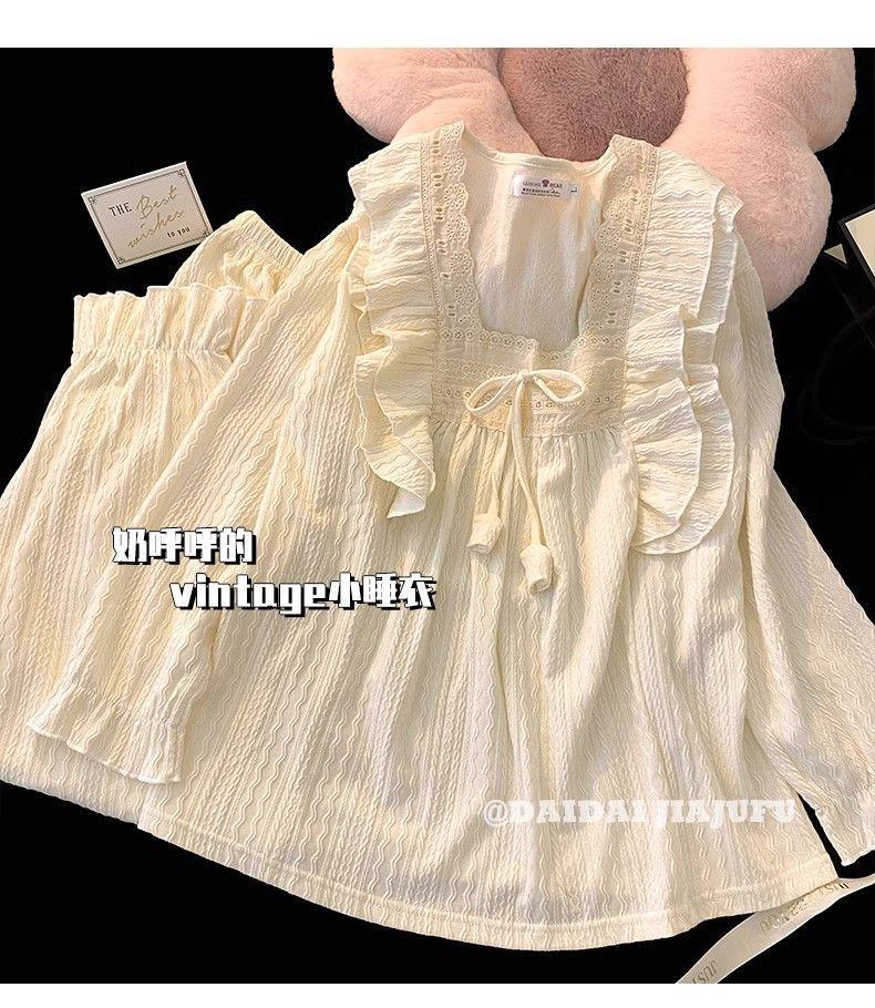 파자마 여성의 봄과 가을 긴 소매 2024 한국식 레이스 달콤한 귀여운 라이브 홈 의류 국경 독점스토어 가기