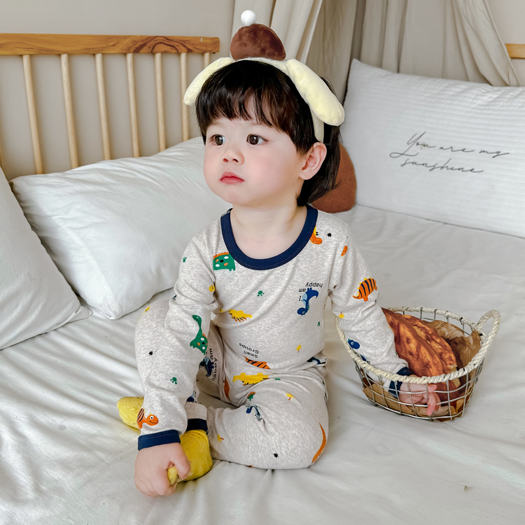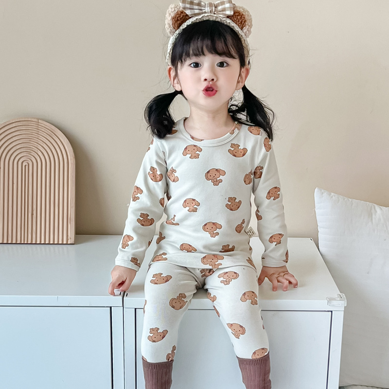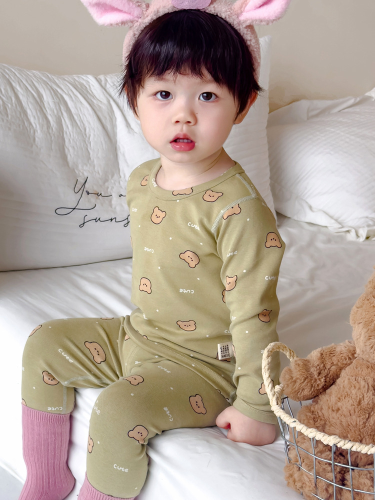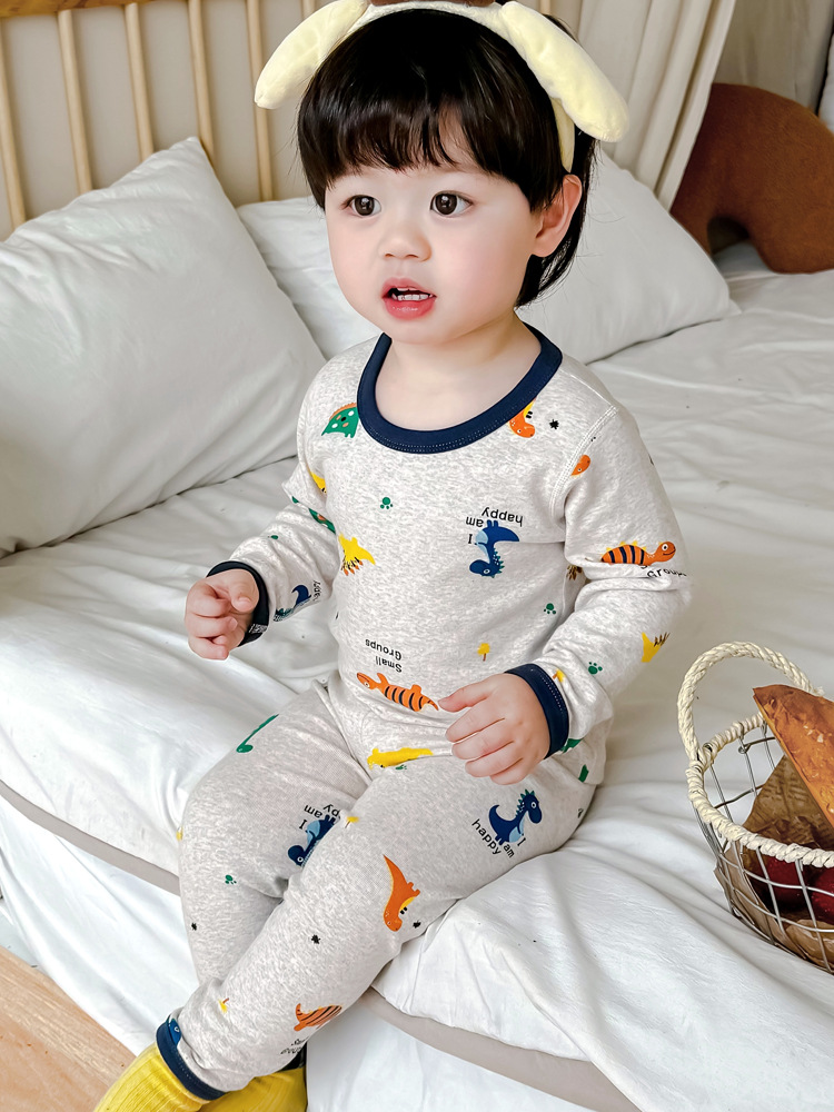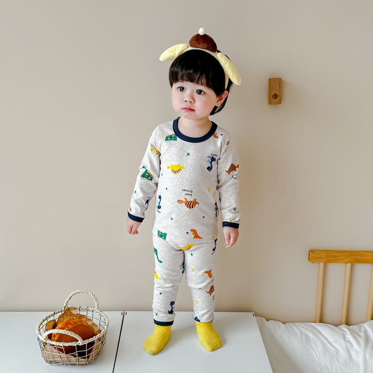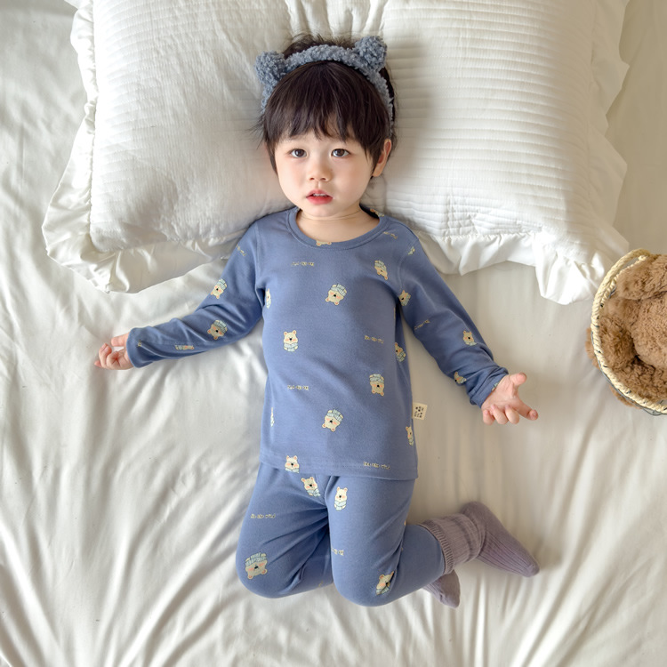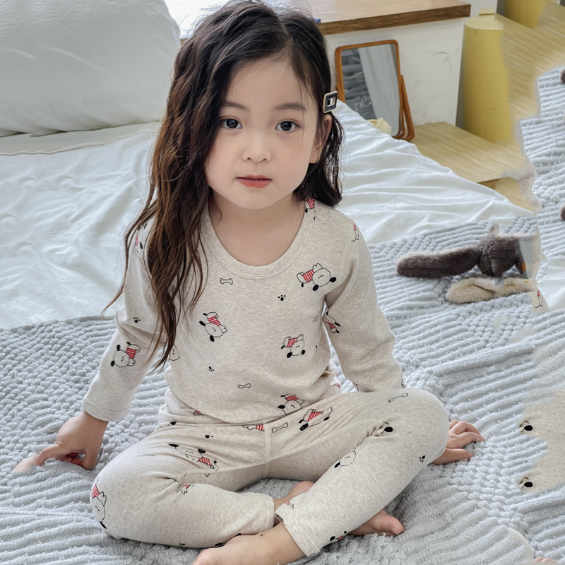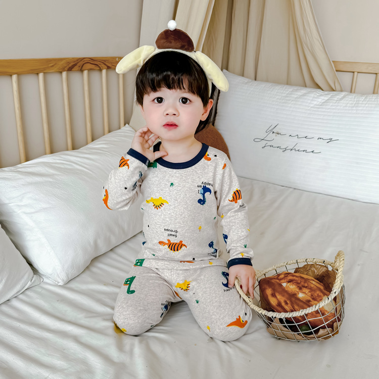 가을과 겨울 새로운 어린이 속옷 세트 순면 샌딩 뼈없는 소년과 소녀 가을 옷 가을 바지 아기 홈 옷 잠옷스토어 가기