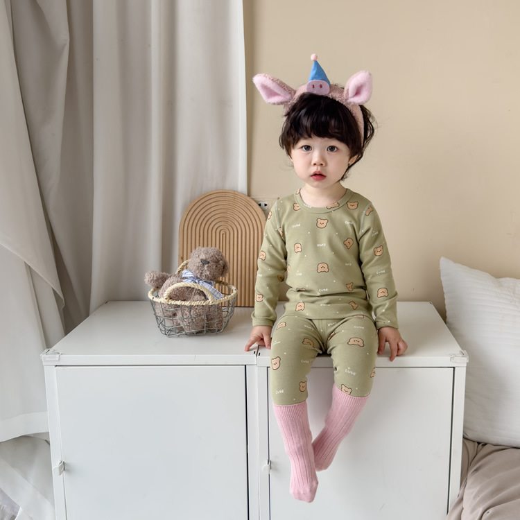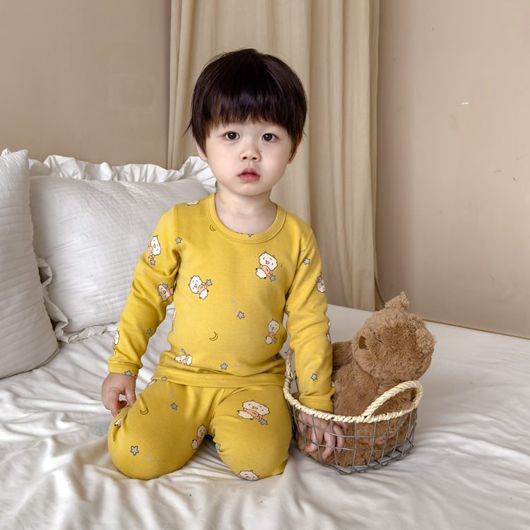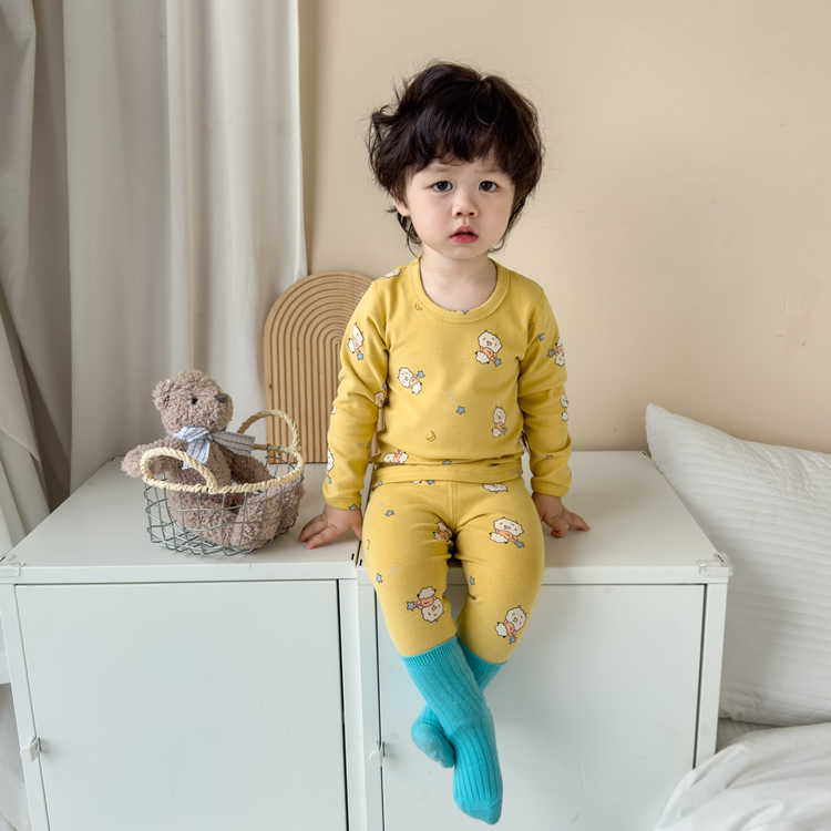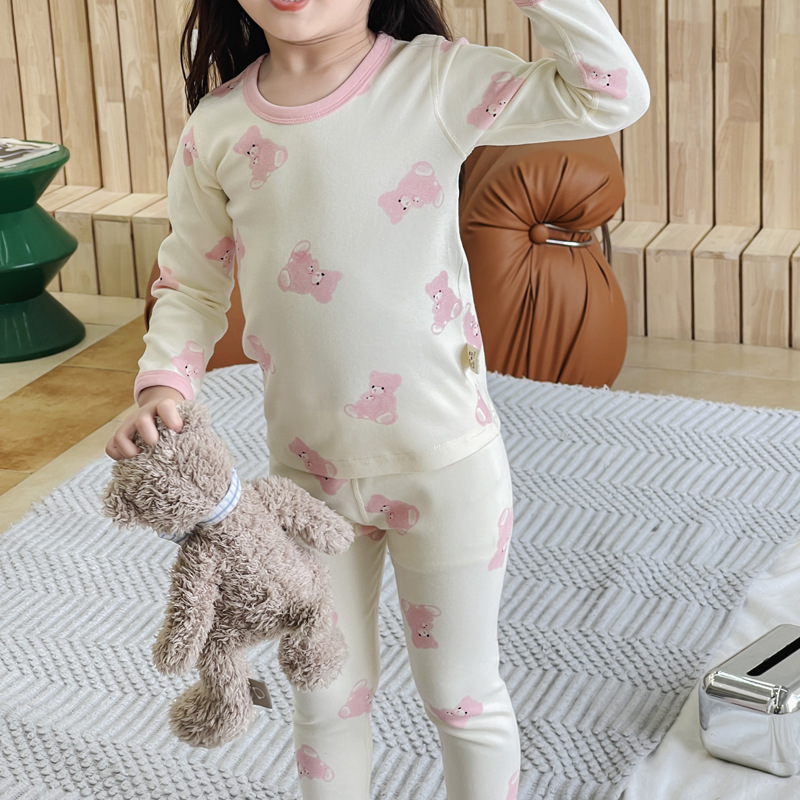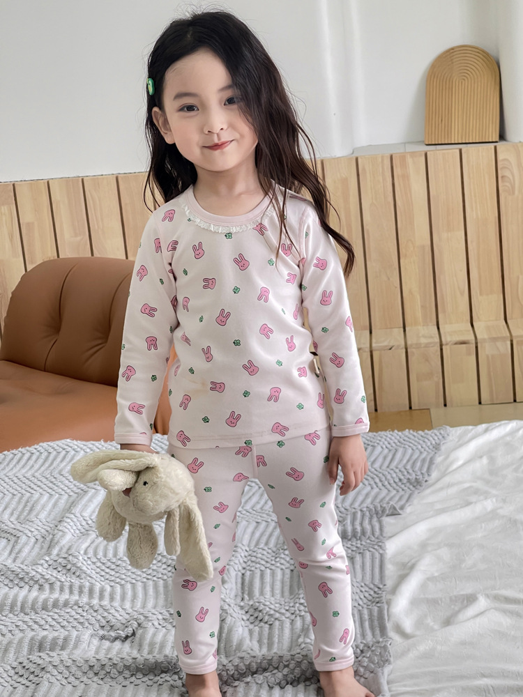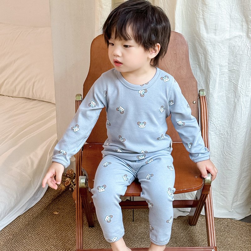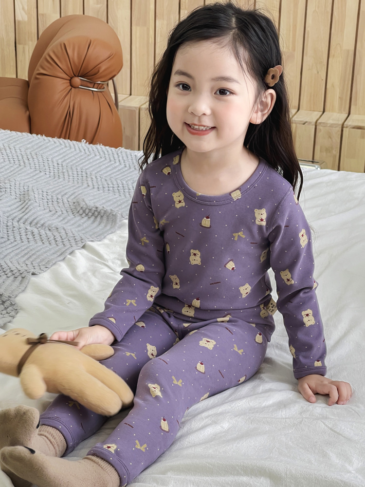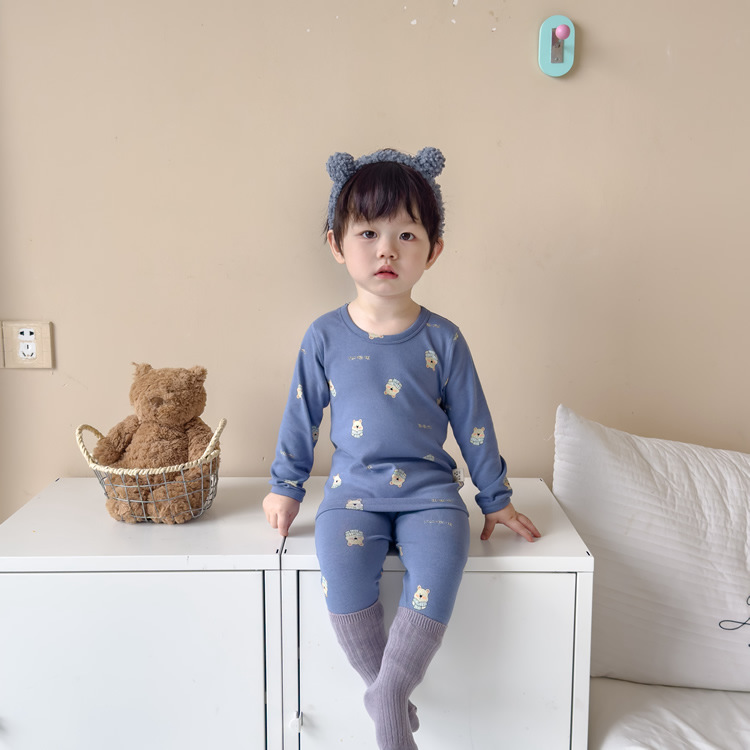 가을과 겨울 새로운 어린이 속옷 세트 순면 샌딩 뼈없는 소년과 소녀 가을 옷 가을 바지 아기 홈 옷 잠옷스토어 가기