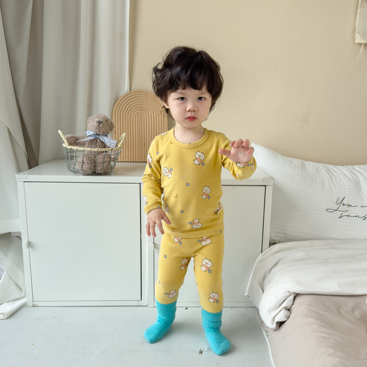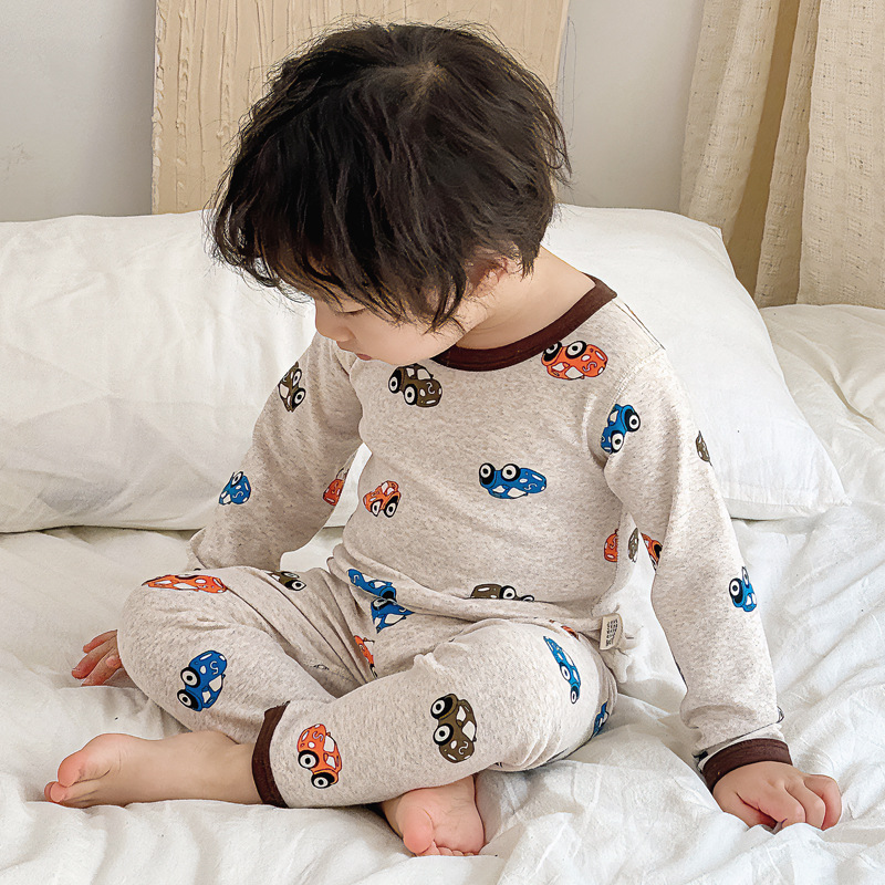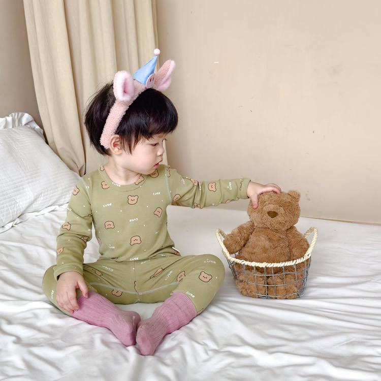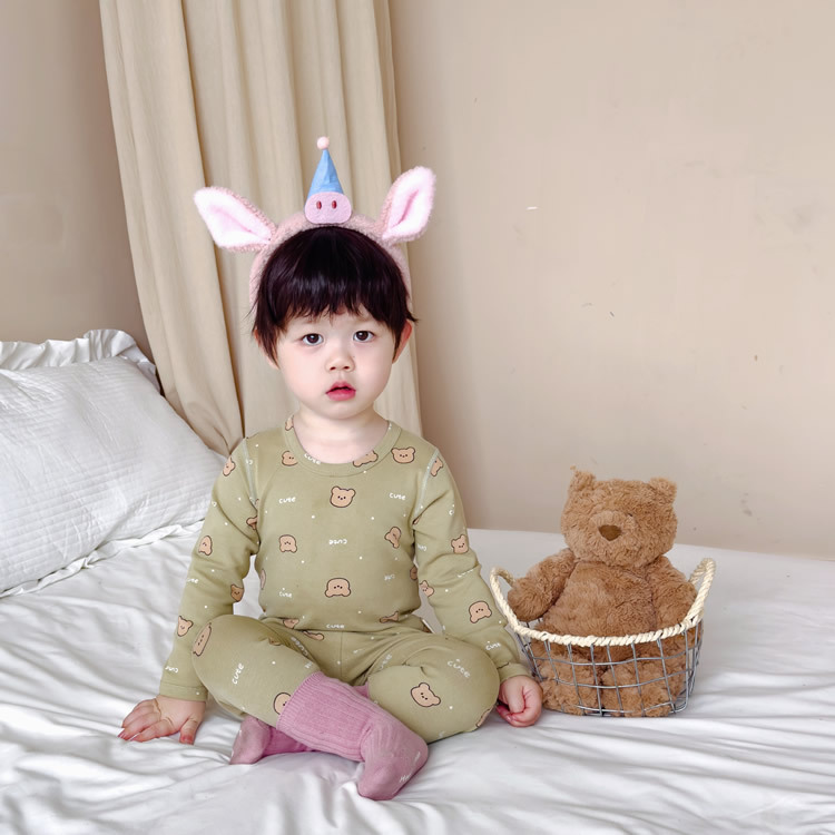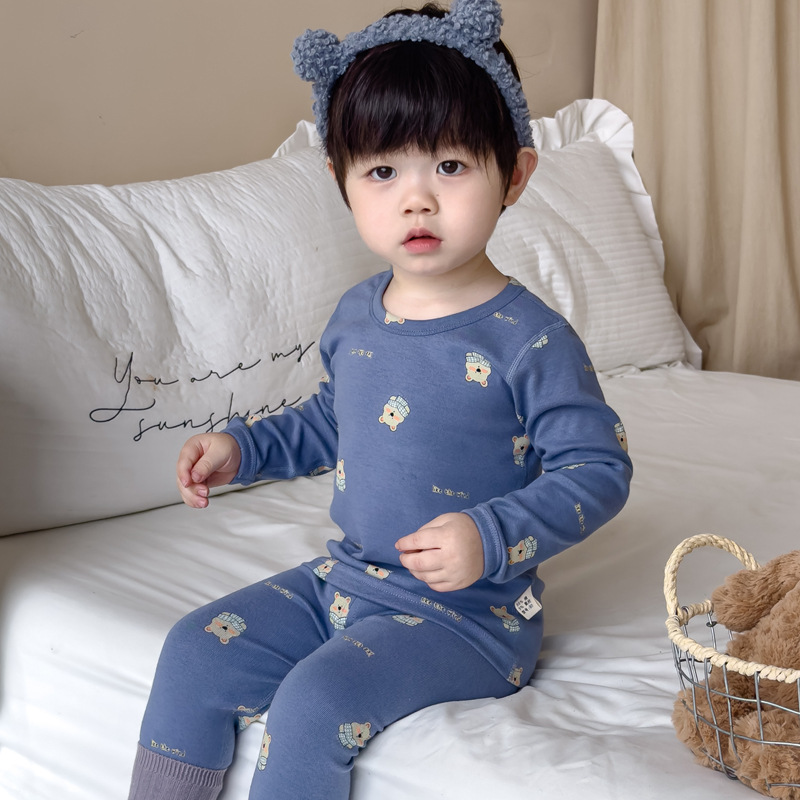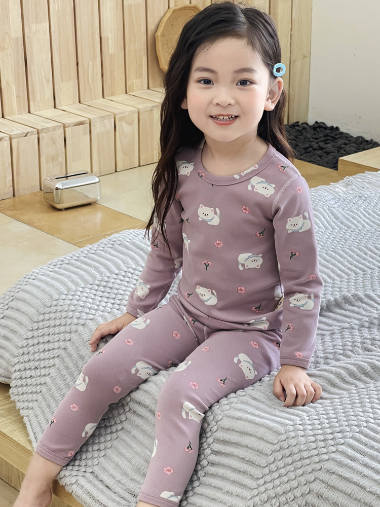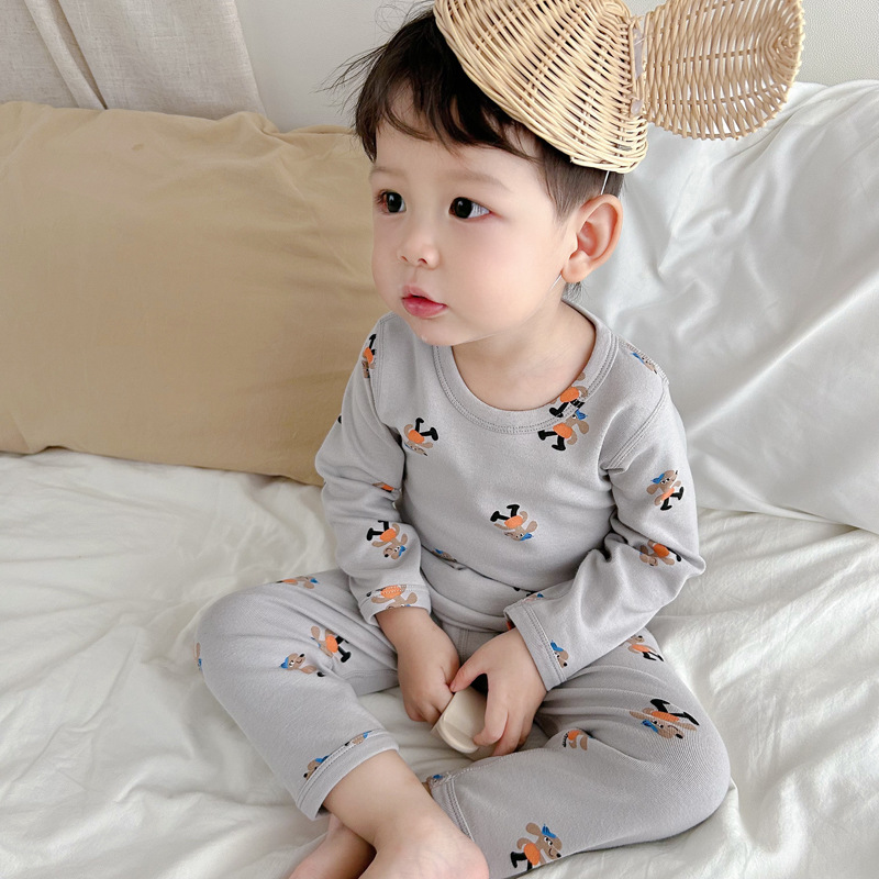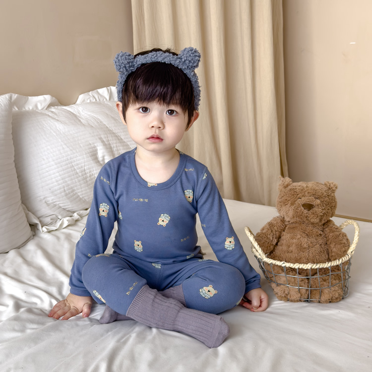 가을과 겨울 새로운 어린이 속옷 세트 순면 샌딩 뼈없는 소년과 소녀 가을 옷 가을 바지 아기 홈 옷 잠옷스토어 가기