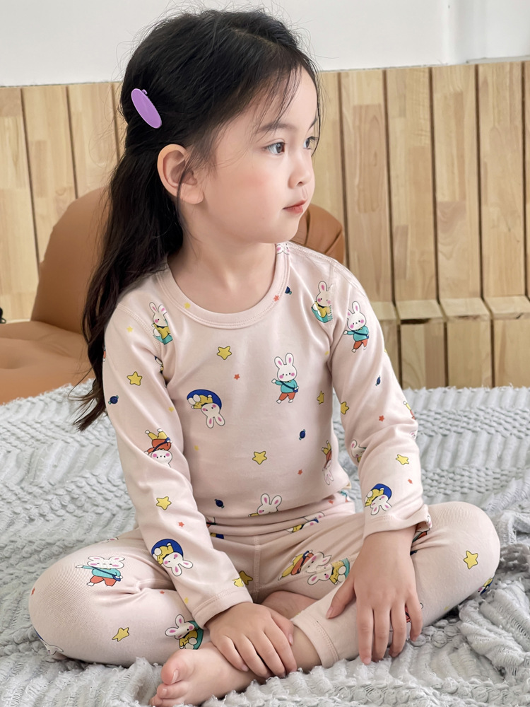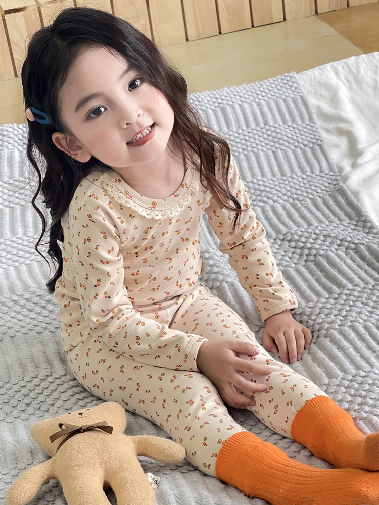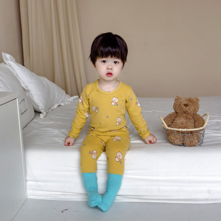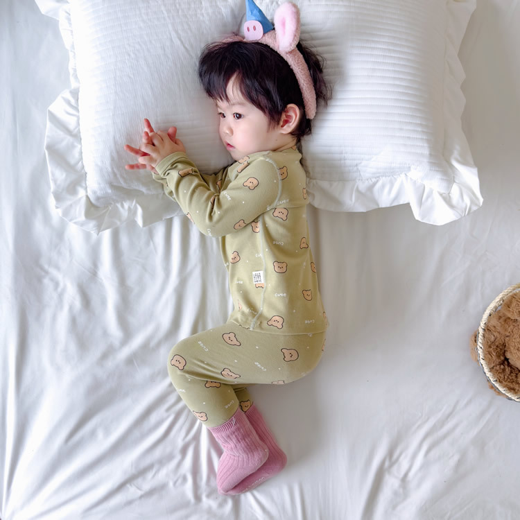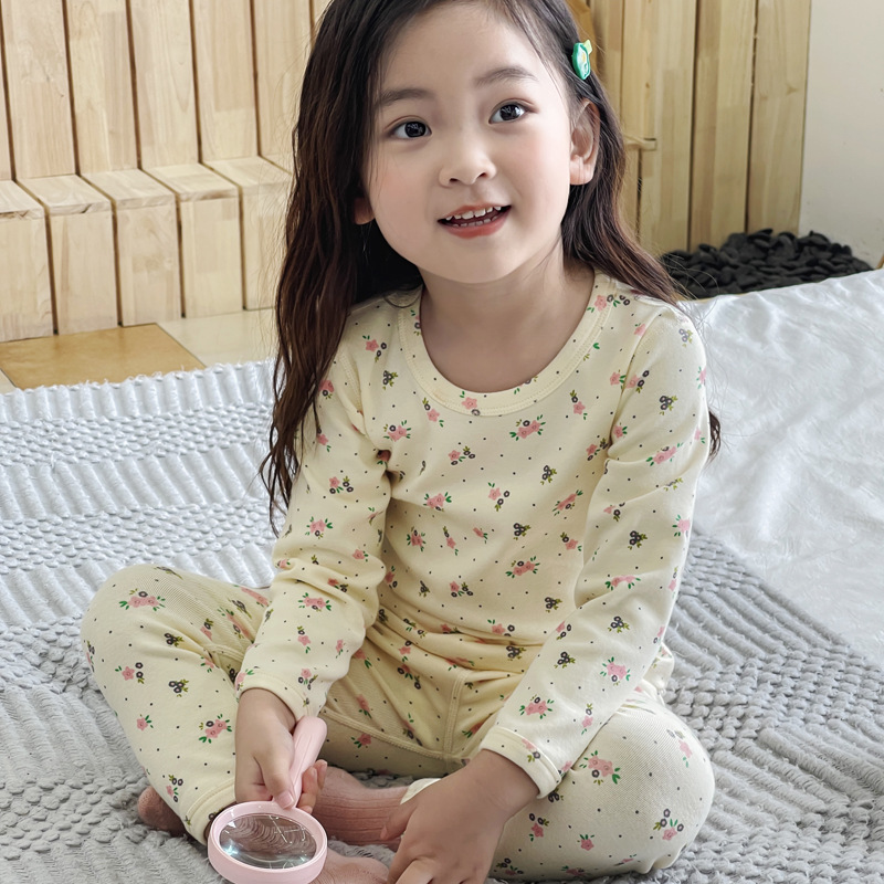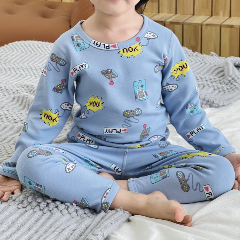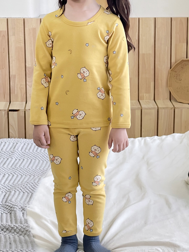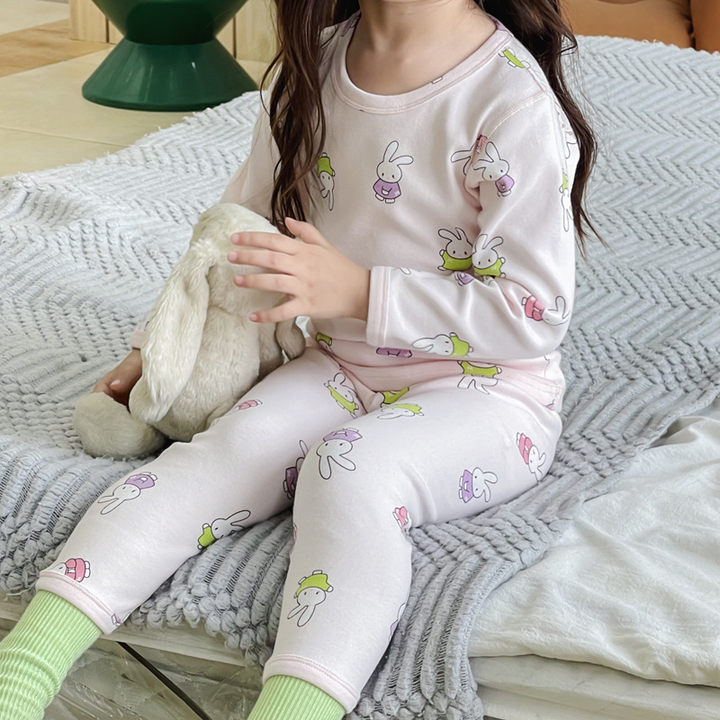 가을과 겨울 새로운 어린이 속옷 세트 순면 샌딩 뼈없는 소년과 소녀 가을 옷 가을 바지 아기 홈 옷 잠옷스토어 가기