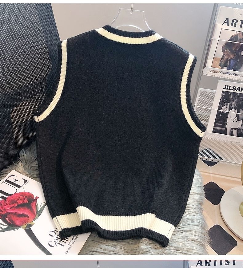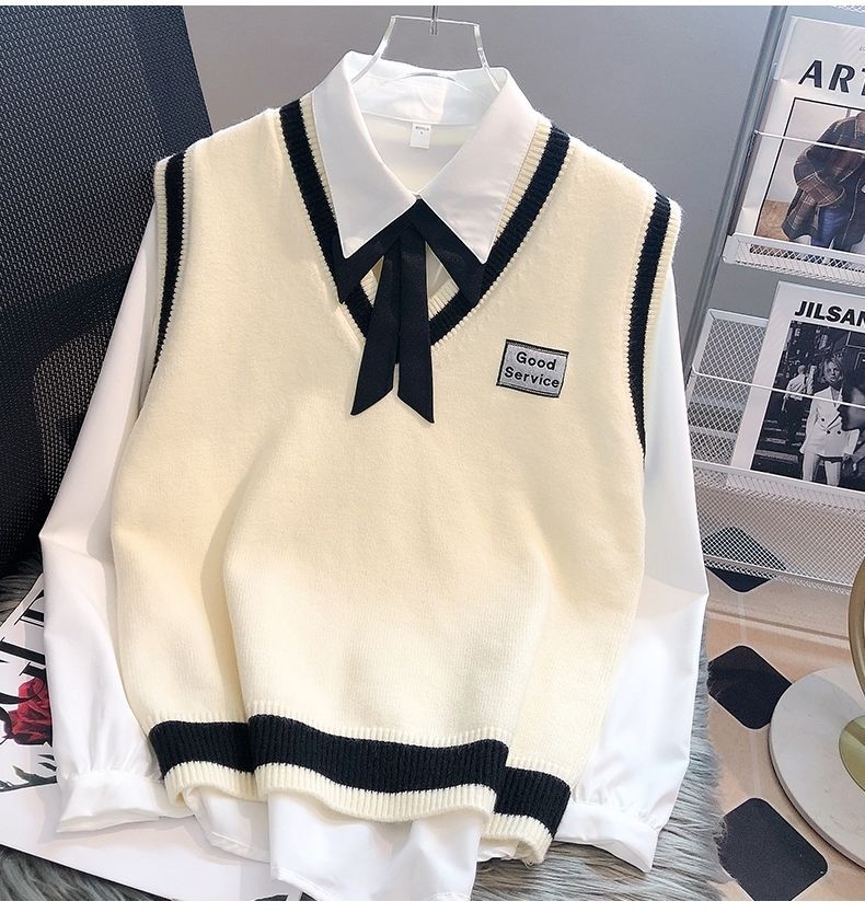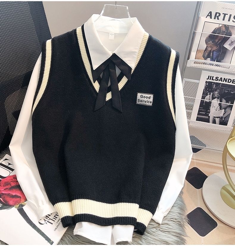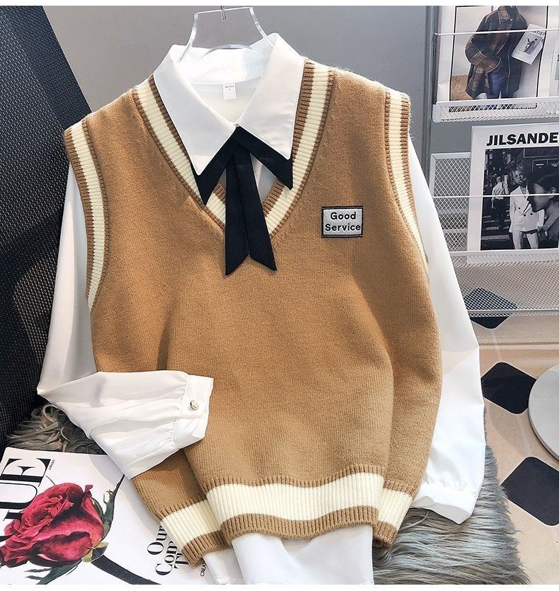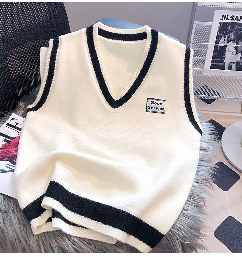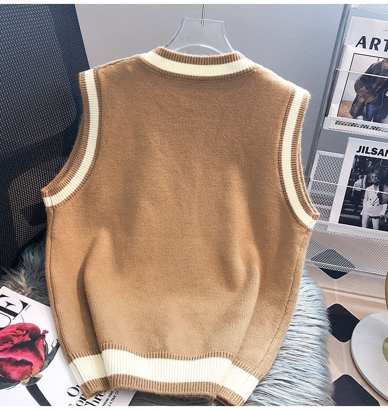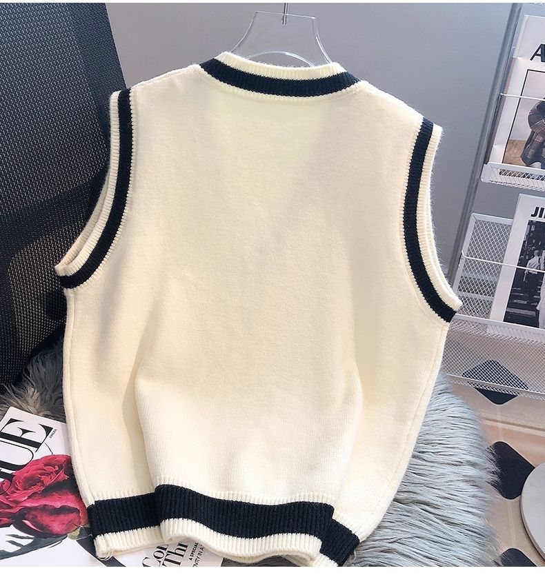 대학 스타일 니트 조끼 여성 가을/겨울 스택 외부 허리 코트 느슨한 V 넥 민소매 스웨터 조끼