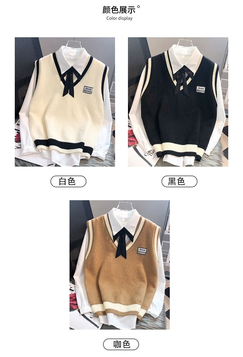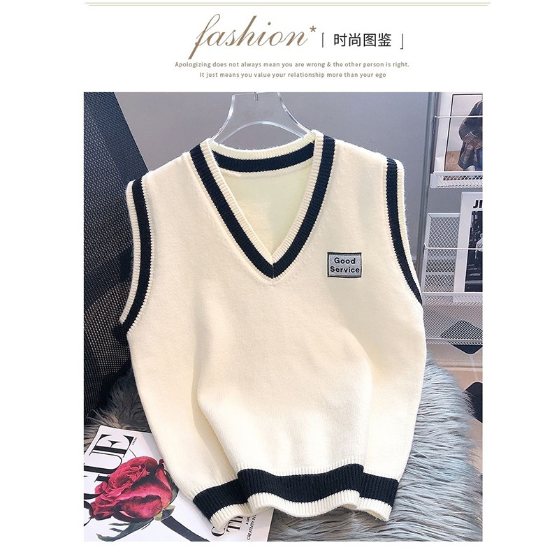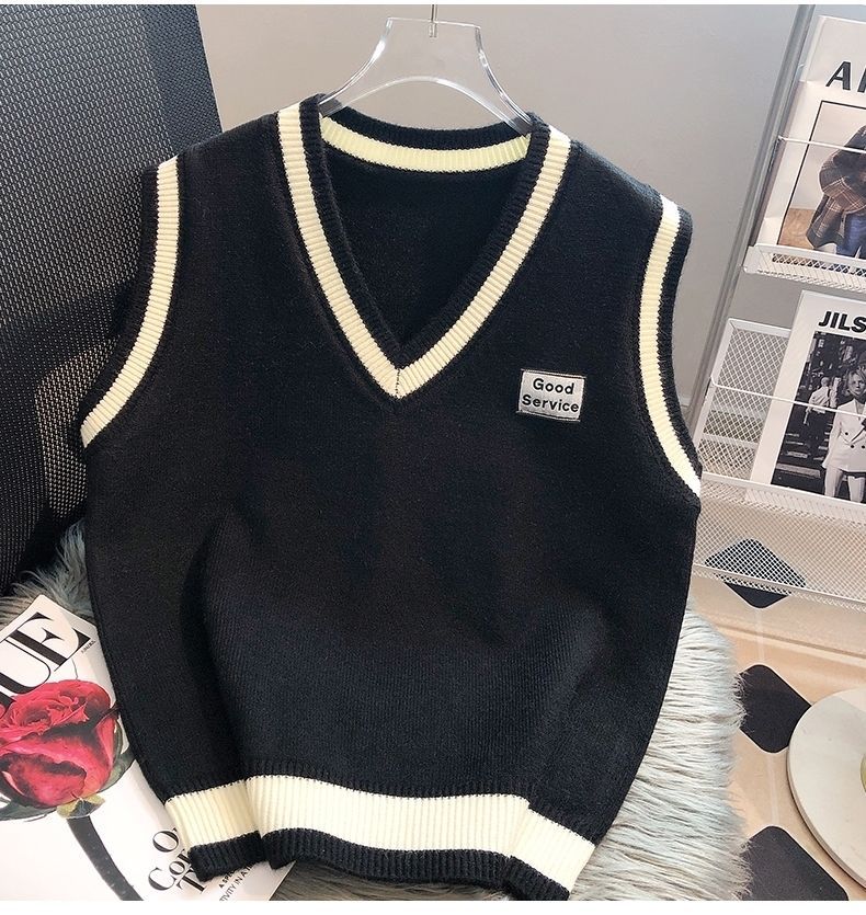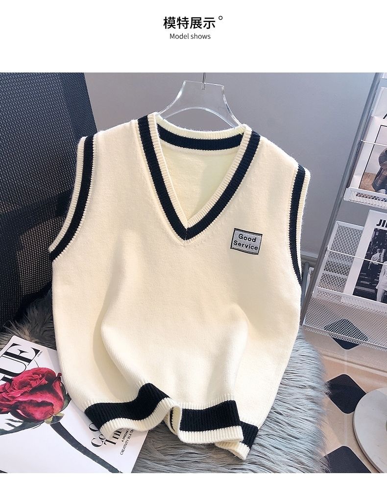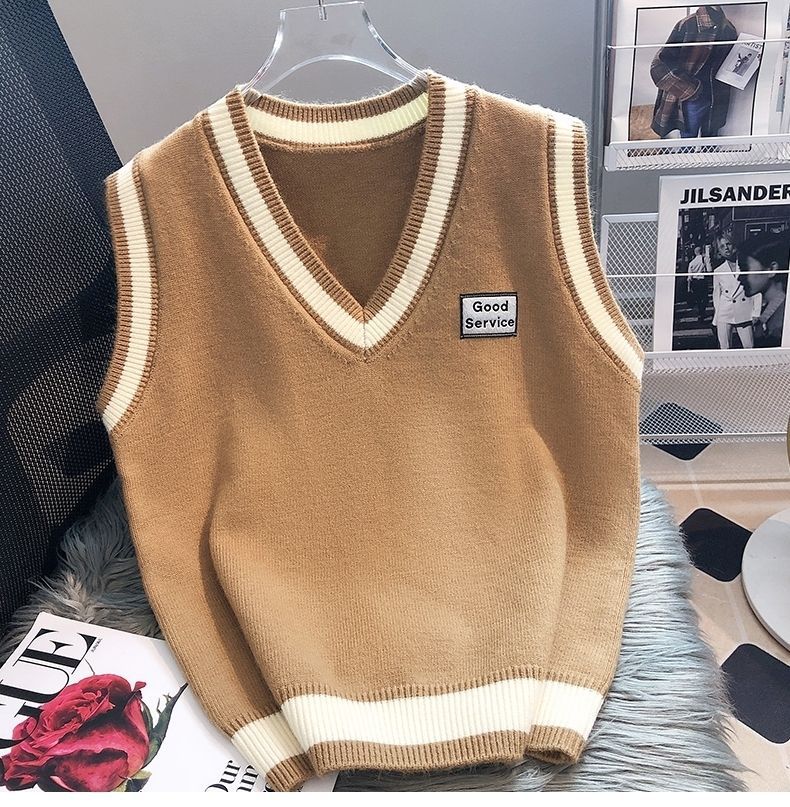 대학 스타일 니트 조끼 여성 가을/겨울 스택 외부 허리 코트 느슨한 V 넥 민소매 스웨터 조끼스토어 가기