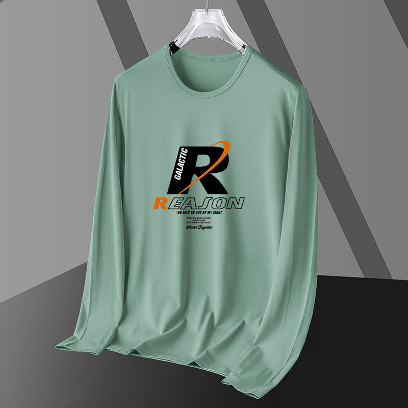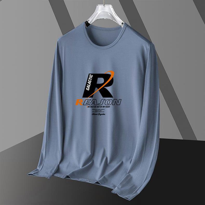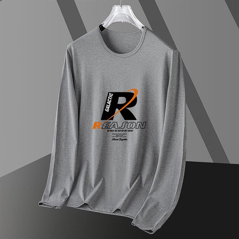 한국식 긴팔 티셔츠 남성용 프린트 라운드 넥 슬림핏 베이스 셔츠 캐주얼 올매치 퀵 건조 스포츠 톱 남자 트렌디