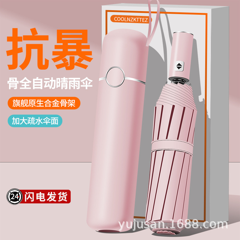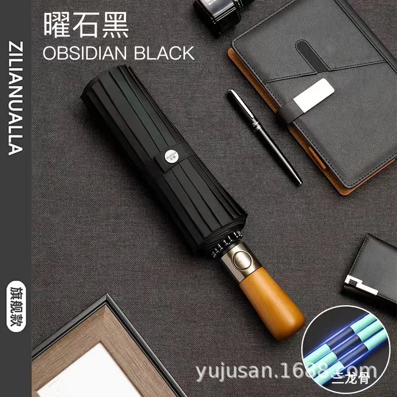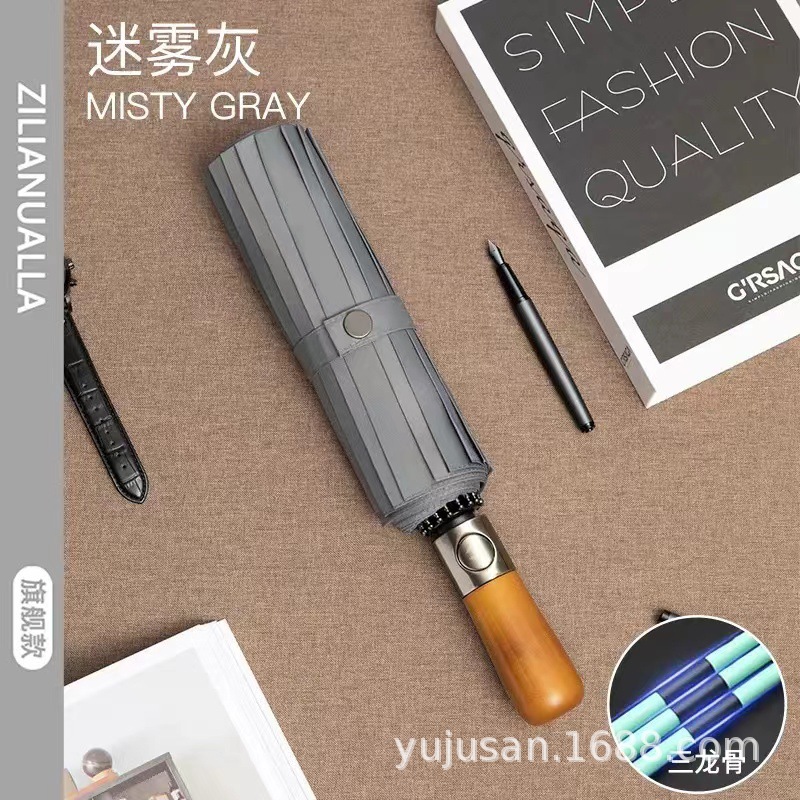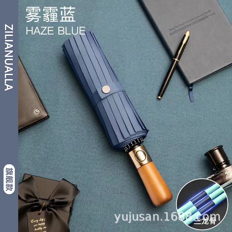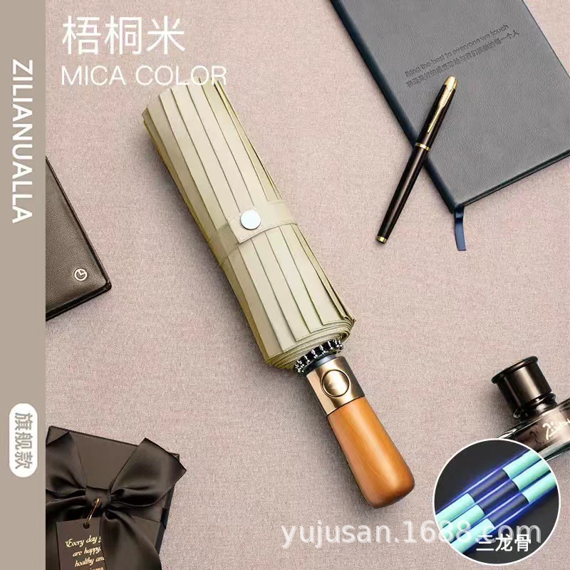 단단한 나무 패턴 144 뼈 완전 자동 우산 태양 보호 UV 보호 고정 남성의 증가 된 태양 커버 우산 인쇄 로고 시스템스토어 가기