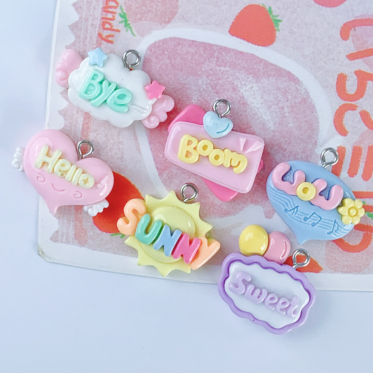 창조적 인 태양 하트 모양의 영어 판 펜던트 수지 액세서리 SUNY 편지 카드 diy 보석 귀걸이 펜던트 배치