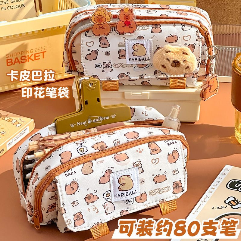 카피 발라 플립 연필 케이스 만화 귀여운 고가의 3 층 문구 상자 초등 및 중등 학교 학생을위한 대용량 연필 케이스스토어 가기