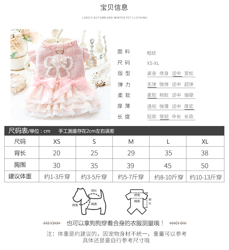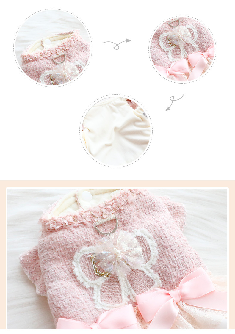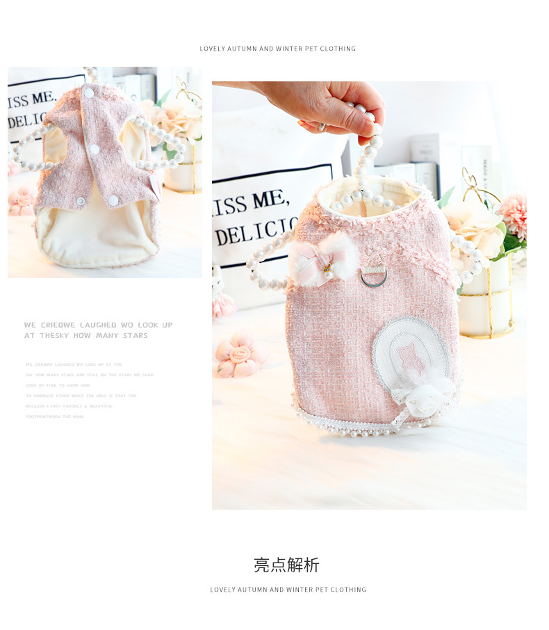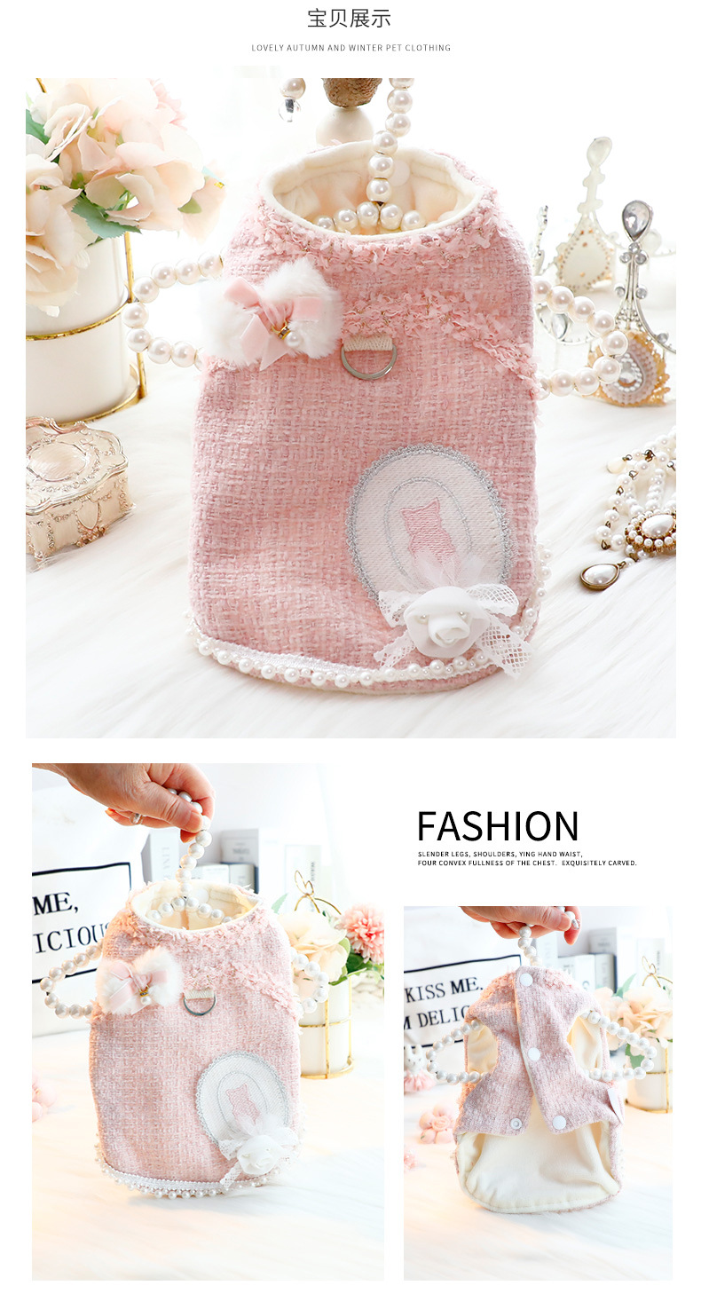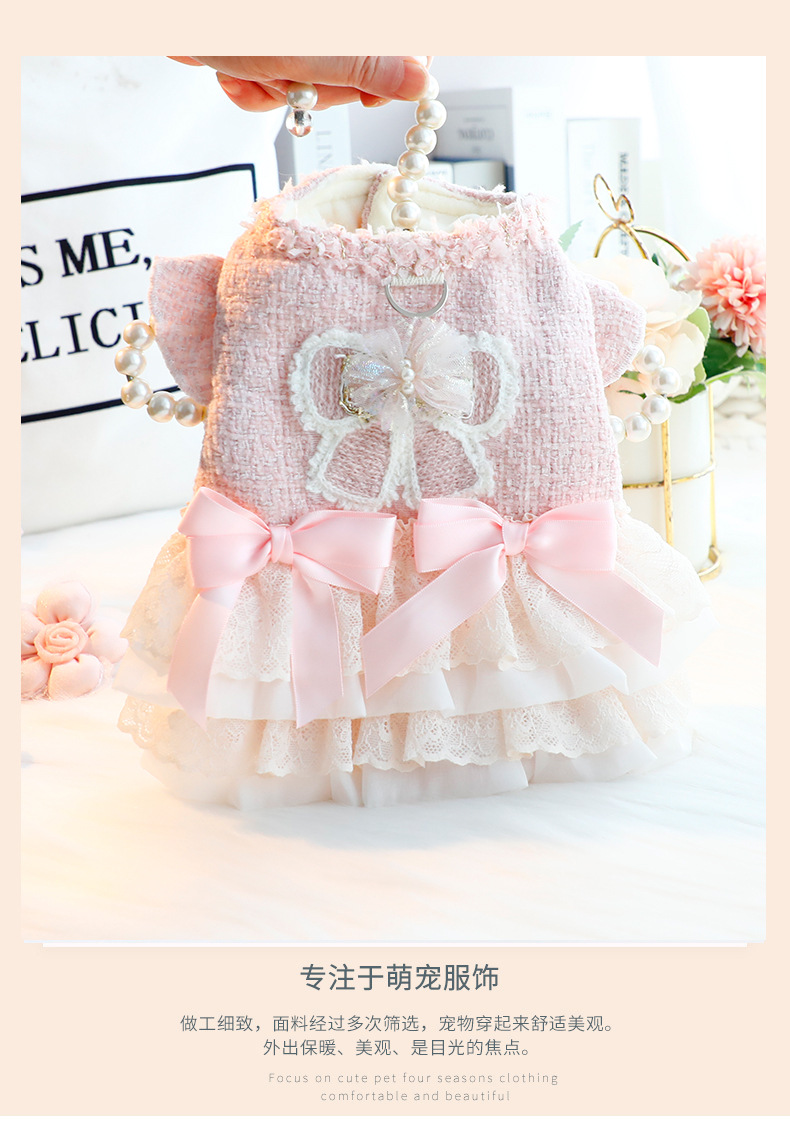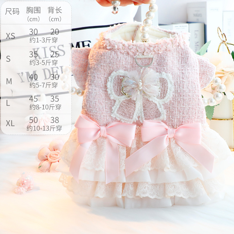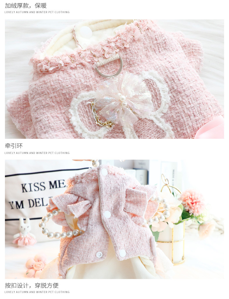 개 옷 가을과 겨울 두꺼운 고양이 공주 원피스 핑크 견인 샤넬 스타일 작은 개 테디 애완 동물 5853