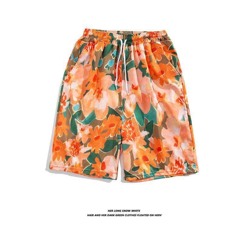 하와이안 비치 바지 남자 여름 뉴 홍콩 스타일 루즈 캐주얼 홈 반바지 한국식 해변 커플 바지