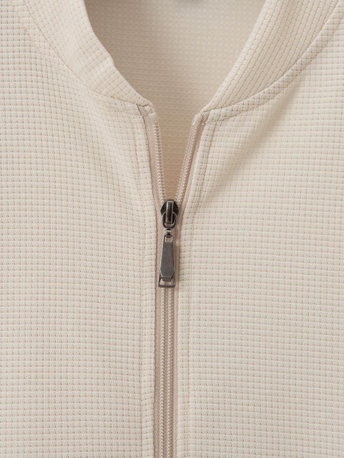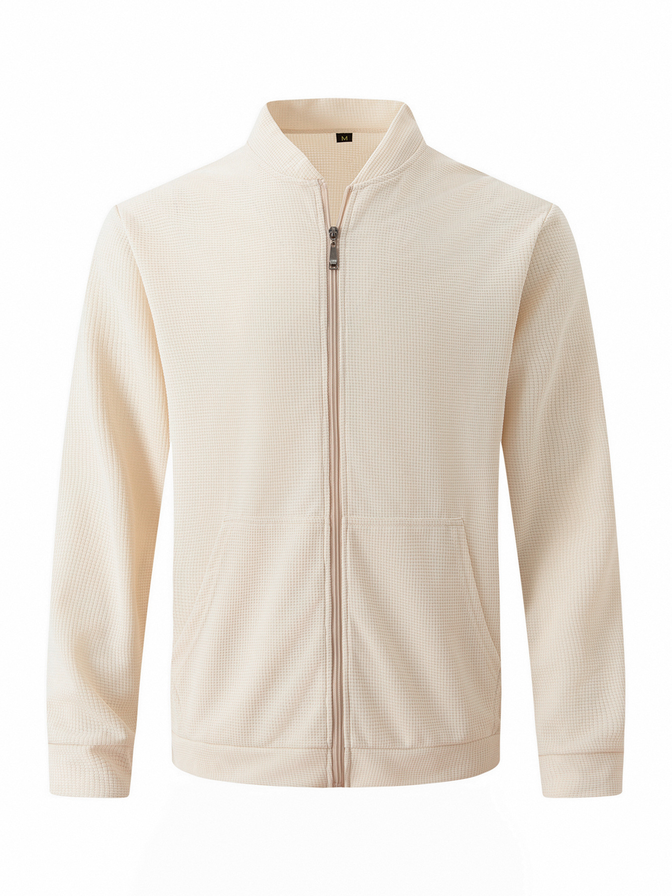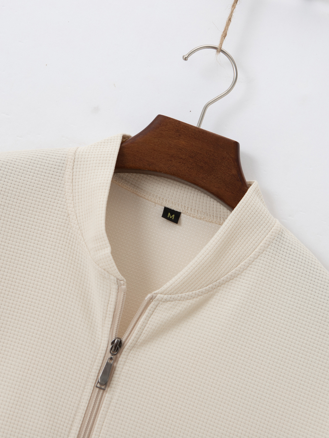 유럽과 미국의 국경 2024 년 남자 가을과 겨울 새로운 와플 단색 지퍼 야구 세트 포켓 긴팔 코트