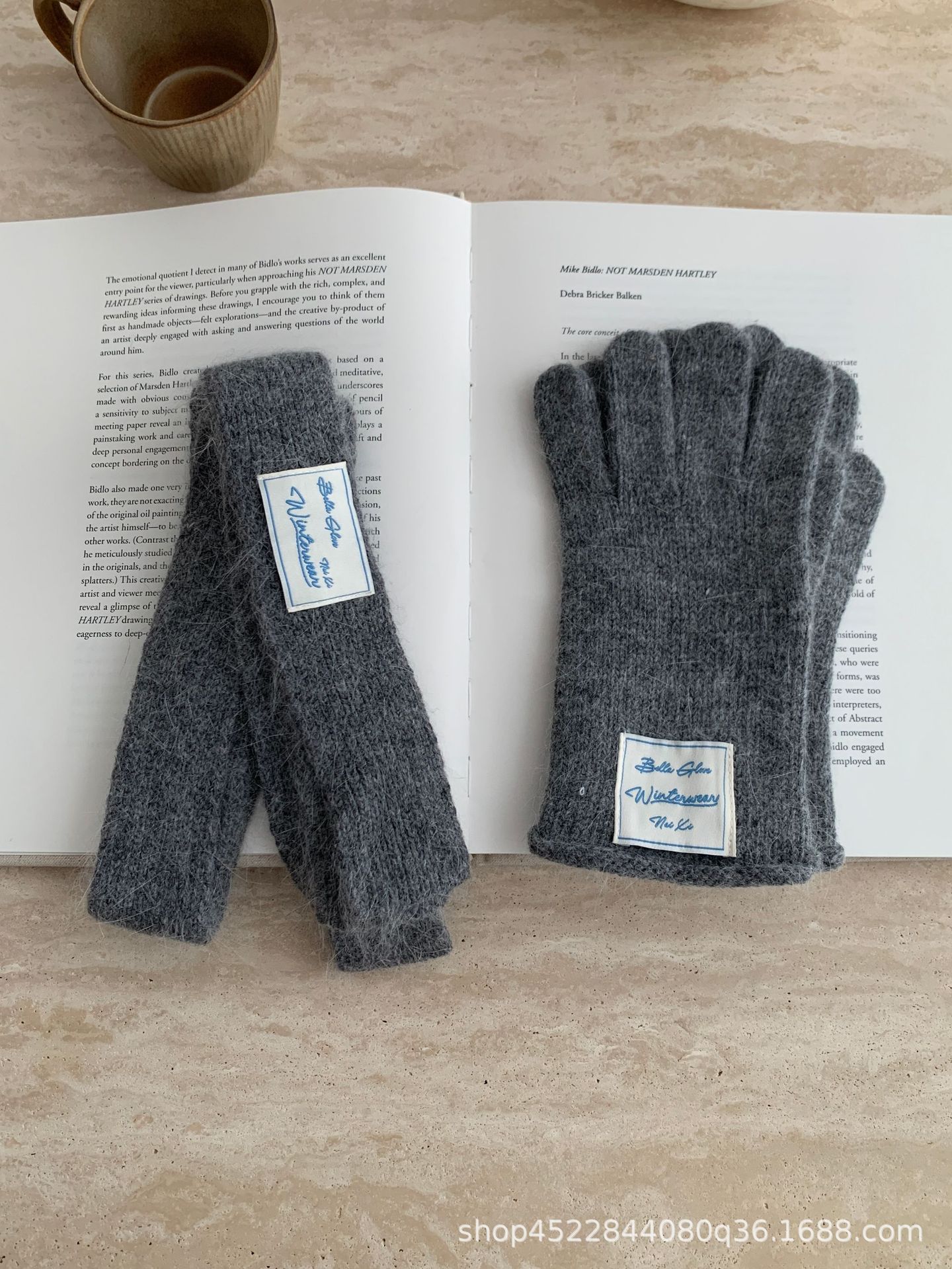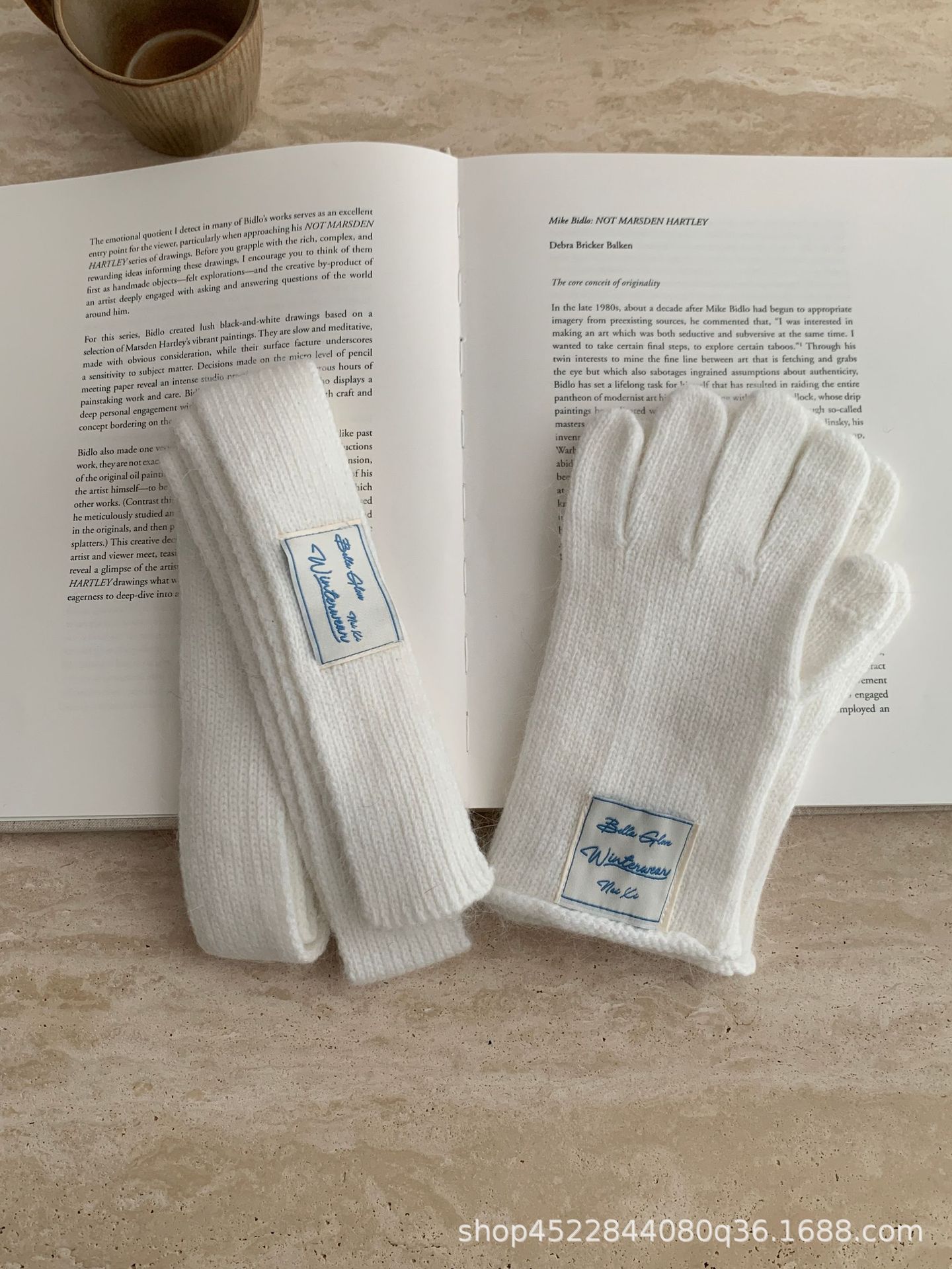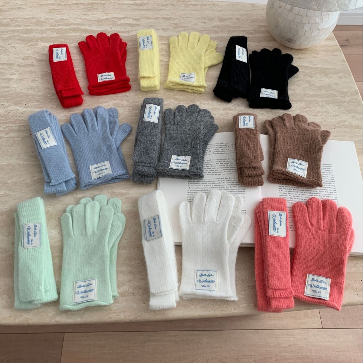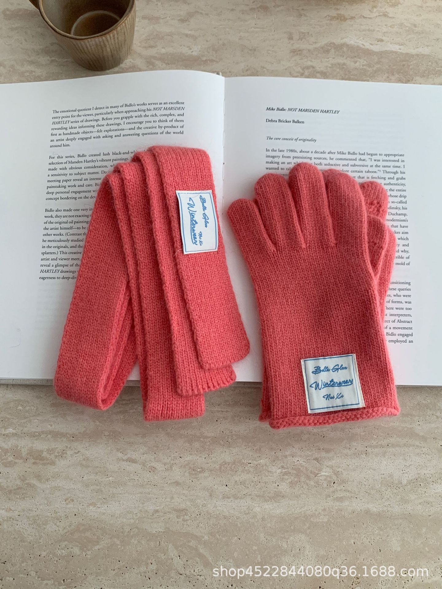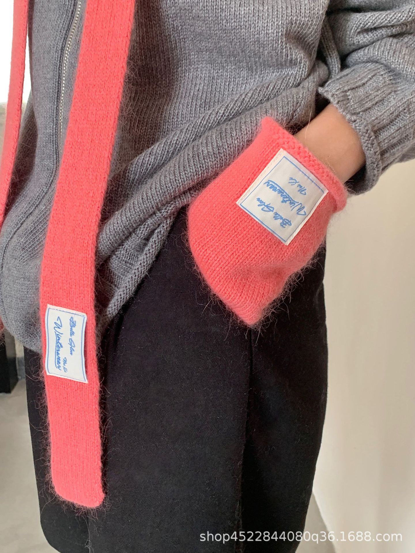 한국 새로운 니트 토끼 모피 장갑 스카프 세트 여성의 겨울 따뜻한 신선한 색상 학생 작은 스카프스토어 가기
