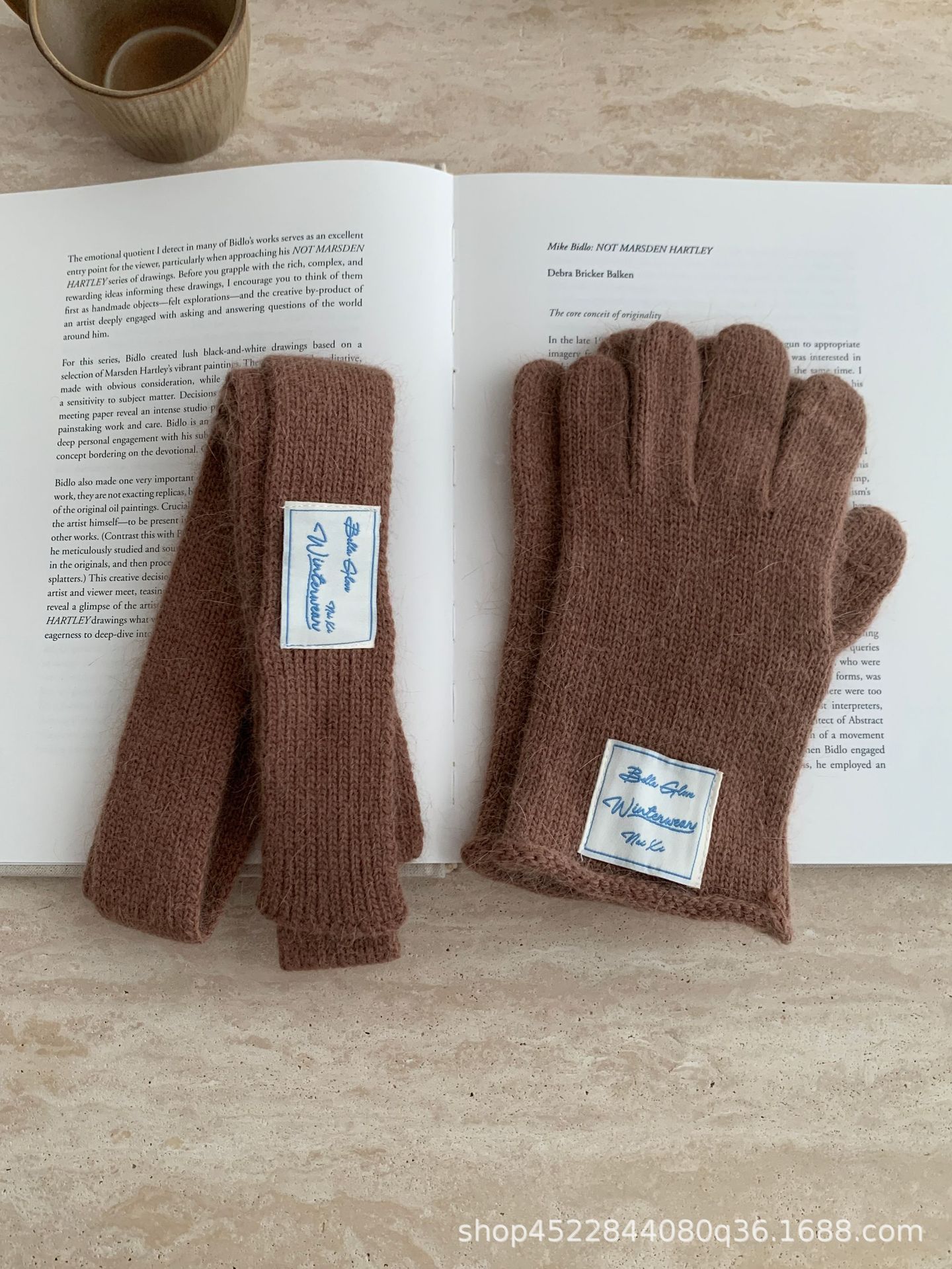 한국 새로운 니트 토끼 모피 장갑 스카프 세트 여성의 겨울 따뜻한 신선한 색상 학생 작은 스카프