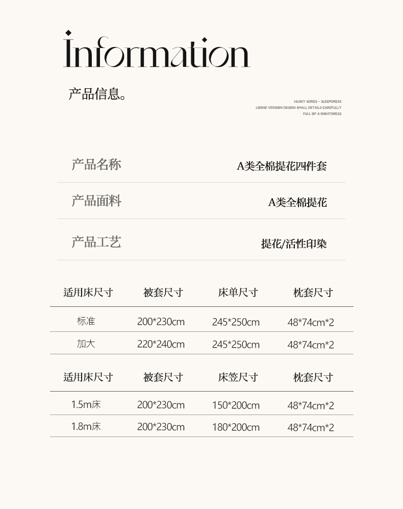 • 2.0m 침대 시트 4종 세트