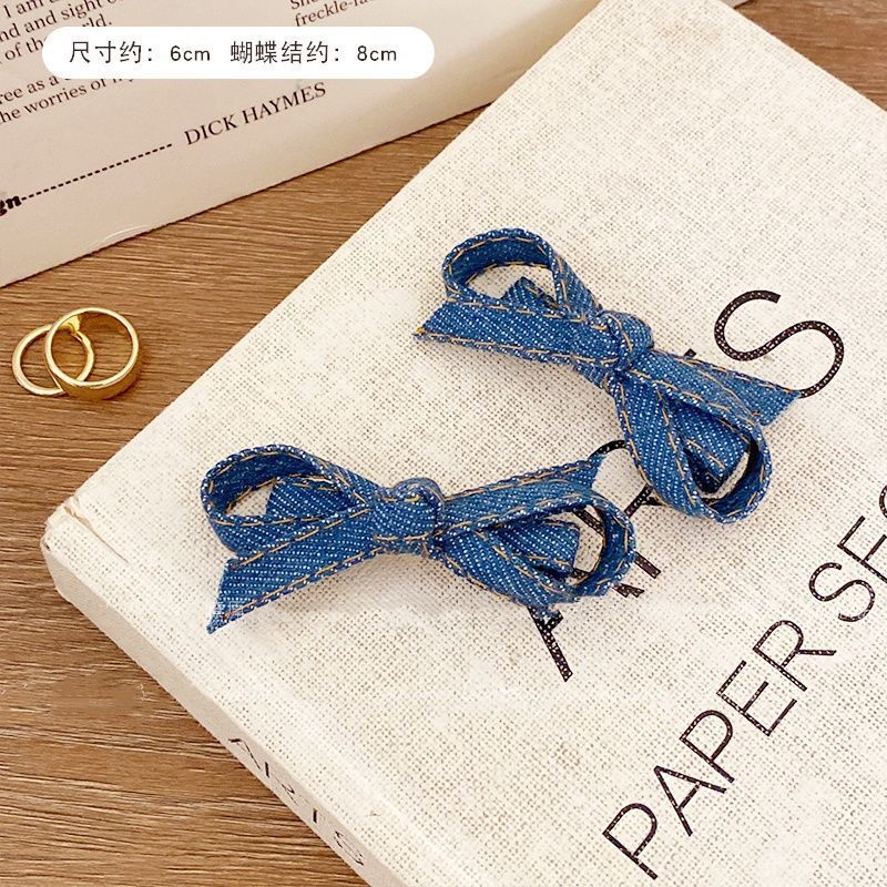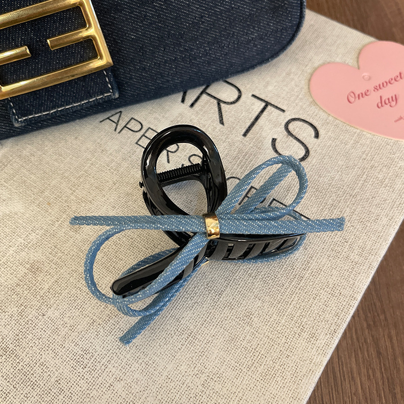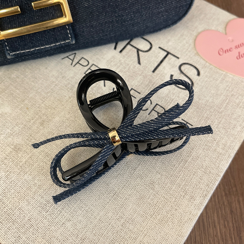 • 다크 블루 데님 보우 덕빌 클립