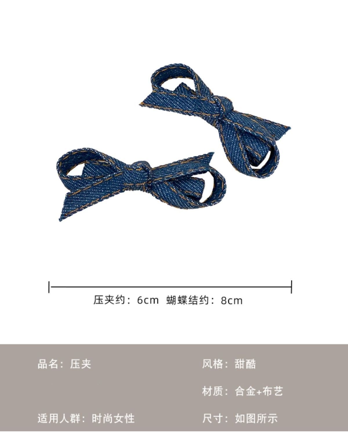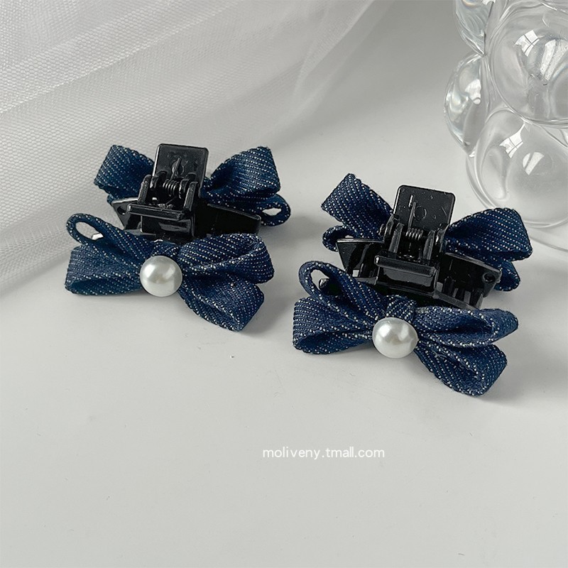 • 다크 블루 데님 보우 클립
