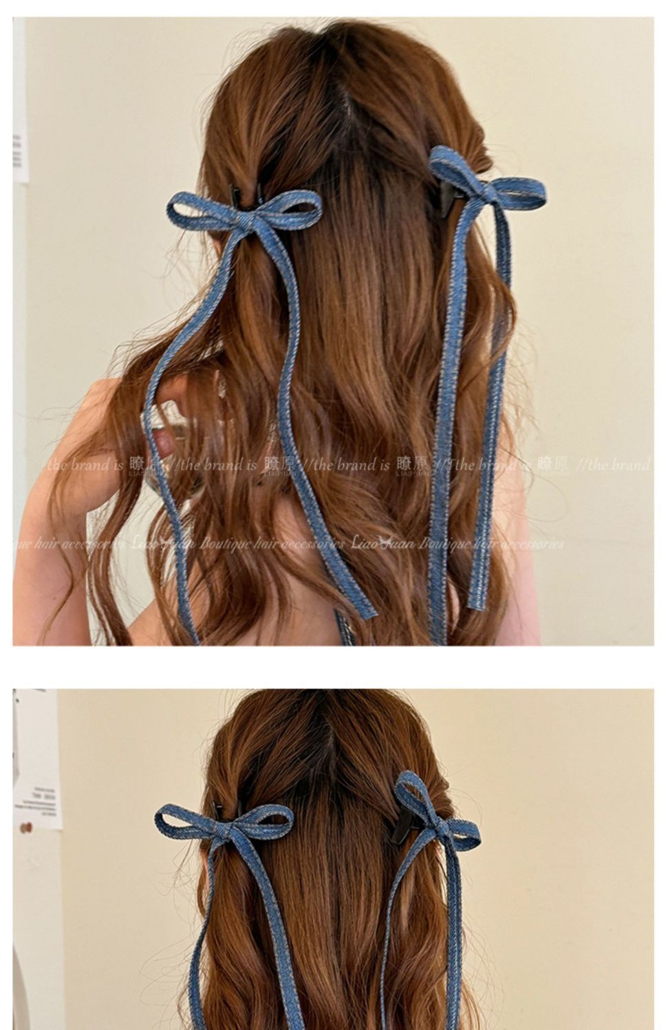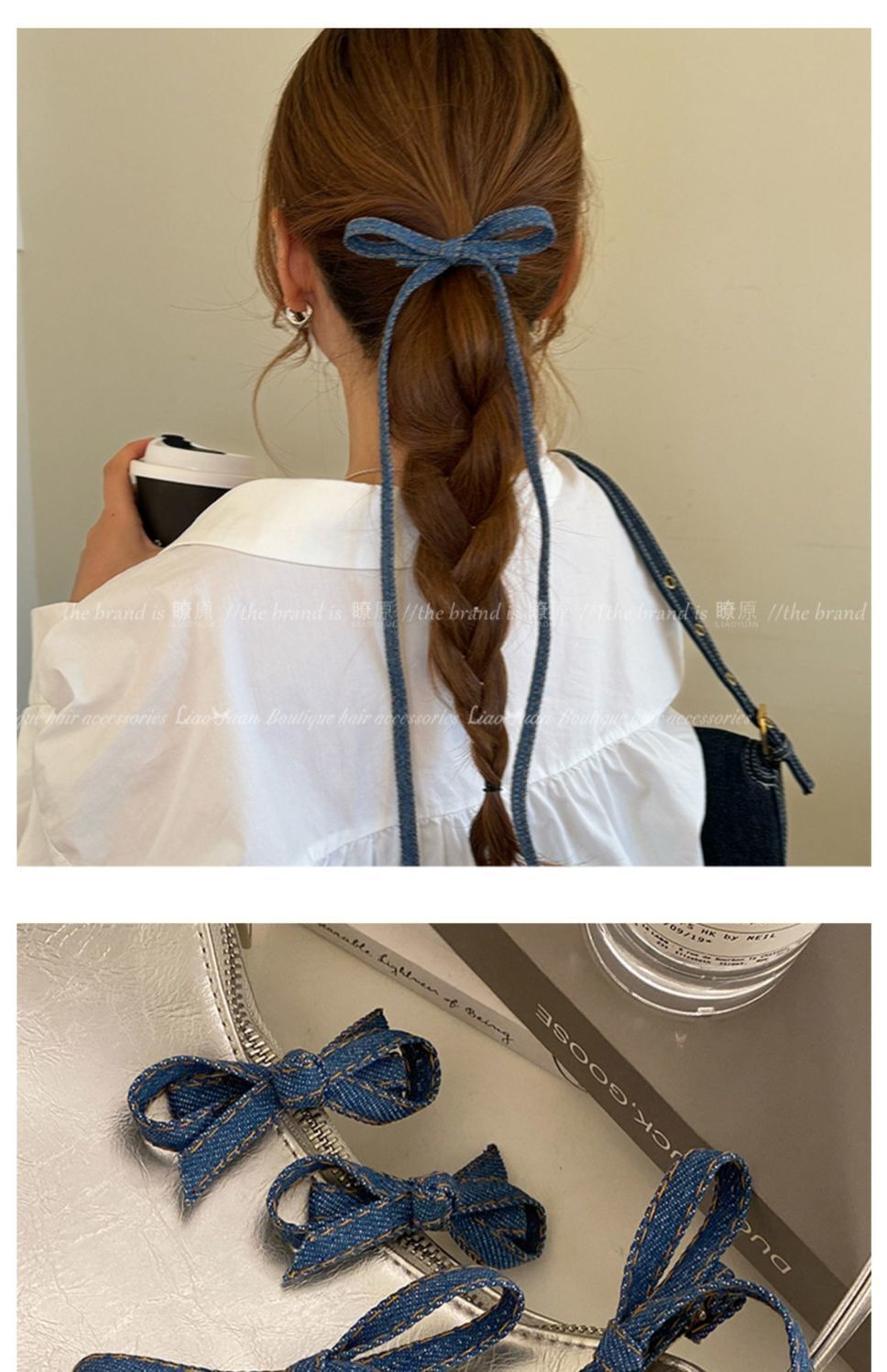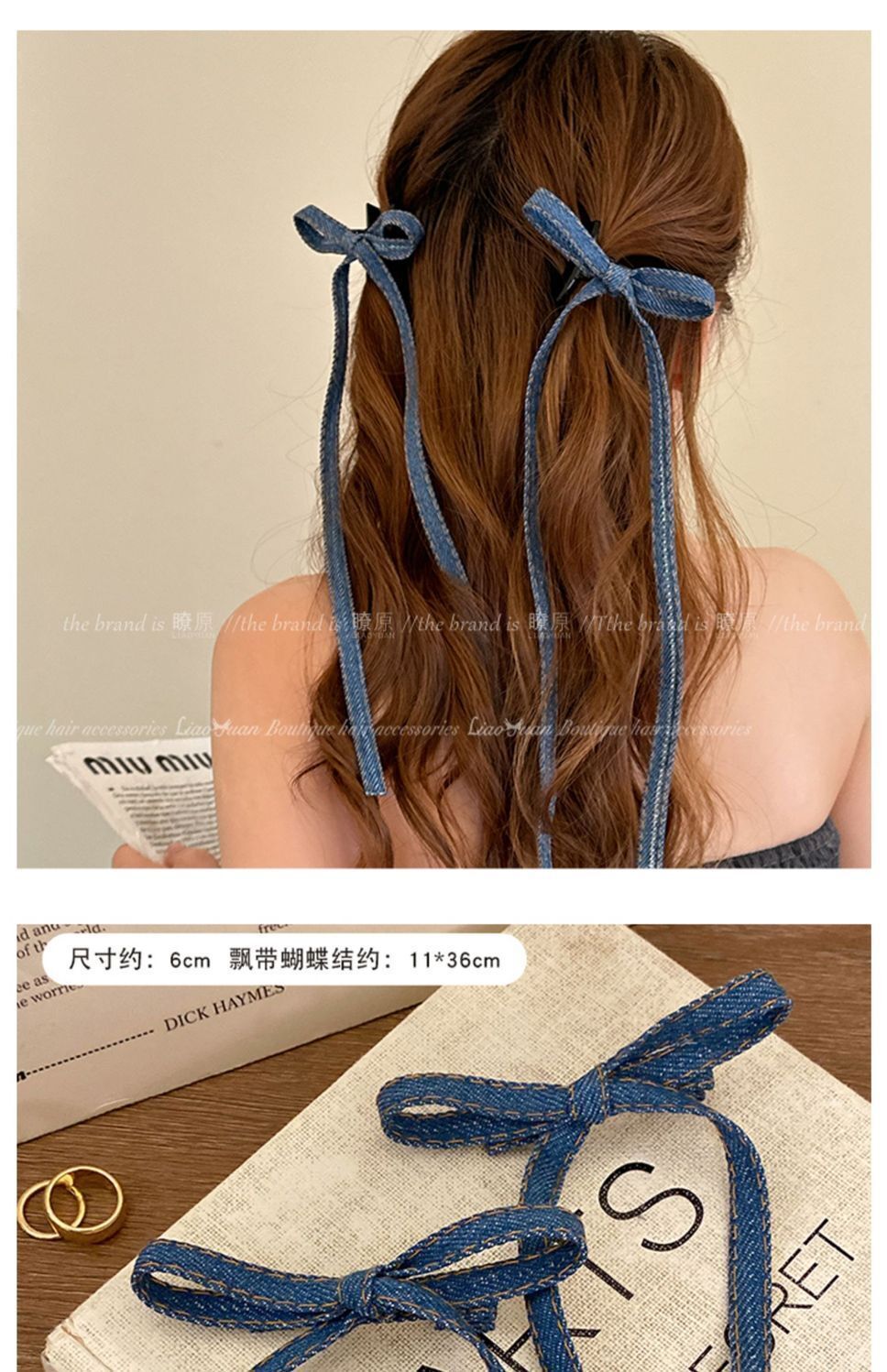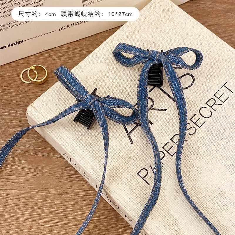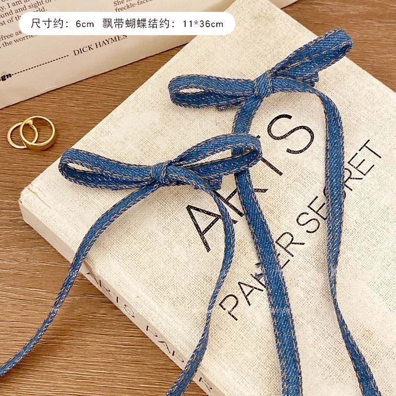 • 긴 데님 리본 클립