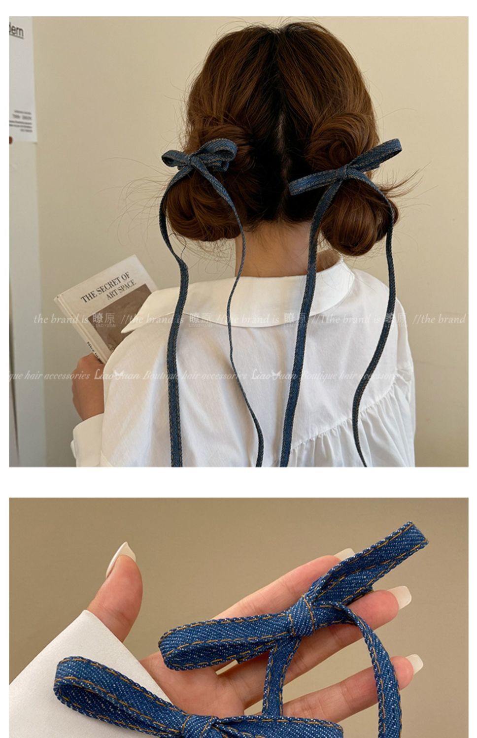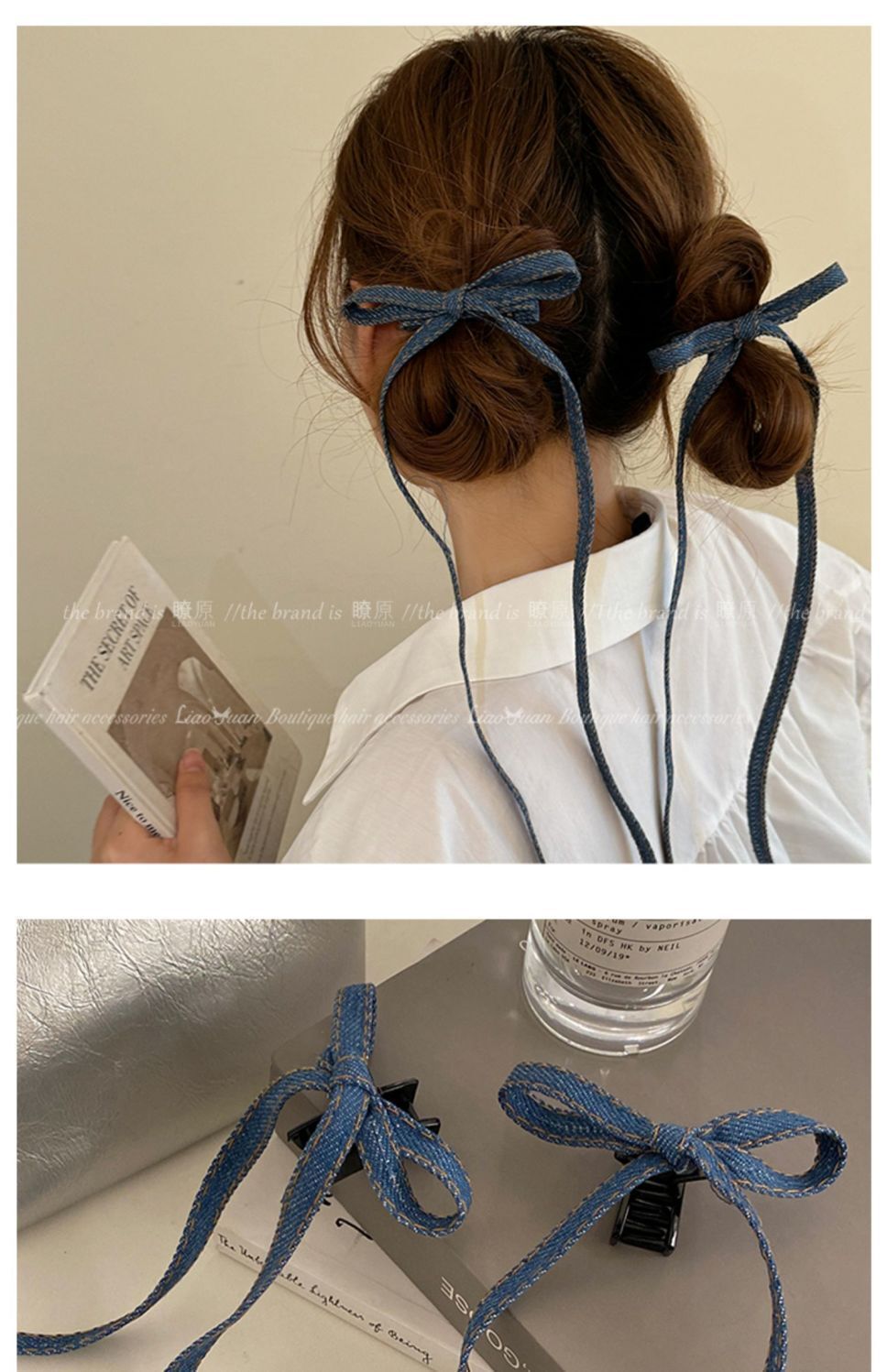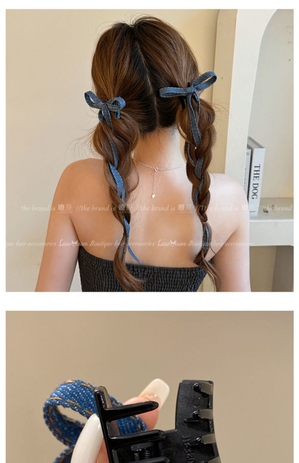 • 긴 데님 리본 클립
