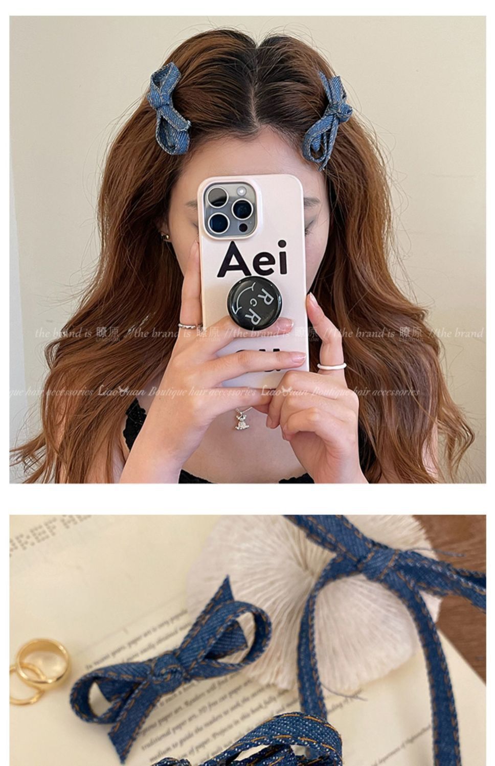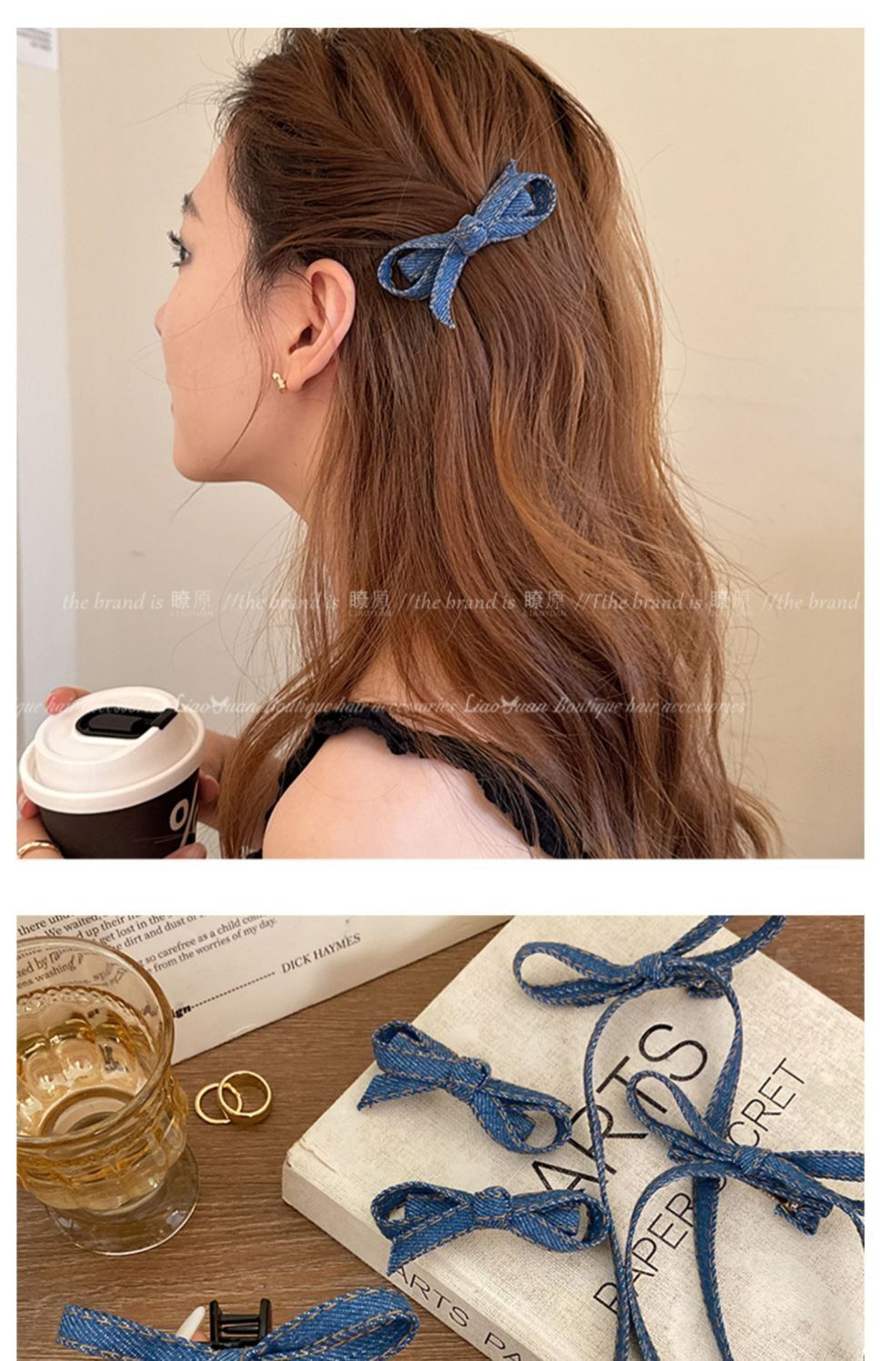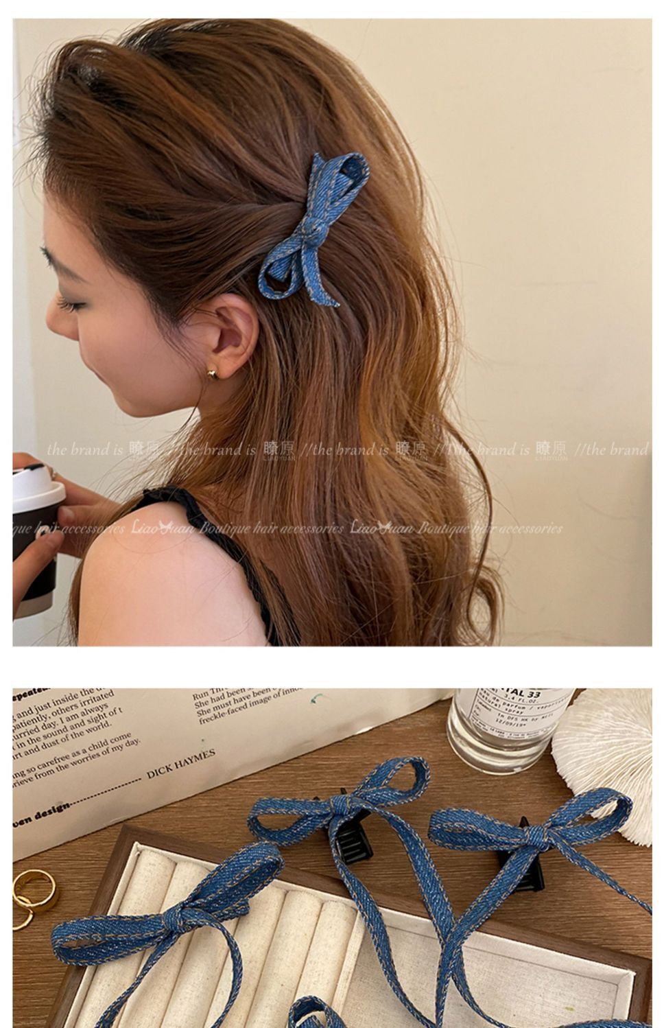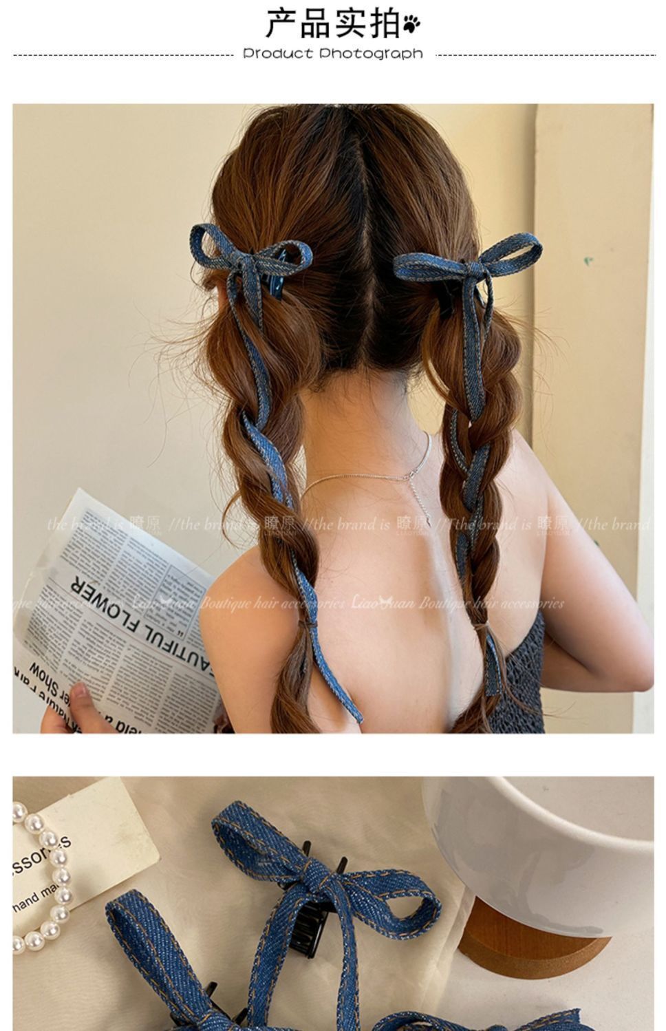 • 긴 데님 리본 클립