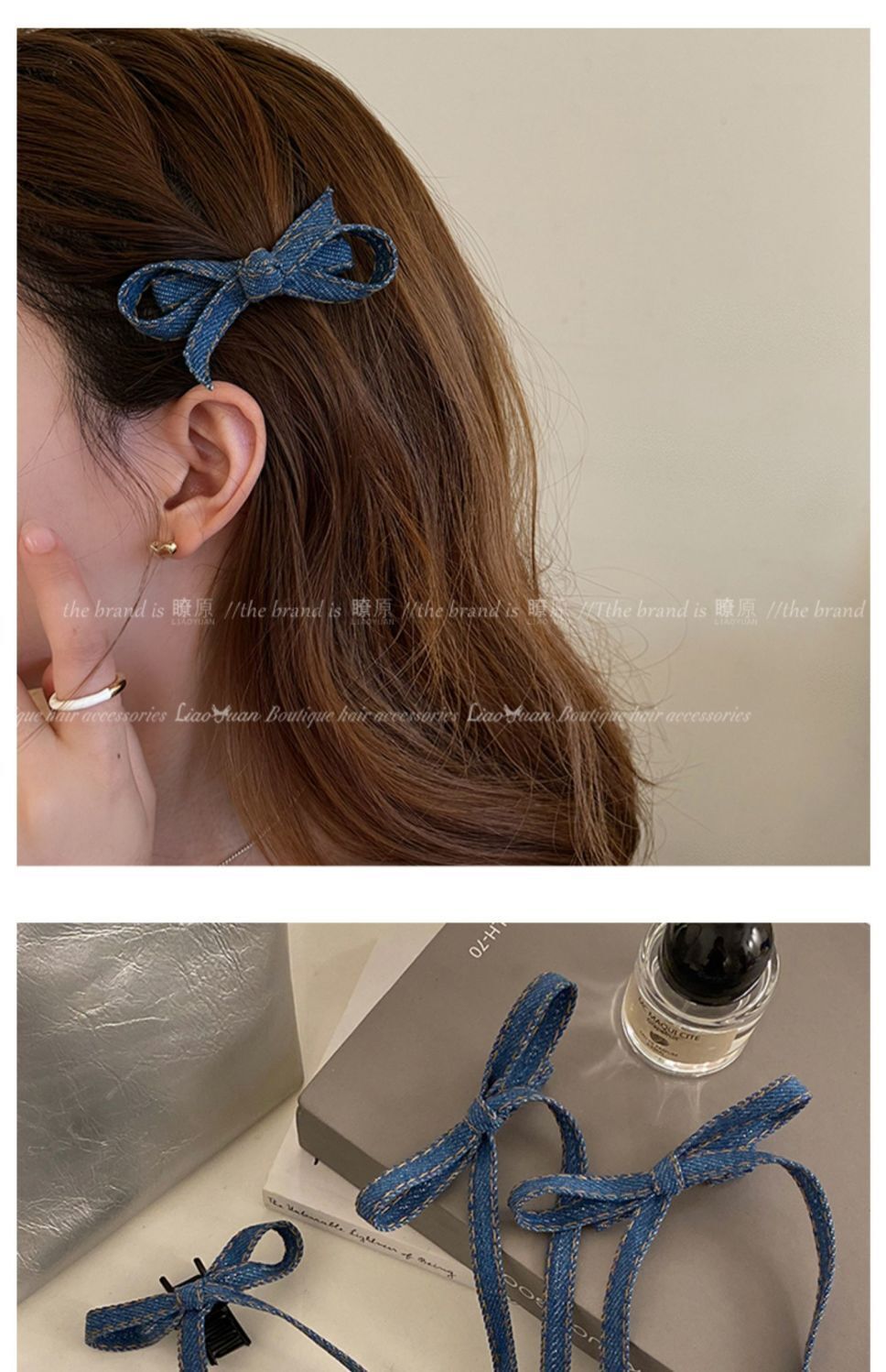 • 라이트 블루 데님 보우 클립