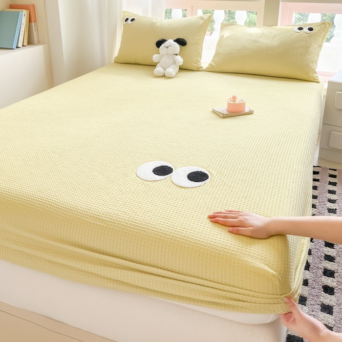 2024 새로운면 와플 타월 자수 침대 모자 싱글 제품 침대 모자 3 피스 세트스토어 가기