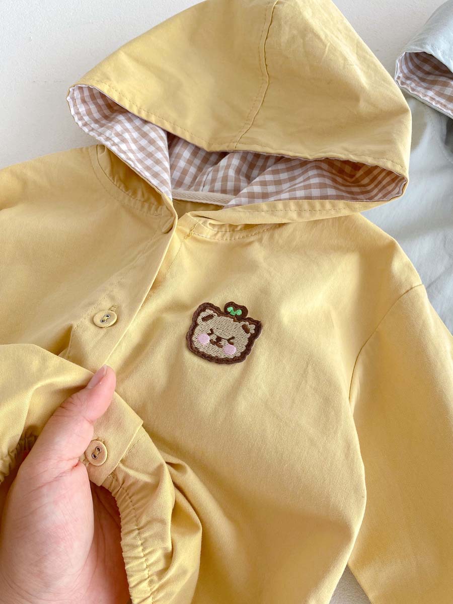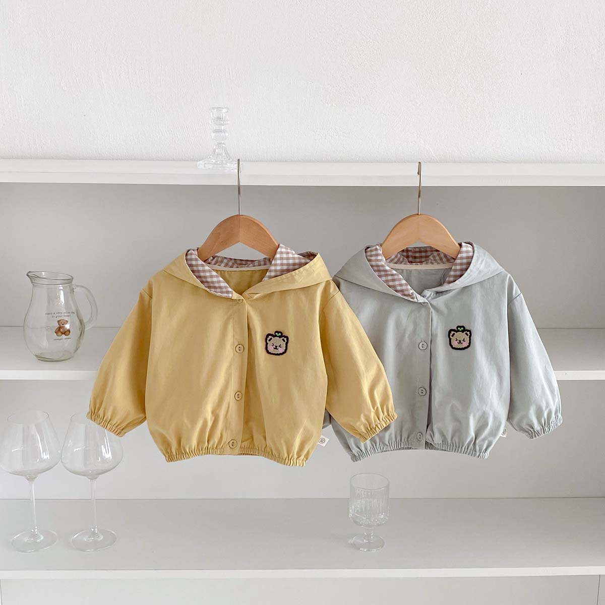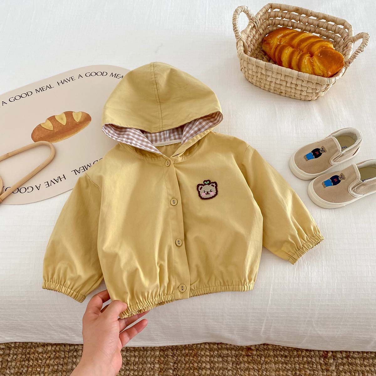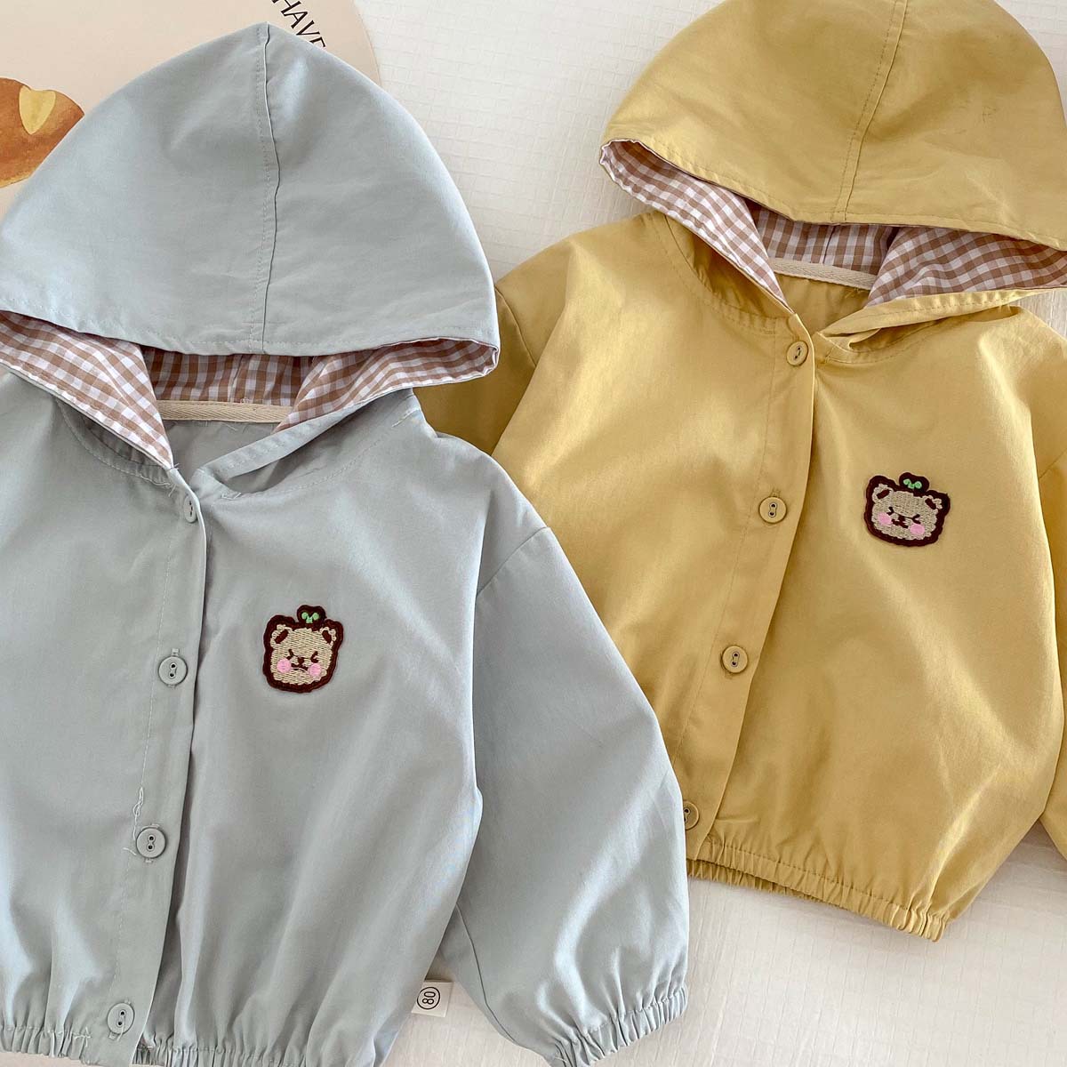 아기 소년 소녀를위한 어린이 가을 새 만화 곰 후드 코트 싱글 브레스트 한국식 코트 트렌디 옷