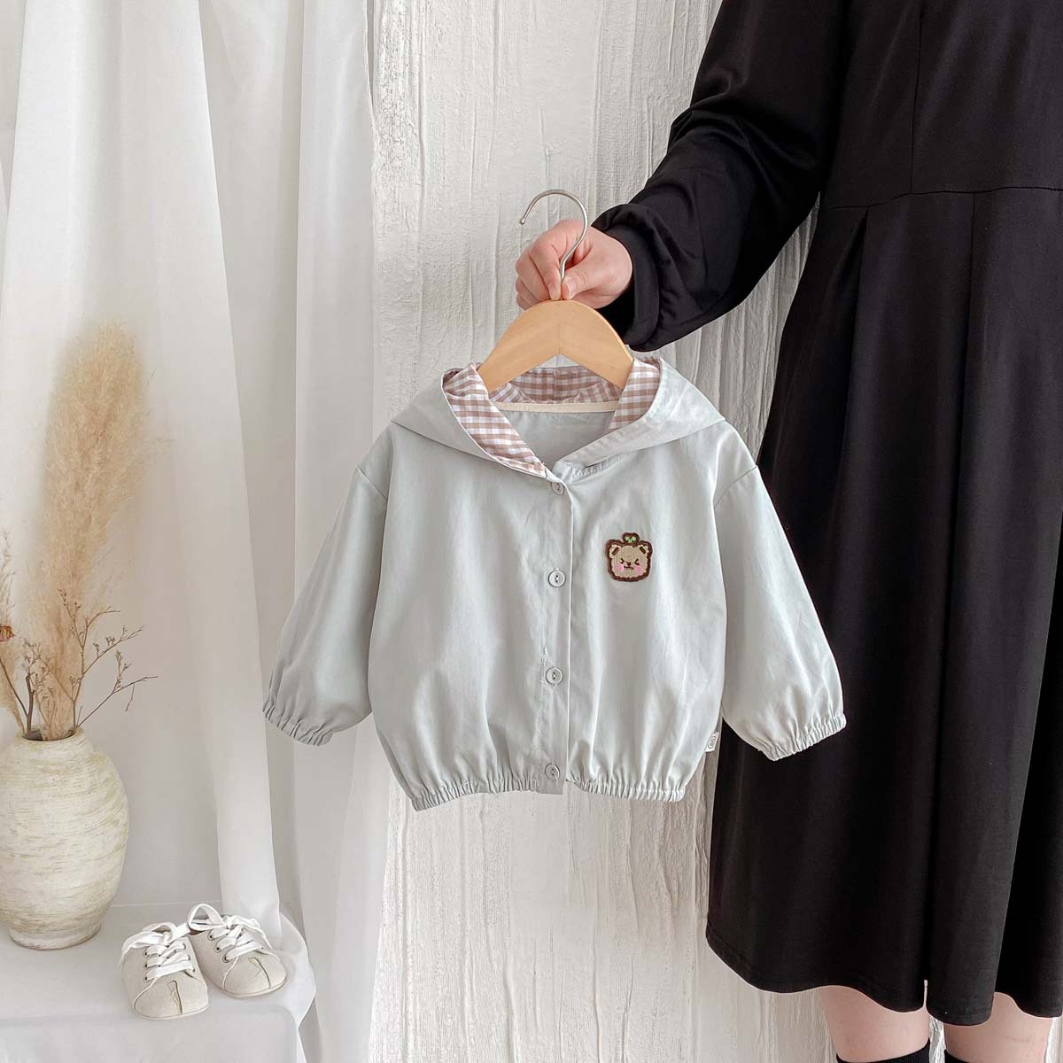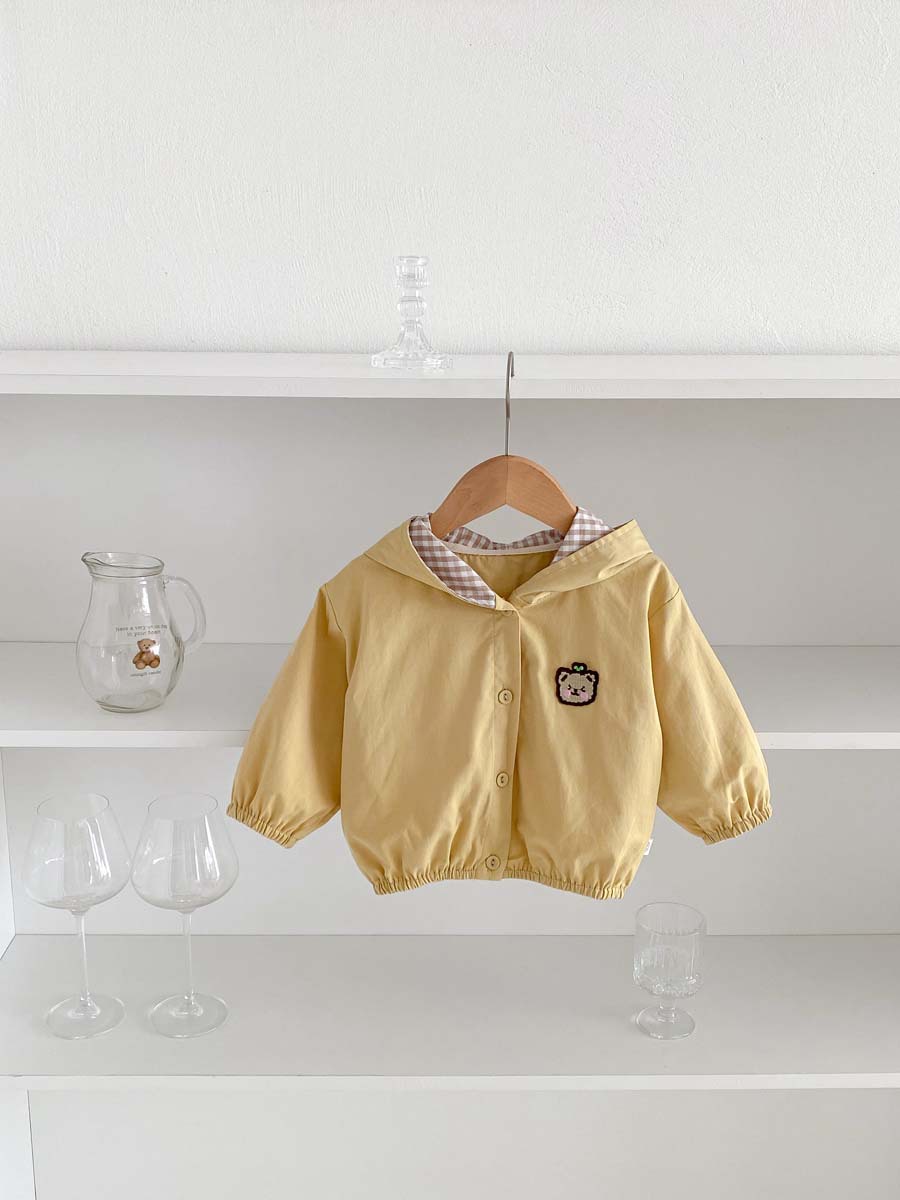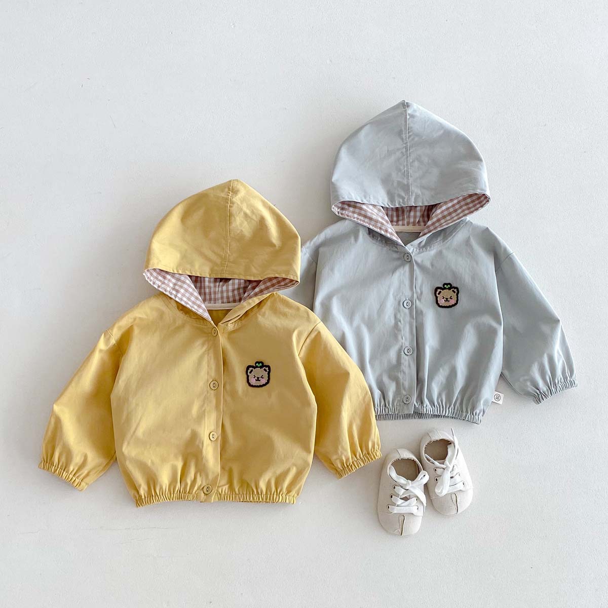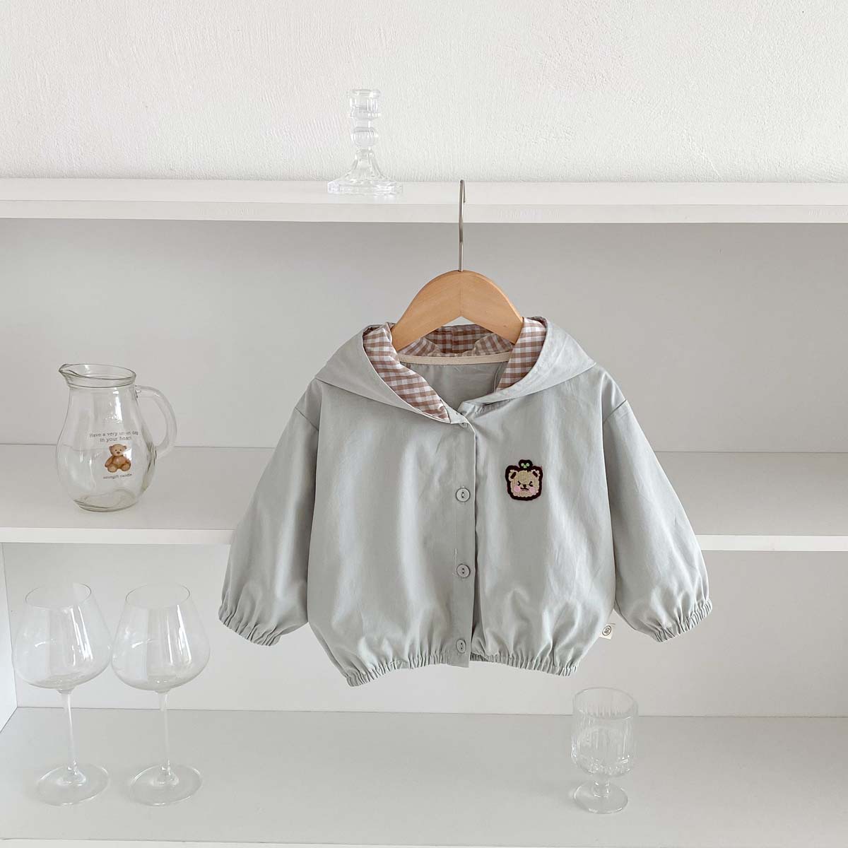 아기 소년 소녀를위한 어린이 가을 새 만화 곰 후드 코트 싱글 브레스트 한국식 코트 트렌디 옷