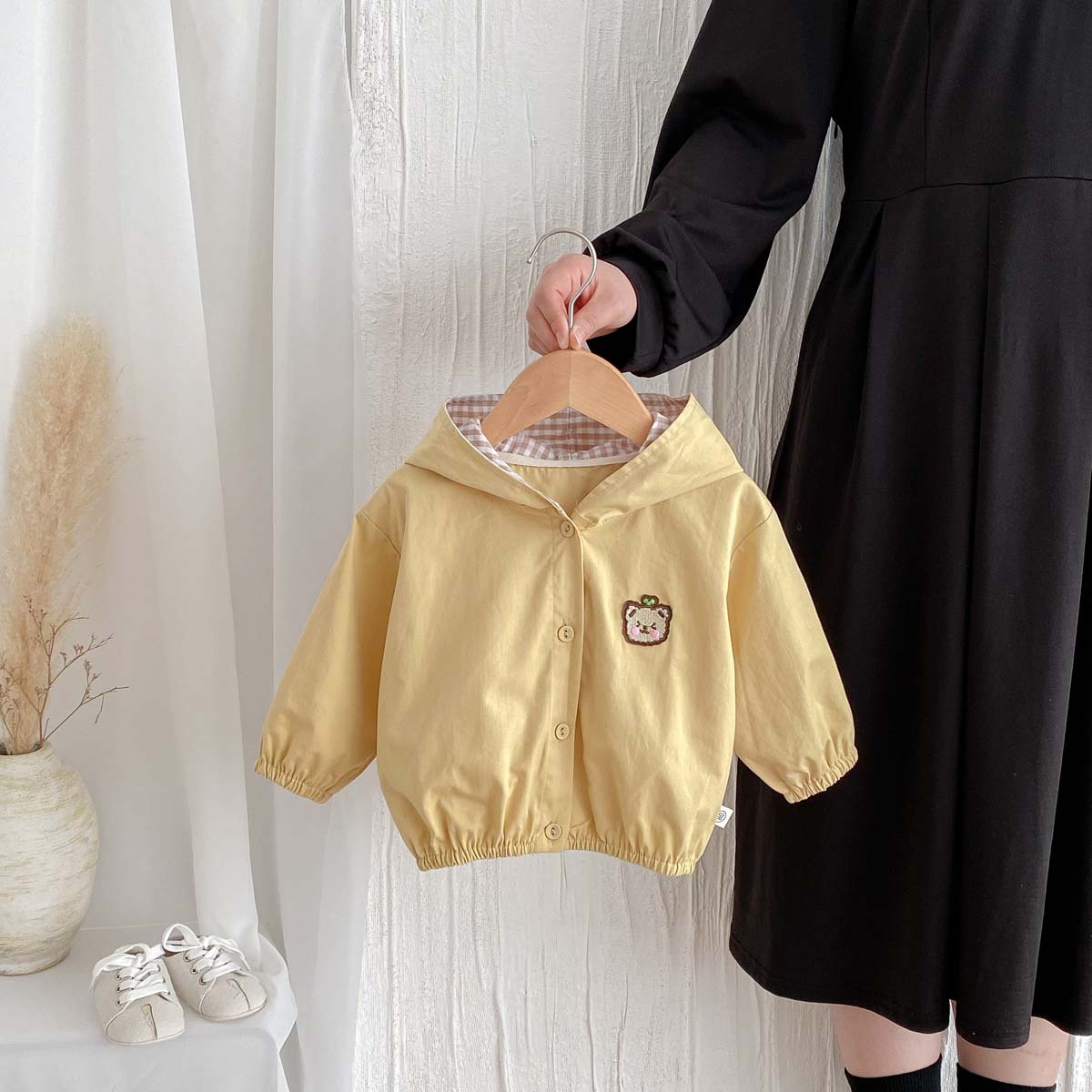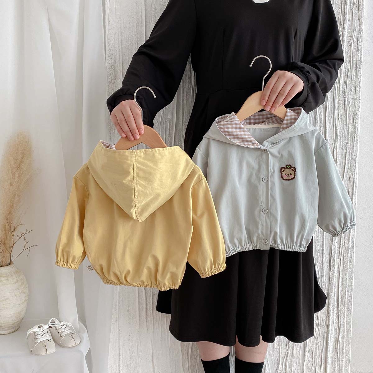 아기 소년 소녀를위한 어린이 가을 새 만화 곰 후드 코트 싱글 브레스트 한국식 코트 트렌디 옷스토어 가기