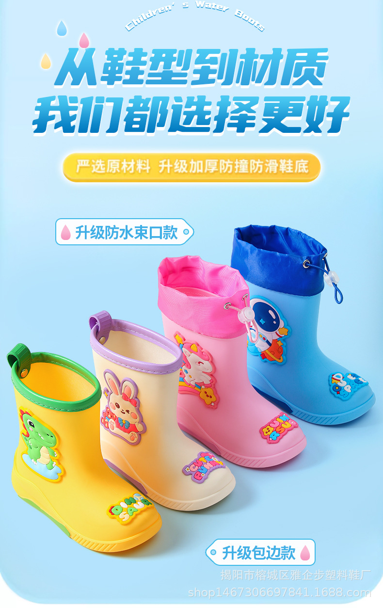 어린이 장화 두꺼운 내마모성 장화 만화 방수 미끄럼 방지 고무 신발 따뜻한 장화 소년 소녀 및 초등학생스토어 가기