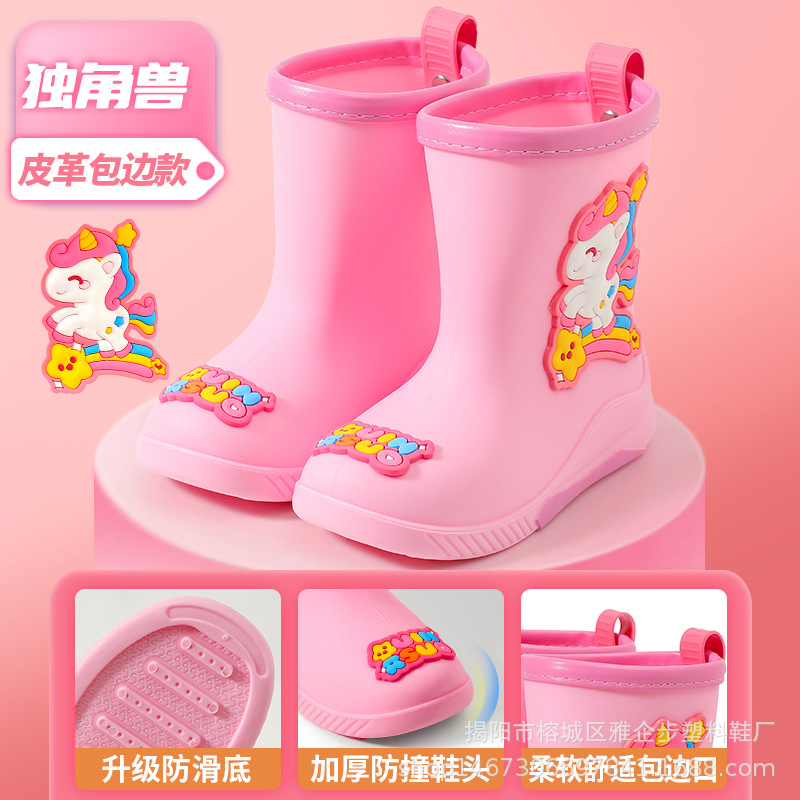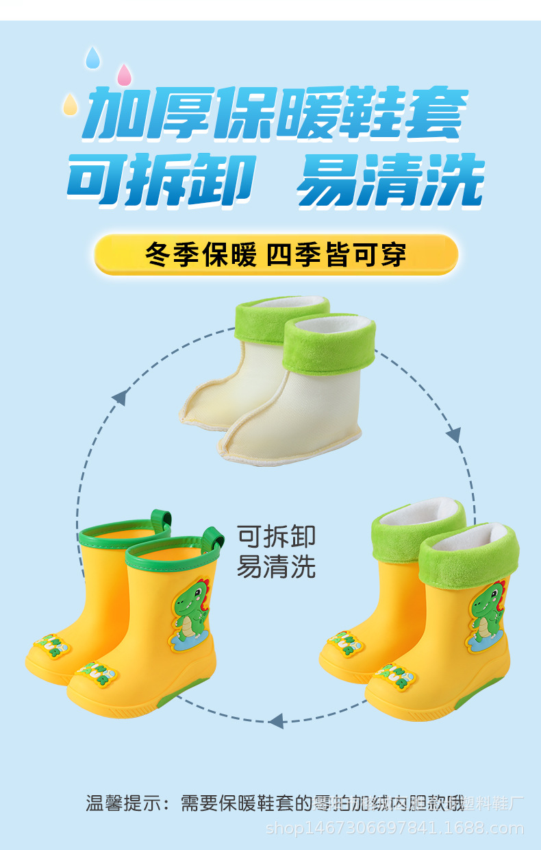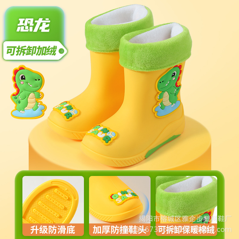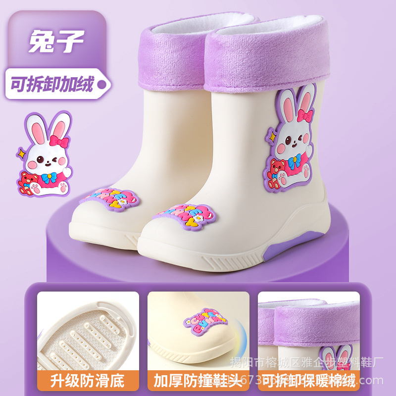 어린이 장화 두꺼운 내마모성 장화 만화 방수 미끄럼 방지 고무 신발 따뜻한 장화 소년 소녀 및 초등학생