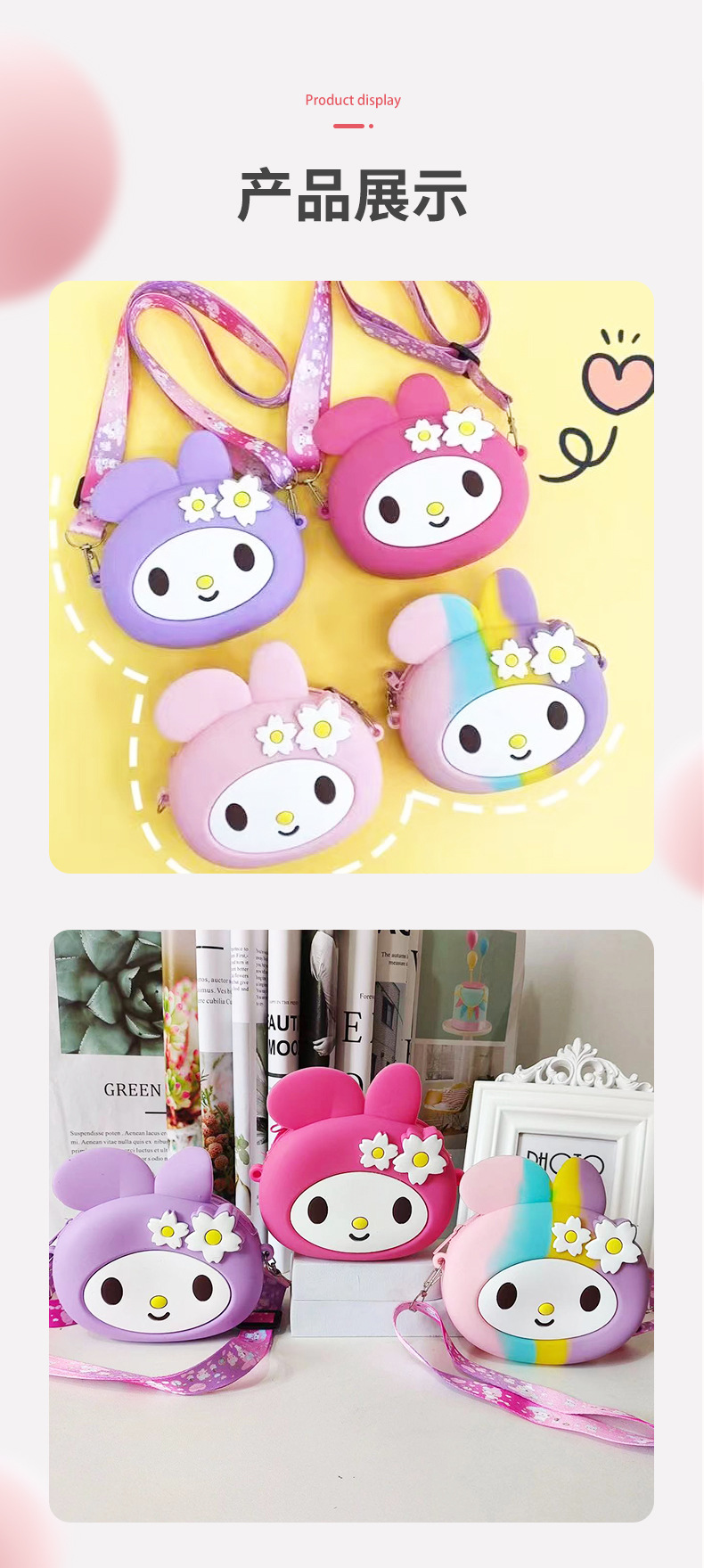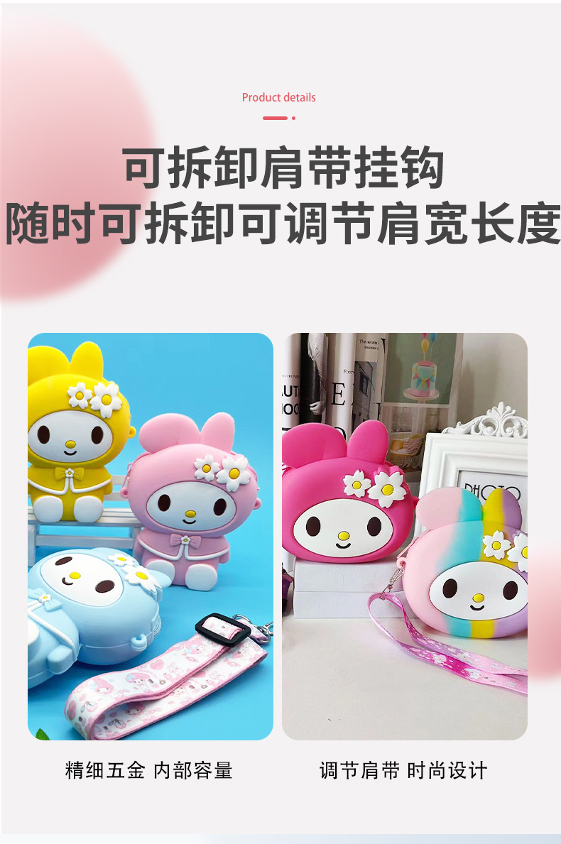 귀여운 멜로디 토끼 실리콘 가방 멀티 폼 패션 트렌드 어린이 변화 대각선 가방 공장 도매
