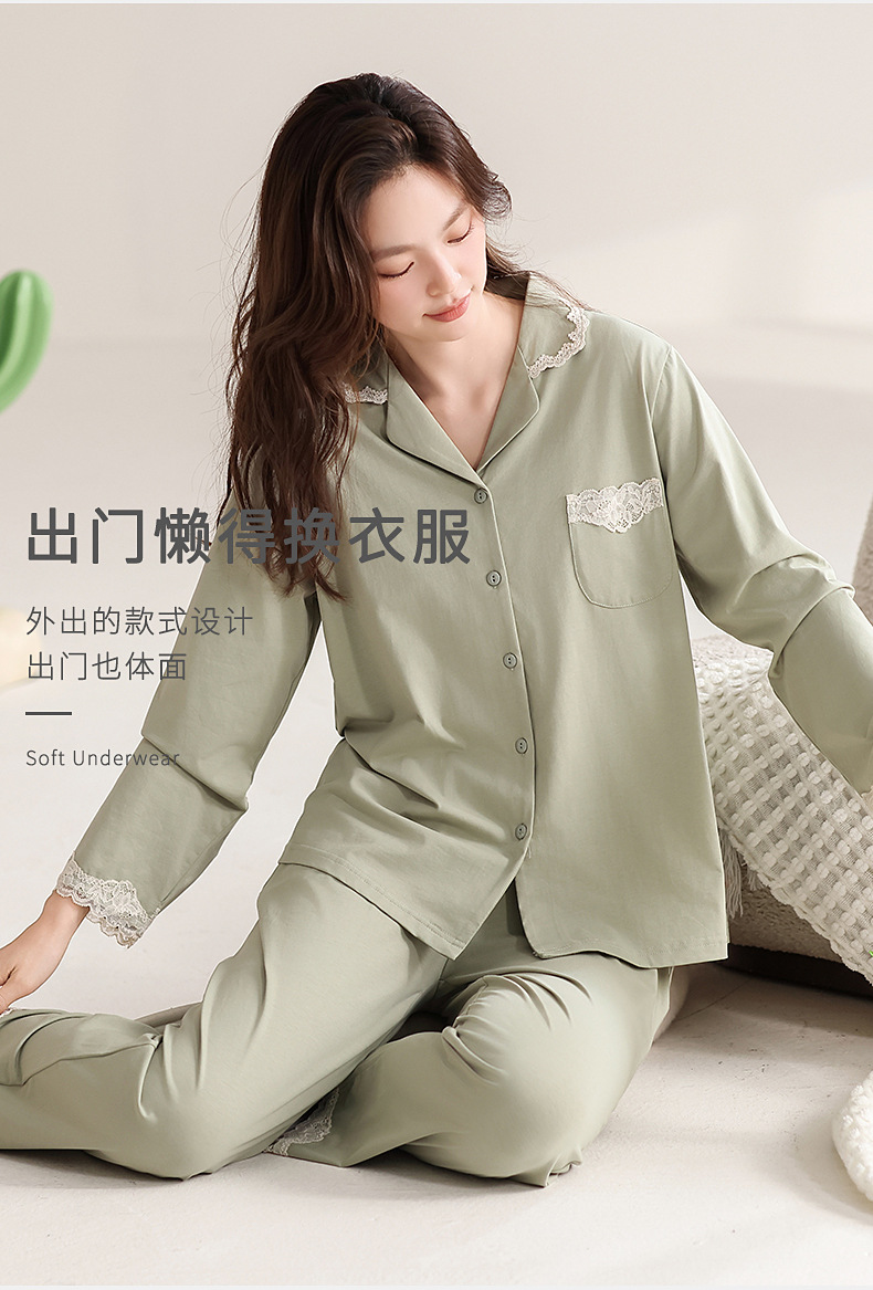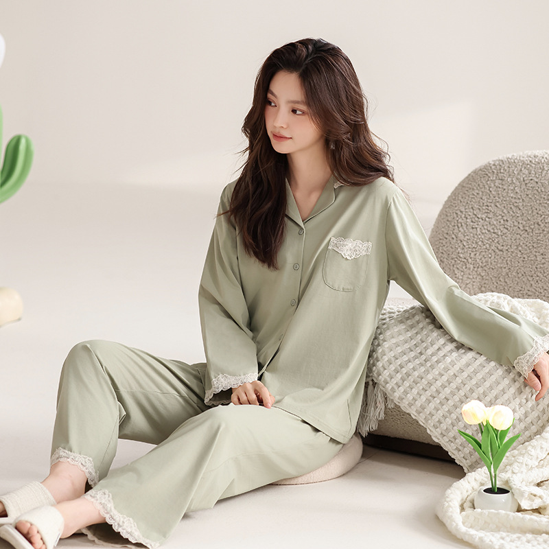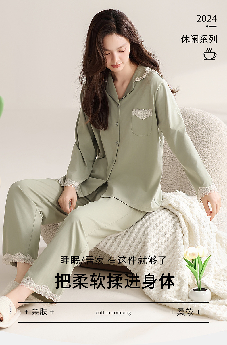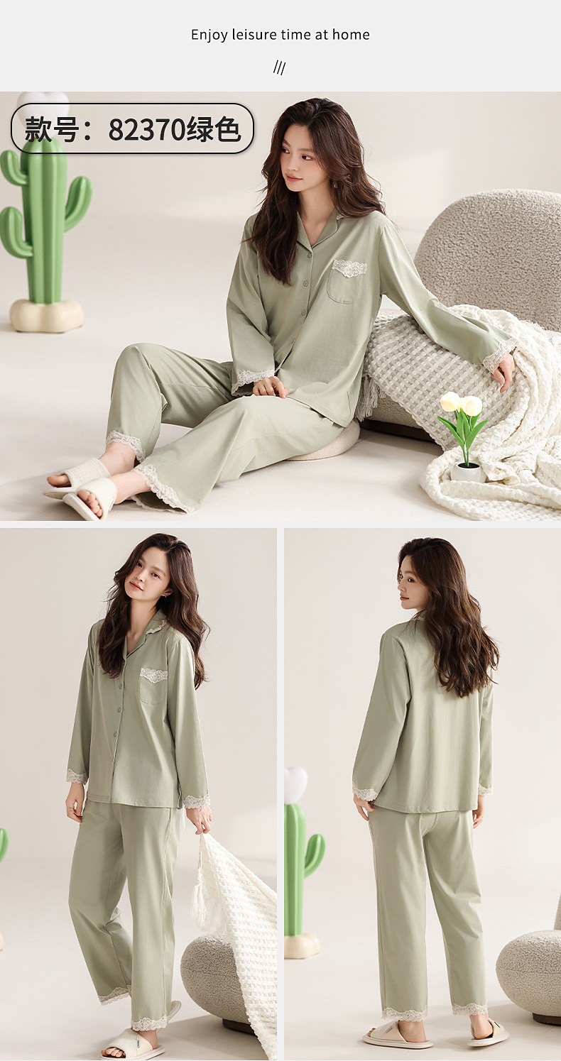 2024 새로운 도착 가을 잠옷 여성의 봄과 가을 순면 카디건 캐주얼 의류 솔리드 컬러 코튼 랙 홈 의류 세트
