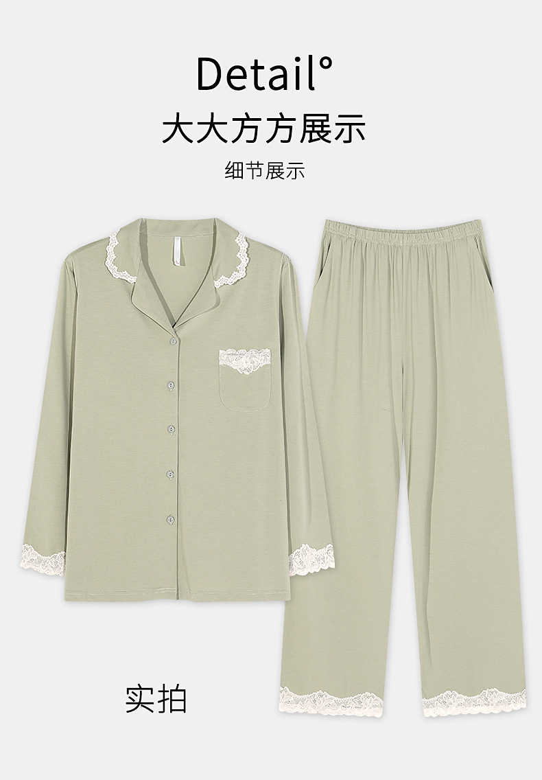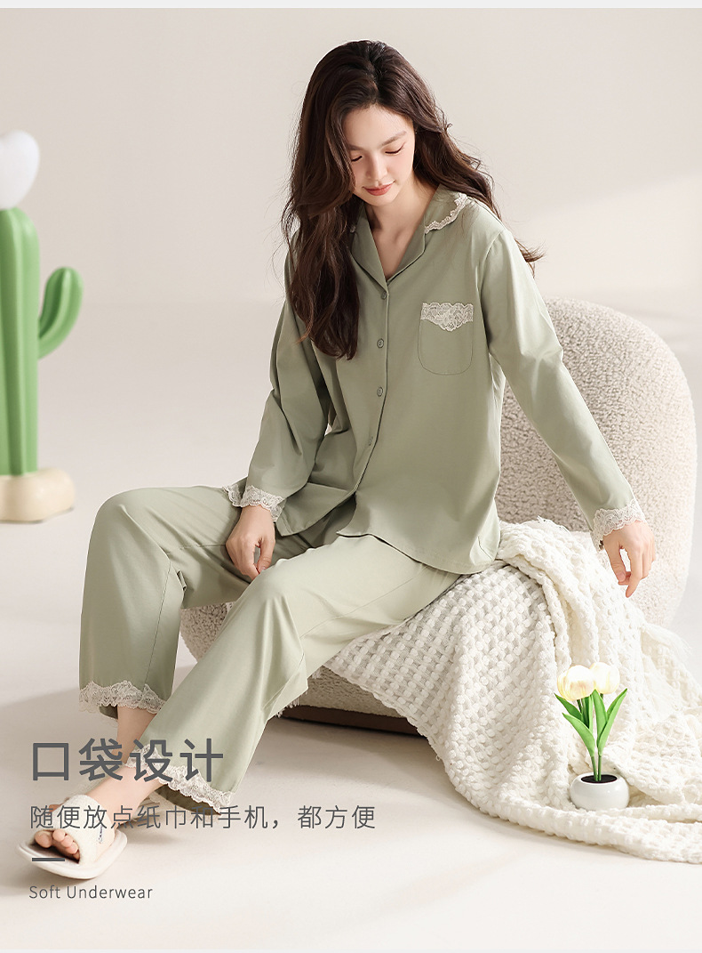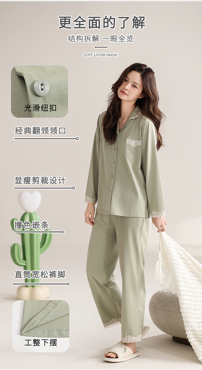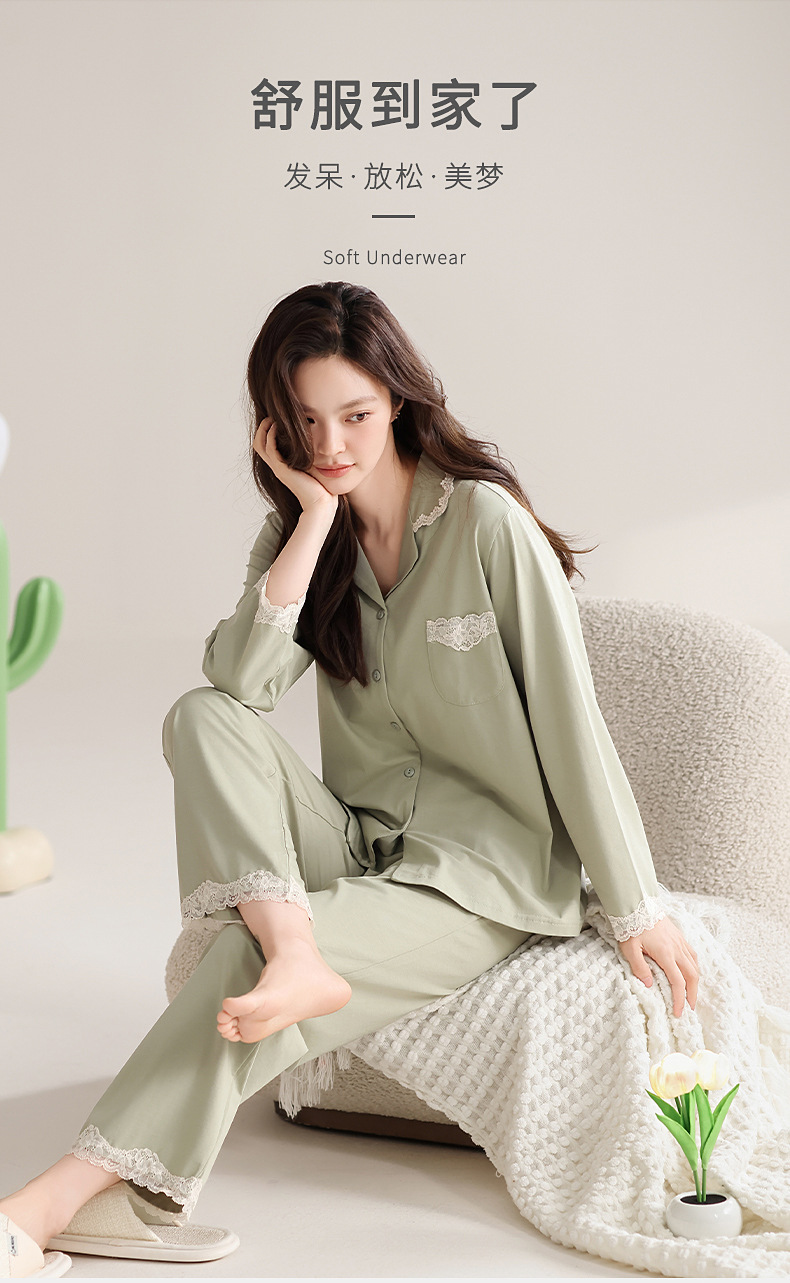 2024 새로운 도착 가을 잠옷 여성의 봄과 가을 순면 카디건 캐주얼 의류 솔리드 컬러 코튼 랙 홈 의류 세트