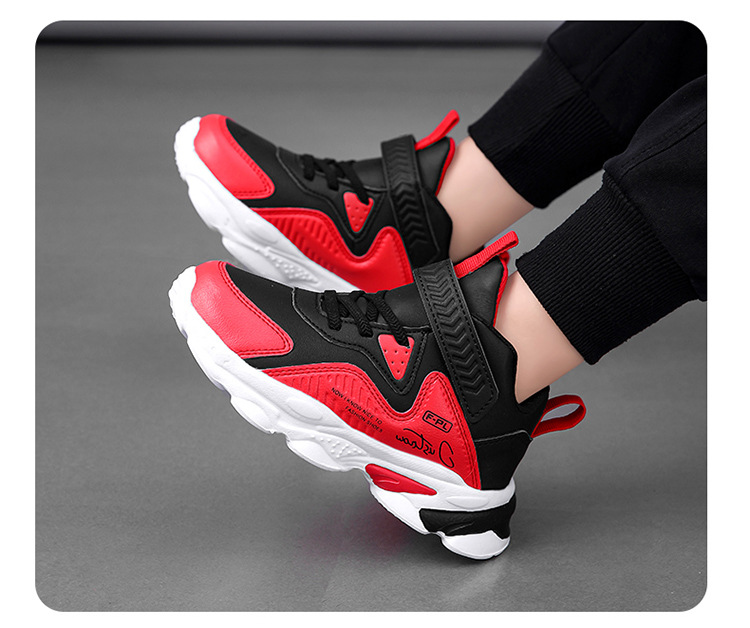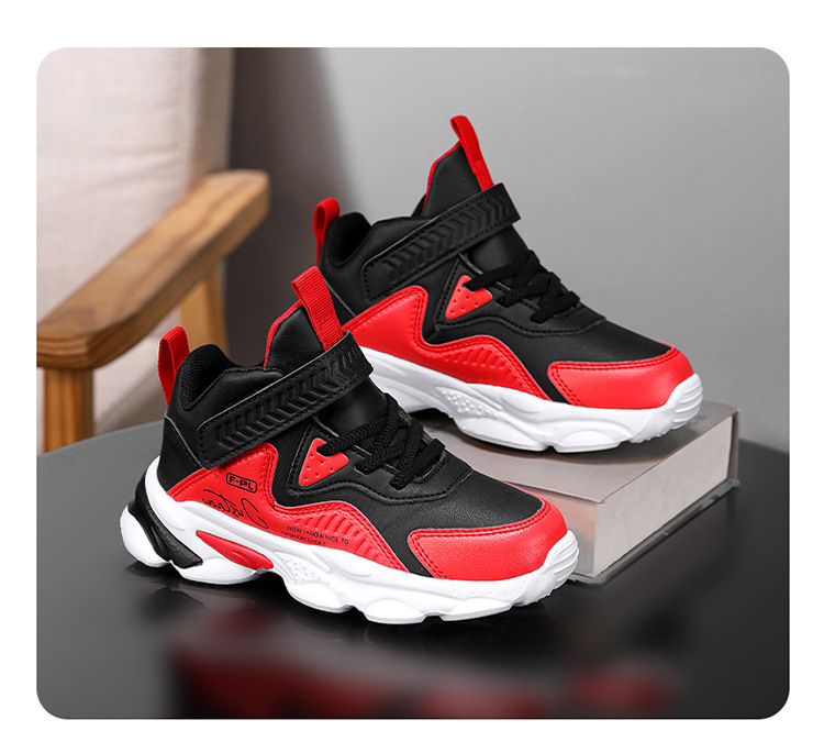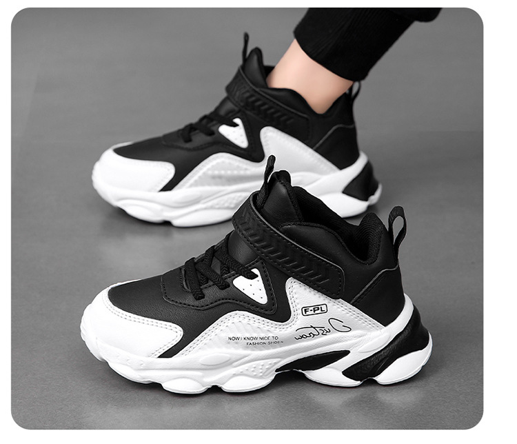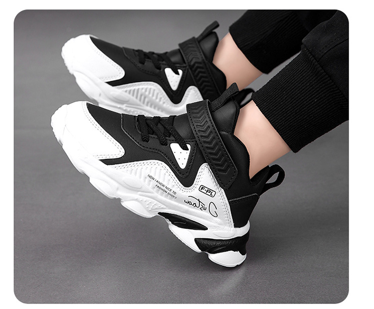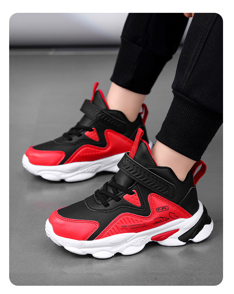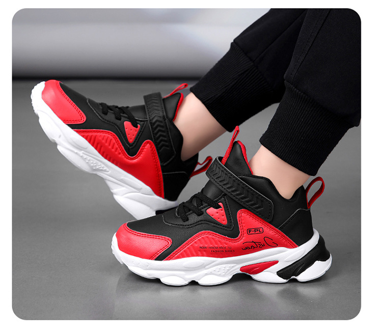 소년 신발 가을과 겨울 농구 신발 소년 가죽 방수 하이 탑 운동화 미끄럼 방지 어린이 운동화