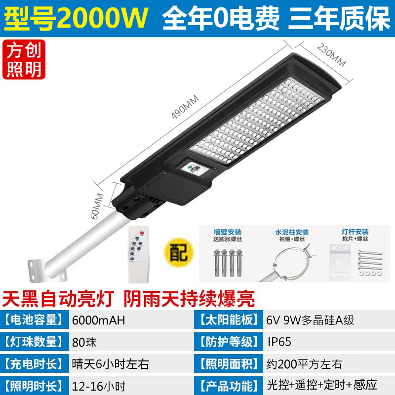 • 2000W 폭발적인 모델 [200제곱미터 조명]에는 인체 센서 + 지속 조명 모드 + 어두워지면 조명이 켜집니다.