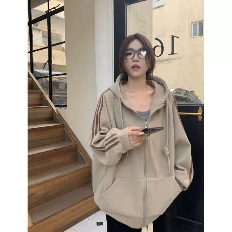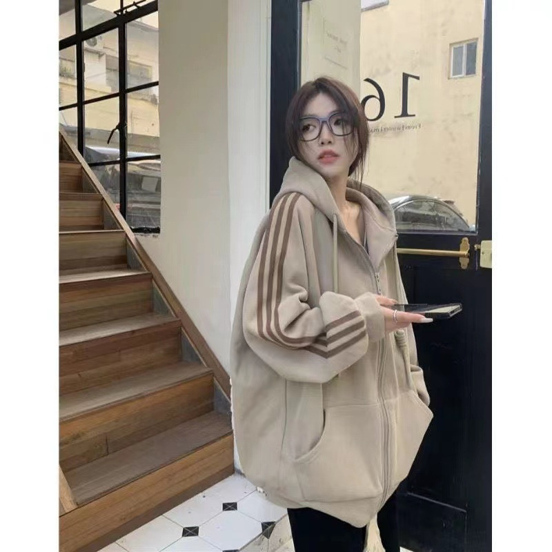 아메리칸 스타일 레트로 가을과 겨울 새로운 느슨한 플러스 사이즈 긴팔 카디건 탑 기모 두꺼운 후드 스웨터 재킷 여성 트렌디스토어 가기