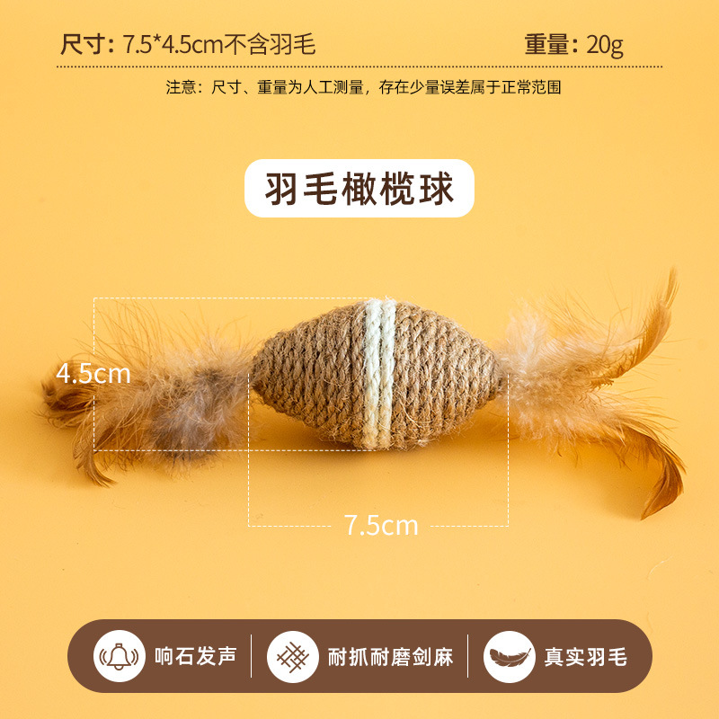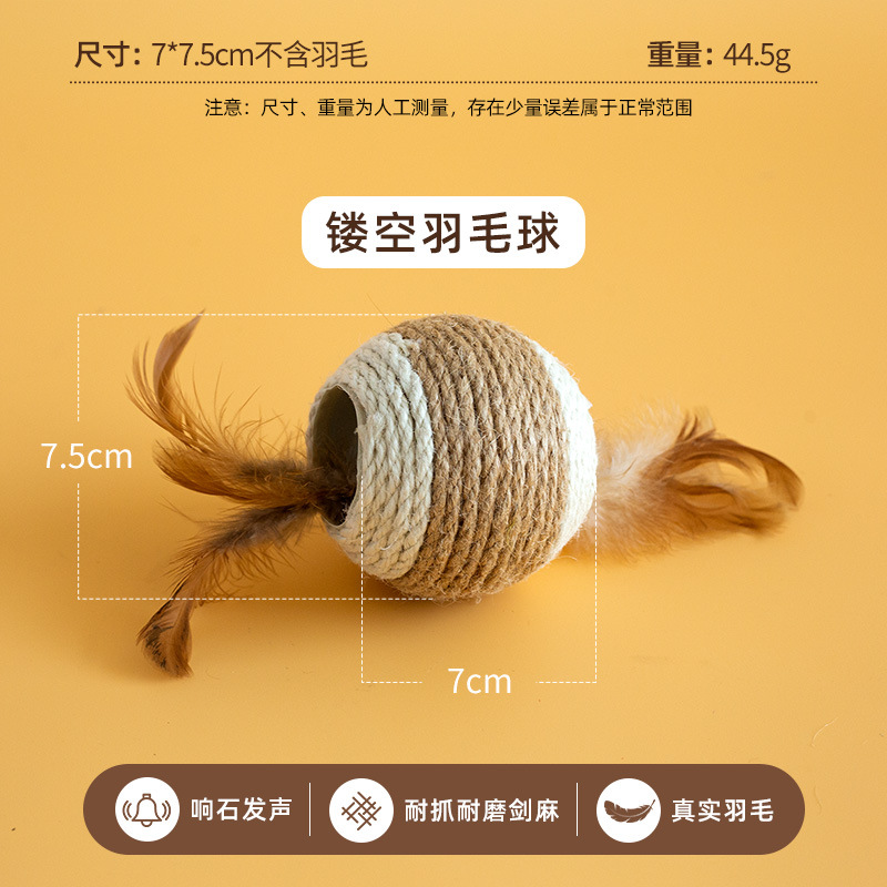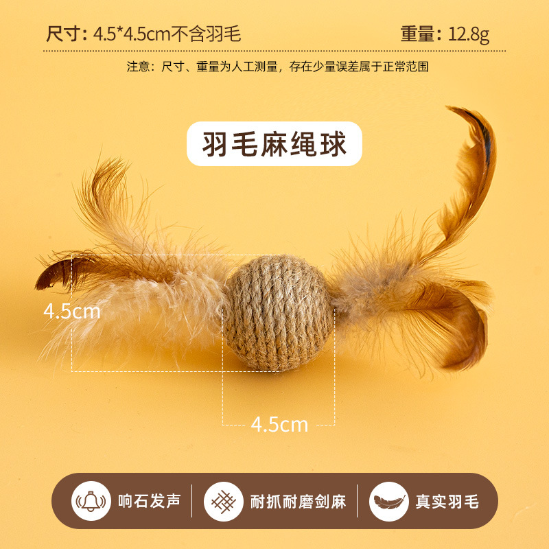 고양이의 자기 자극 및 지루함 해소, 세이지 로프 볼, 치아 연삭, 물림 방지, 소리 벨 볼, 깃털 세이지 장난감 및 용품 도매
