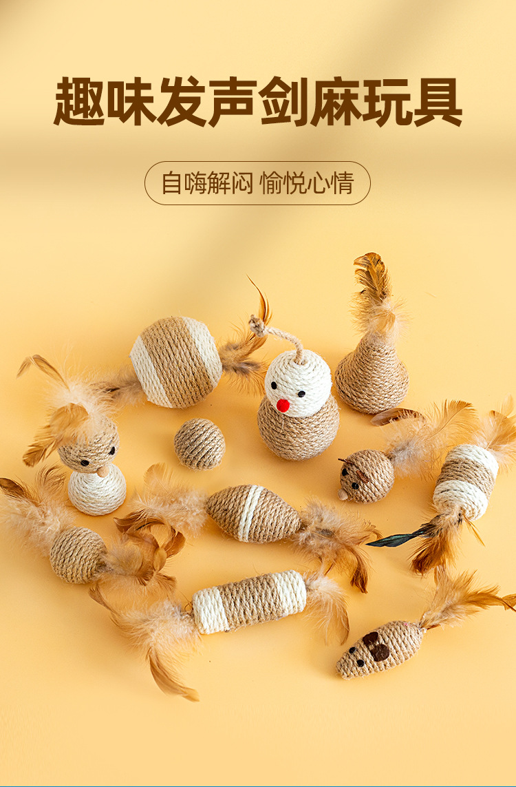 고양이의 자기 자극 및 지루함 해소, 세이지 로프 볼, 치아 연삭, 물림 방지, 소리 벨 볼, 깃털 세이지 장난감 및 용품 도매스토어 가기