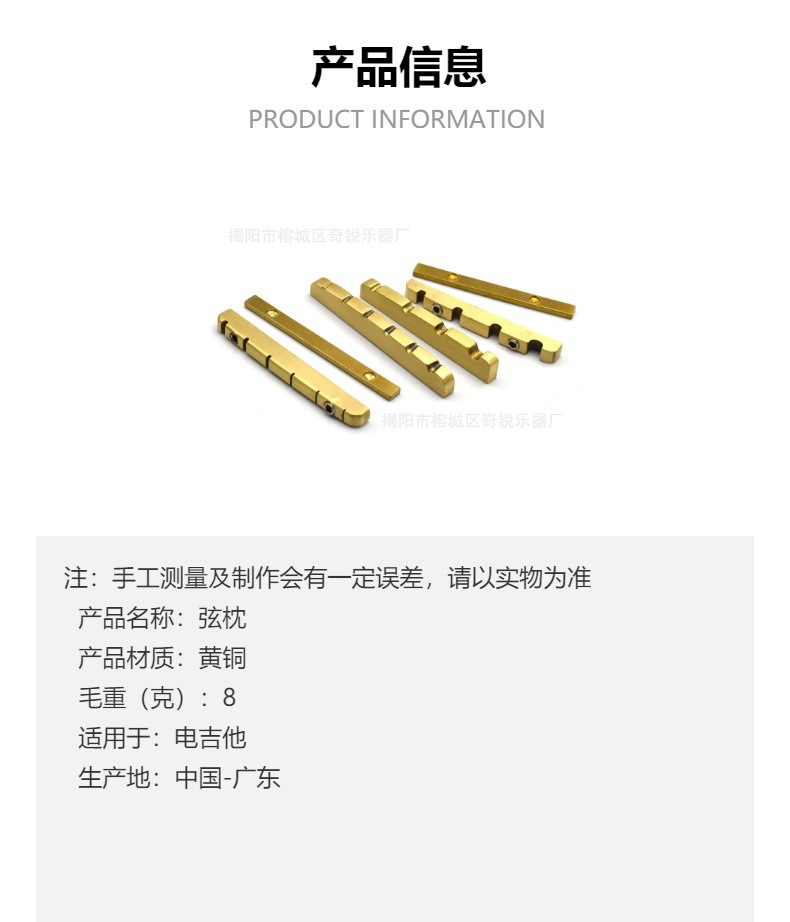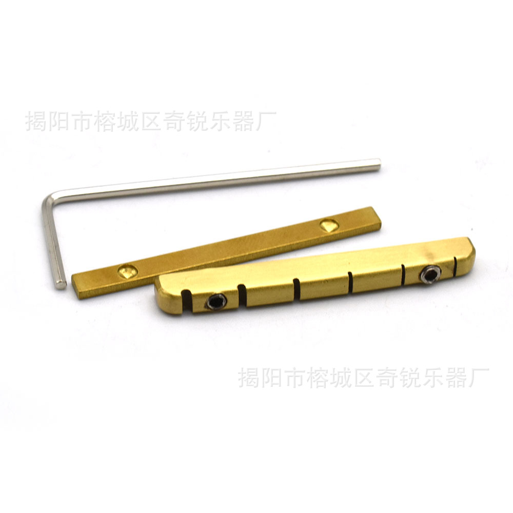4弦电贝斯贝司 6弦吉他黄铜上枕 金属平底开槽弧度上弦枕琴枕 乐器配件