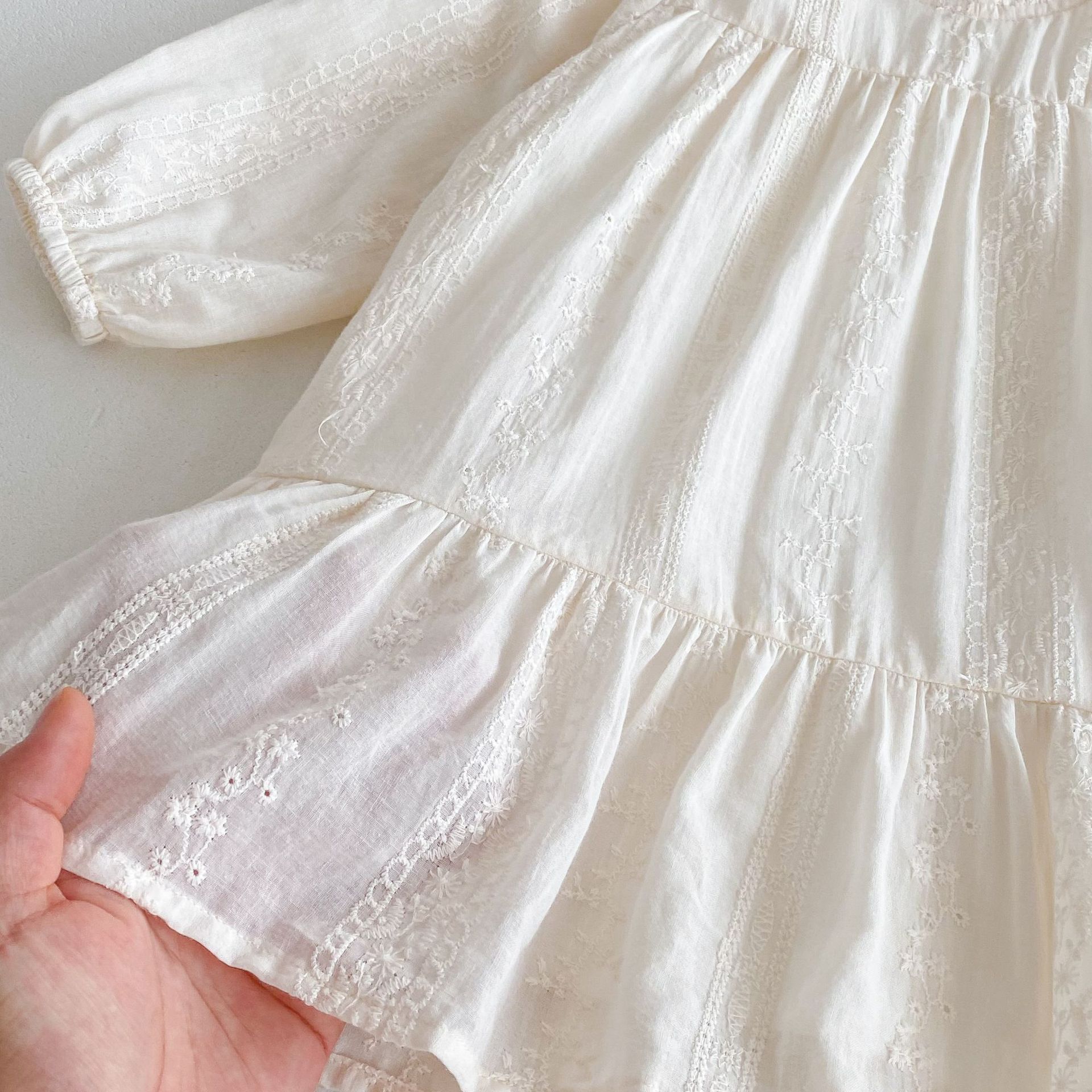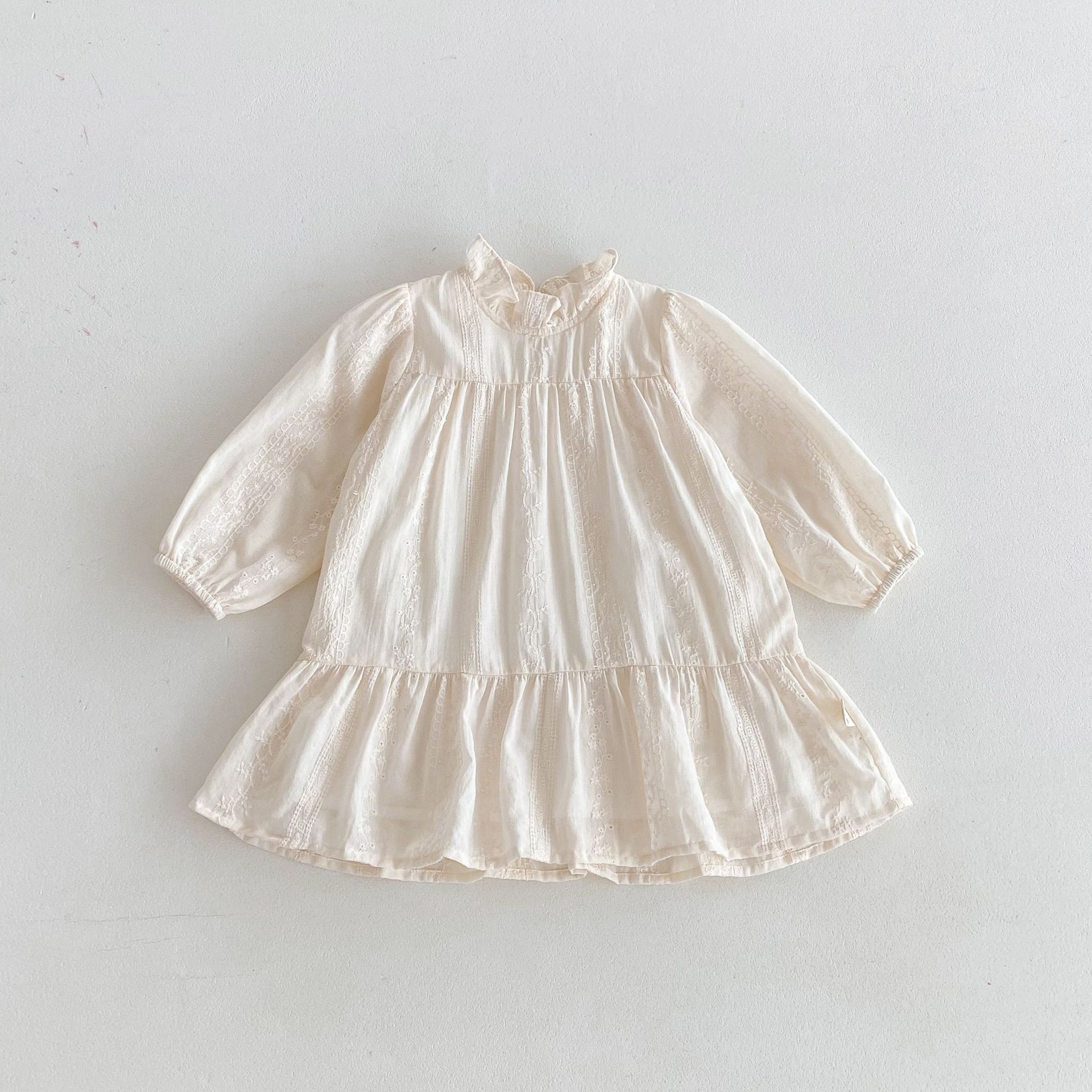 가을 2024 새로운 한국 스타일 어린이 원피스 레이스 긴 소매 아기 소녀의 원피스 느슨한 소녀의 원피스스토어 가기