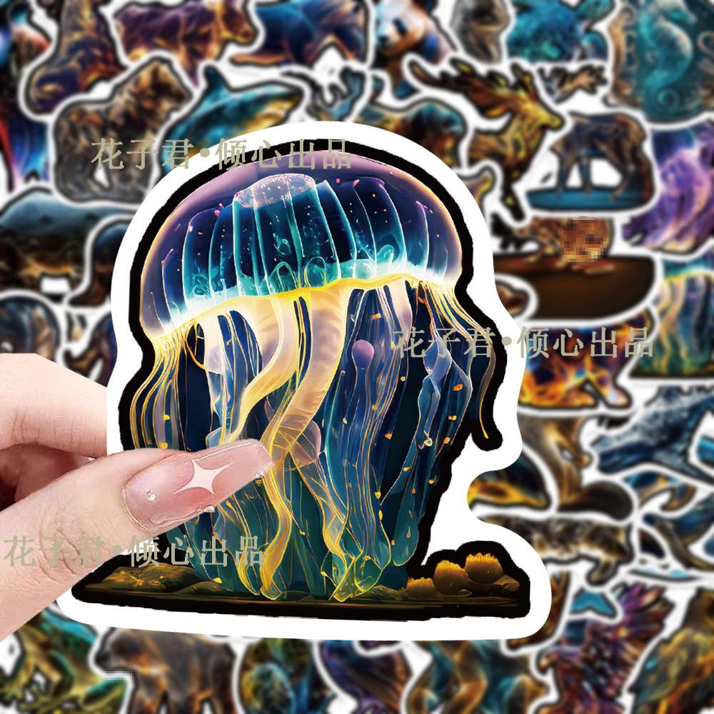 슈퍼 비용 효율적인 50 반투명 추상 바람 동물 패턴 스티커 높은 색상 가치 창조적 인 장식 DIY 배치