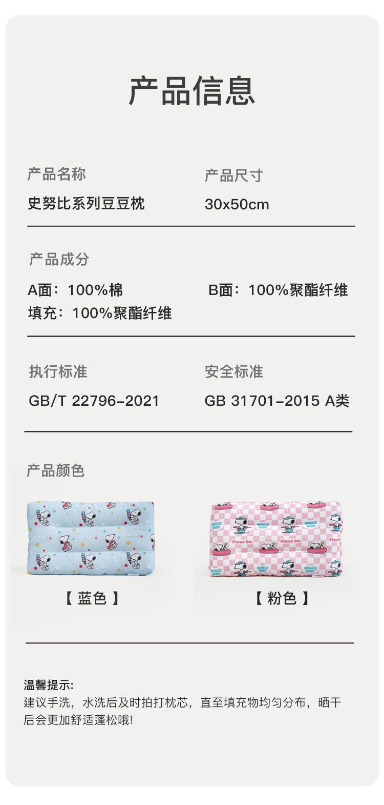 스누피 통기성 진정 콩 베개 어린이 베개 아기 베개 유치원 낮잠 베개 30*50cm스토어 가기