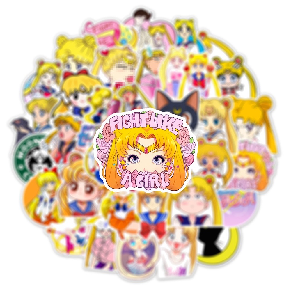 슈퍼 비용 효과적인 어린 시절의 아름다움 소녀 전사 스티커 물 얼음 달 토끼 2 차원 1 배치 100 조각스토어 가기